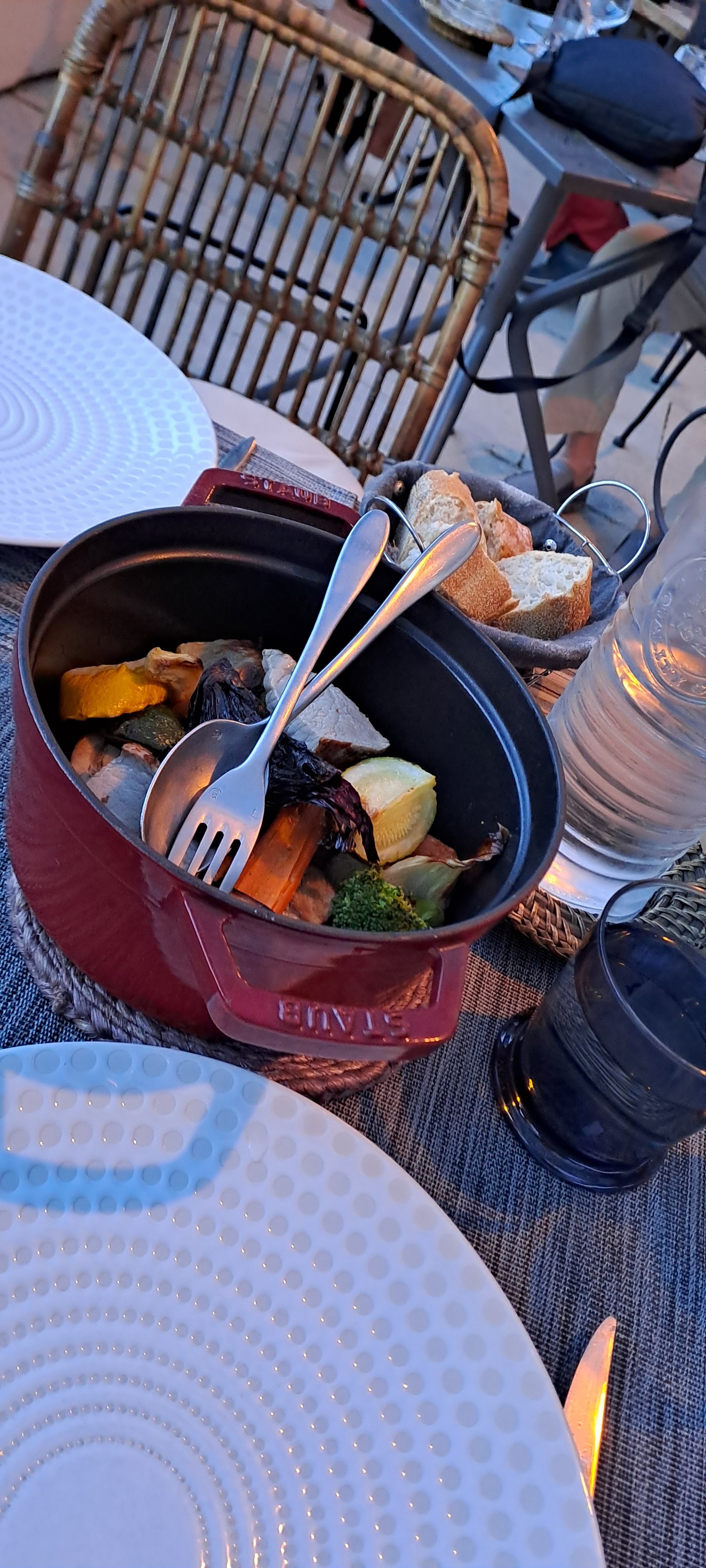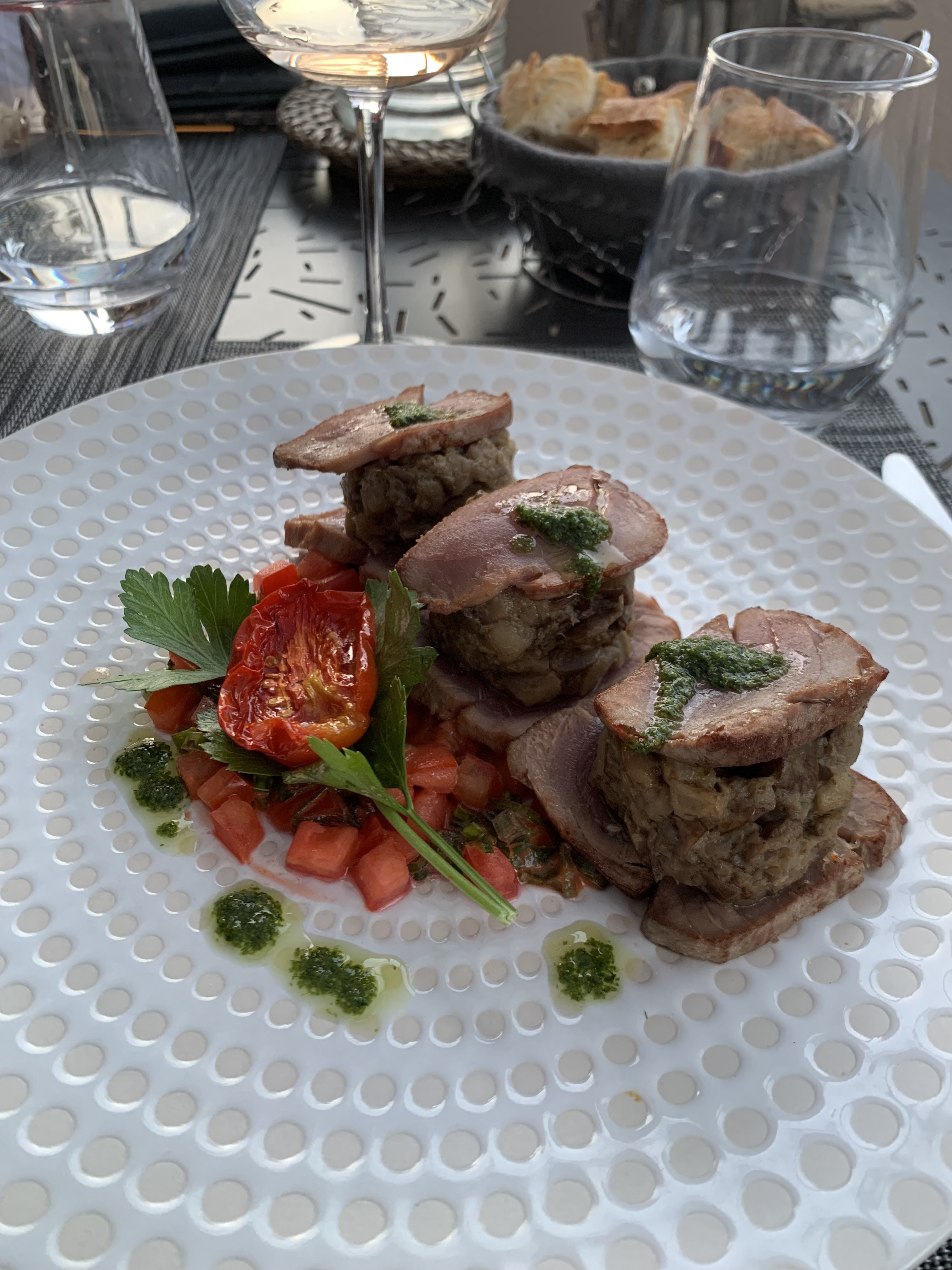Franchement, après 4 jours passés à manger dans plus de 4,6 restaurants que nous avons appréciés sans exception, ce restaurant a déçu dans tous les domaines clés et nous a laissé un sentiment de dégonflement. Les éléments de la nourriture étaient superbes, mais ils ont ensuite été gâchés par un contrôle des portions incroyablement strict. 4 crevettes petites à moyennes pour 20 euros supplémentaires par personne, et un ragoût de veau en plat principal mais très court en veau. Le service était entaché d'une inflexibilité totale caractérisée par Non, vous ne pouvez pas avoir de fromage plutôt qu'un dessert même si vous êtes prêt à payer un petit supplément car le repas du jour comprend un dessert que vous ne pouvez pas changer. Il y avait deux garçons qui servaient qui avaient visiblement suivi leur formation chez Burger King. En ce qui concerne l'atmosphère, la terrasse sonnait bien jusqu'à ce que vous réalisiez qu'elle était entourée d'un mur qui était plus haut que la vue de tout le monde assis en train de manger, de sorte que la vue n'était que sur les sommets des collines à une certaine distance. Pour couronner le tout, le vin de la maison au verre était imbuvable. En résumé, malgré quelques plats savoureux, le restaurant n'a pas atteint son objectif premier de rendre la soirée agréable.