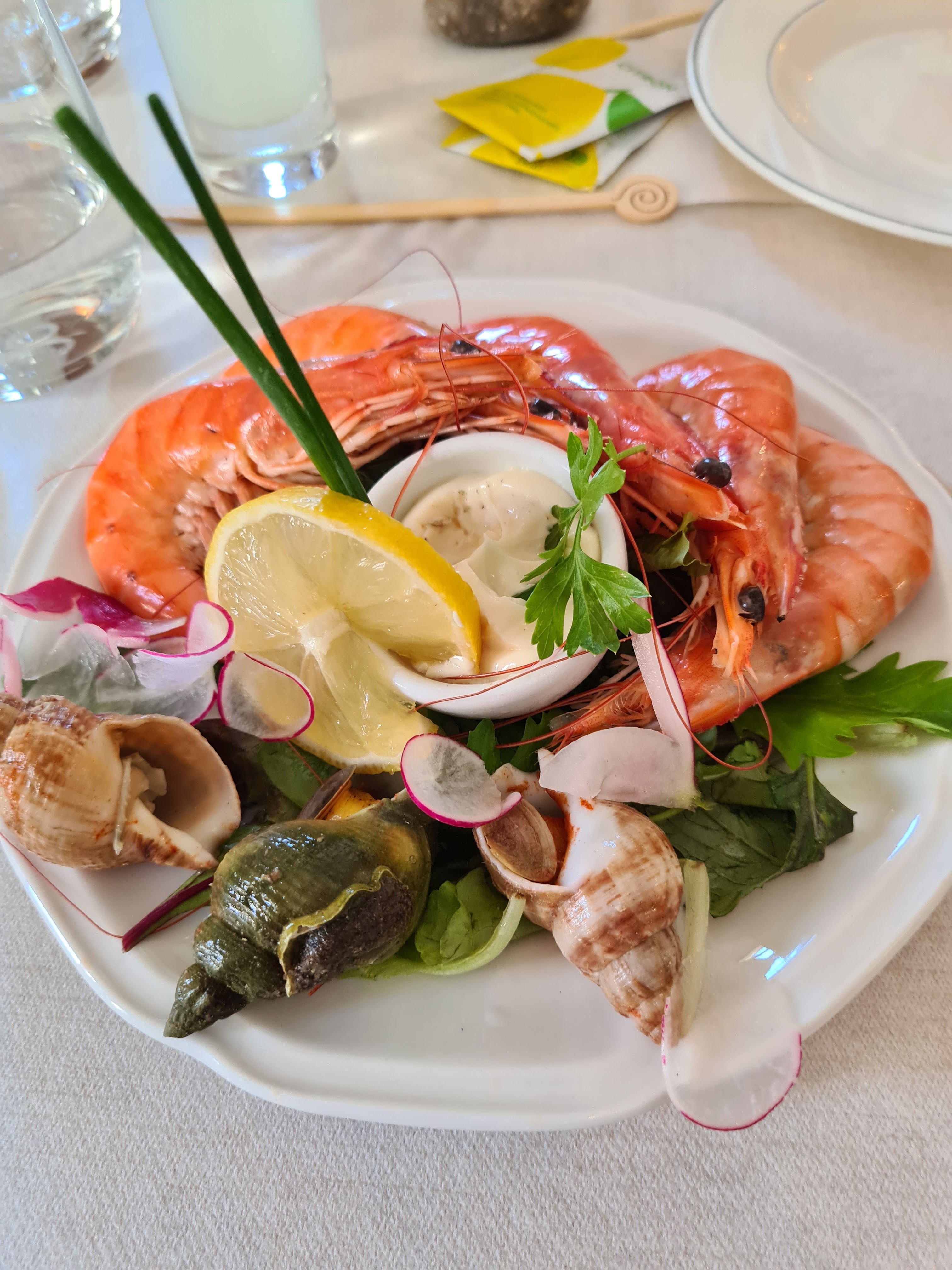 Très jolie vue .repas sympa mais manqué les oeufs sur certaines assiettes d'aioli .personnel .un.peu largué le vin pas assez frais .dommage faire des efforts dans ce sens ..