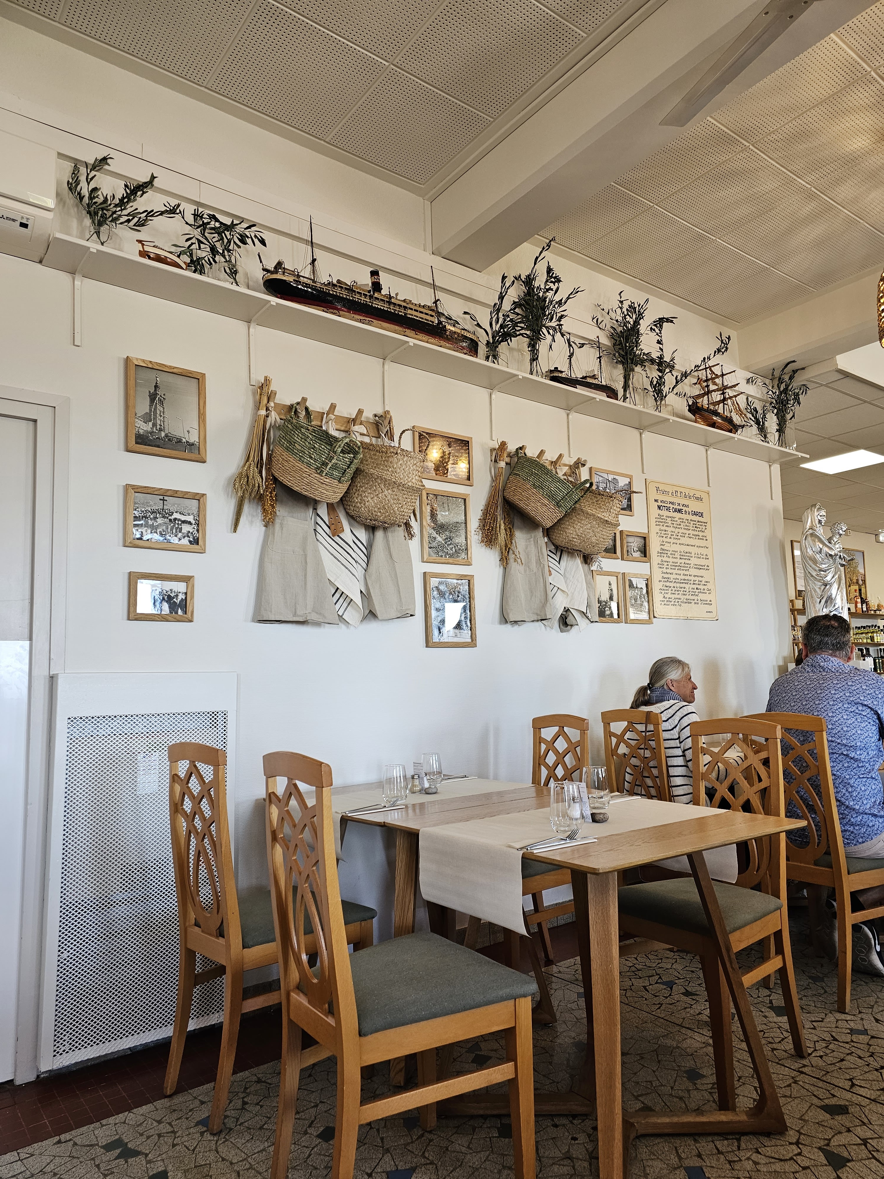 Quel plaisir de retrouver ce lieu si magique de Marseille . La nouvelle ambiance déco est belle simple efficace et nous rappels ce côté Méditerranéen. ( panier en osier , branché Olivier et photo de la construction de notre dame et de Marseille d antan) La cuisine est de qualité. Cela se sent que c est du fait maison. Gros coup de cœur pour notre table de la rillette de sardine , la socisse de Marseille et la daube avec la polenta♥️♥️. Les prix sont accessibles et les plats généreux L équipe est souriante A y retourner les yeux fermer .