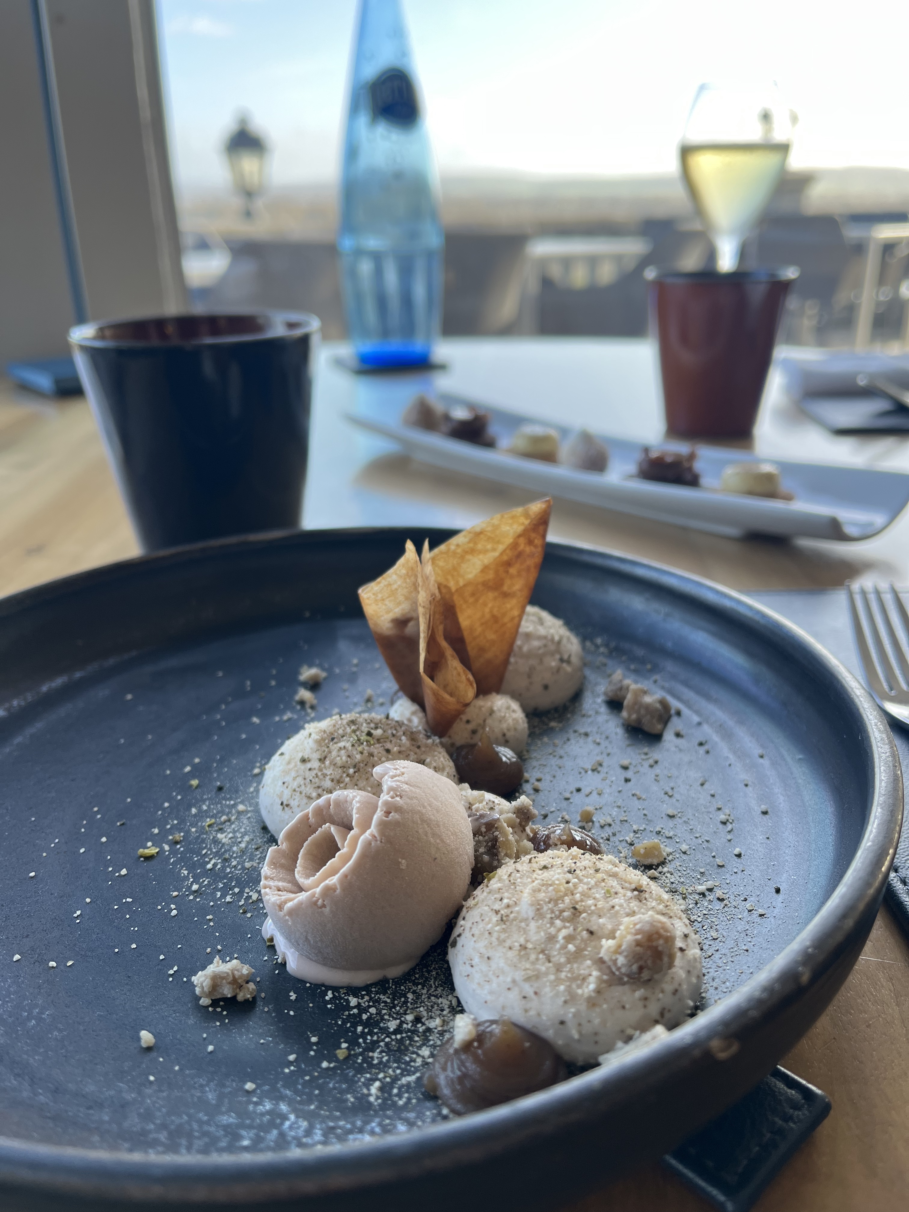 Une vue magnifique avec un repas délicieux, tout était parfait, des amuses bouches au dessert! Le personnel est de surcroît très attentionné et de bons conseils (merci au sommelier notamment).