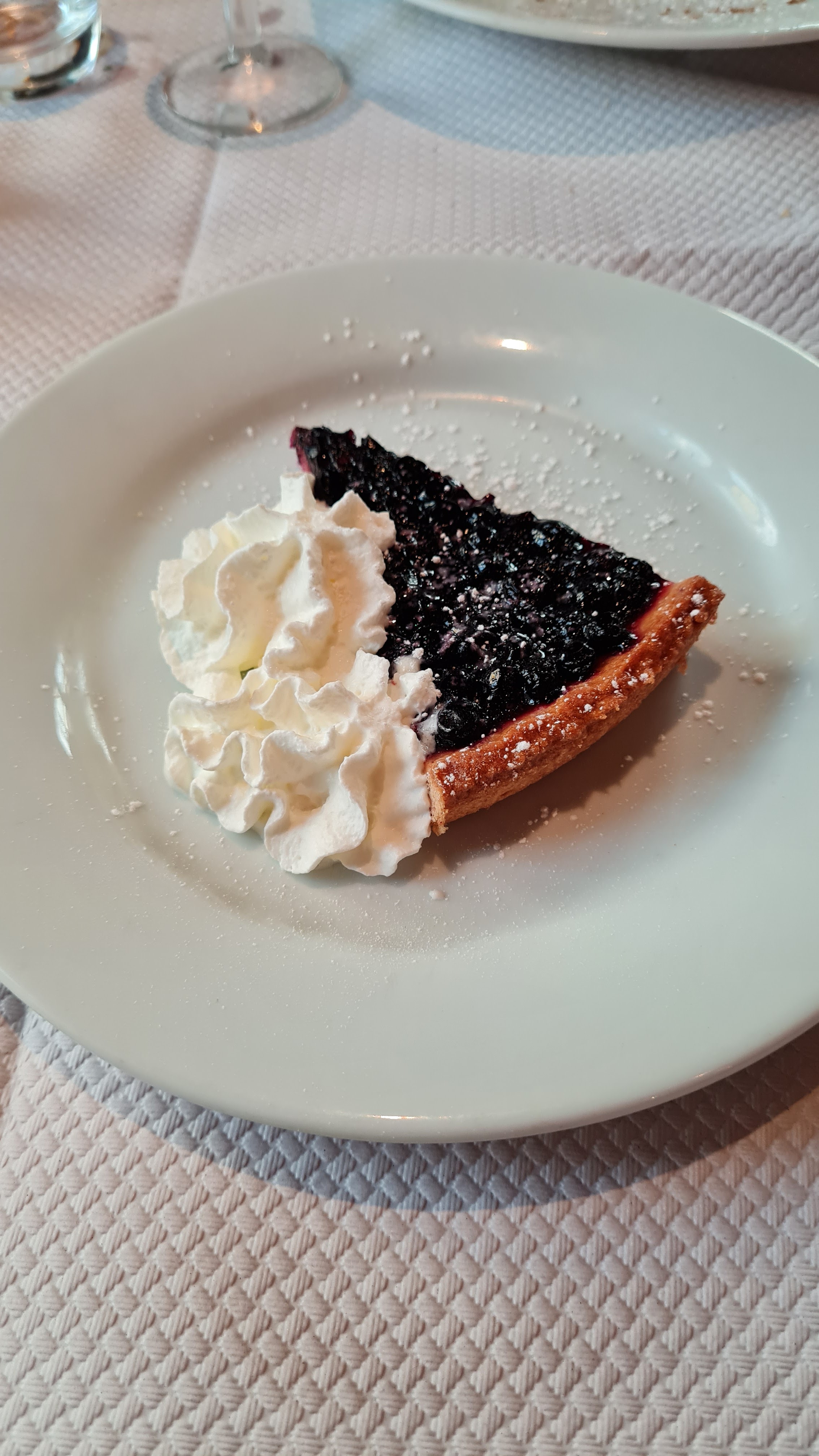 Bonne nourriture et service très sympathique même s'ils ne parlent apparemment pas un mot d'anglais. Nous avons commandé de la tarte flambée et quelques desserts, je recommande la tarte aux myrtilles. Chien amical.