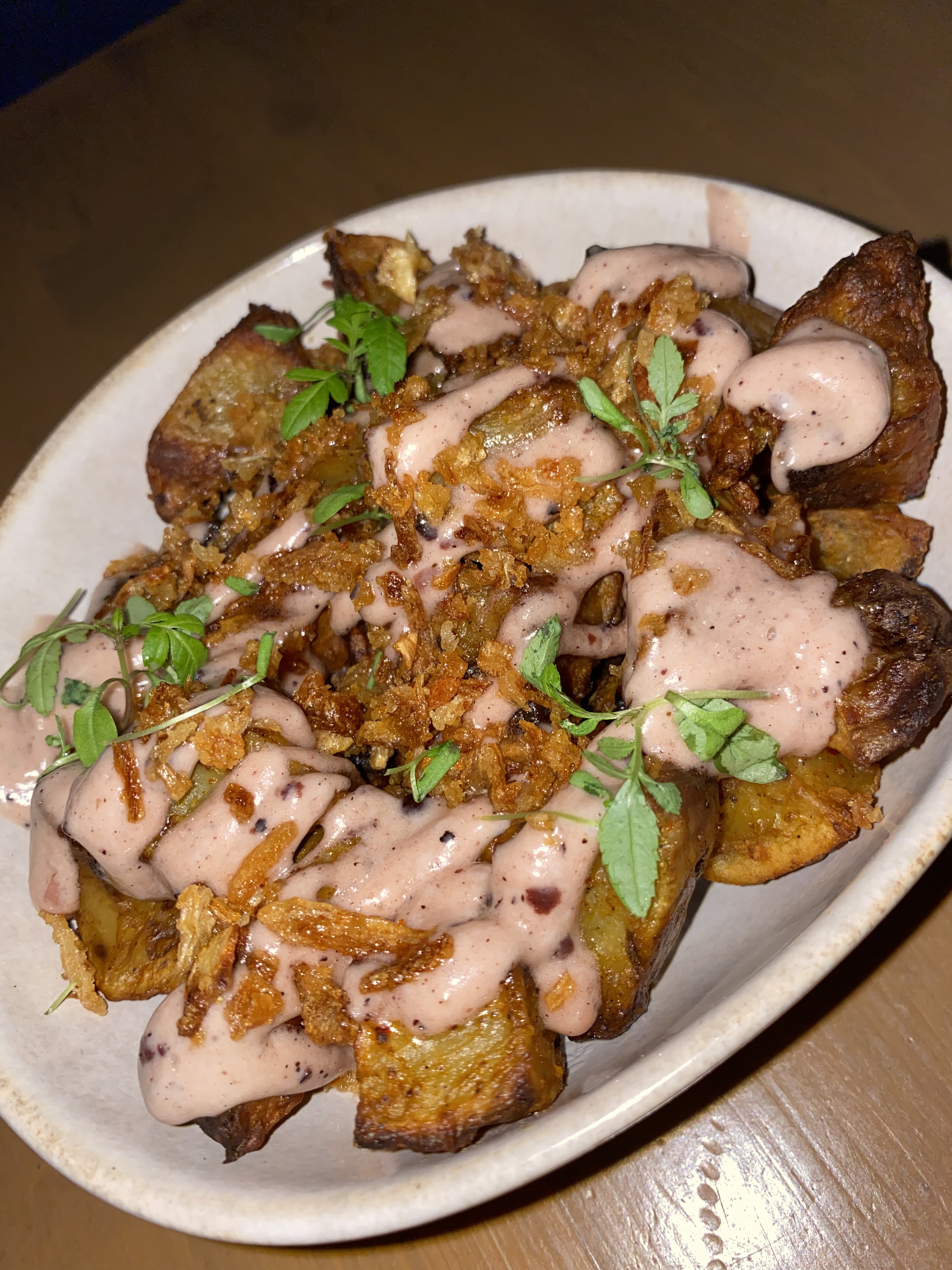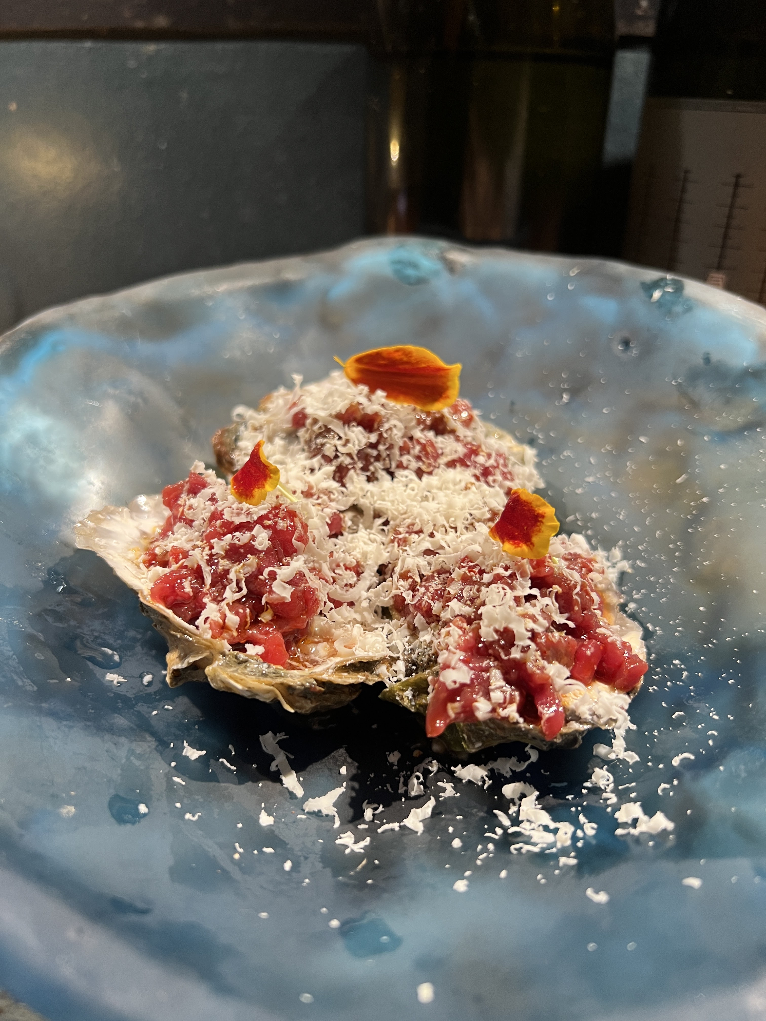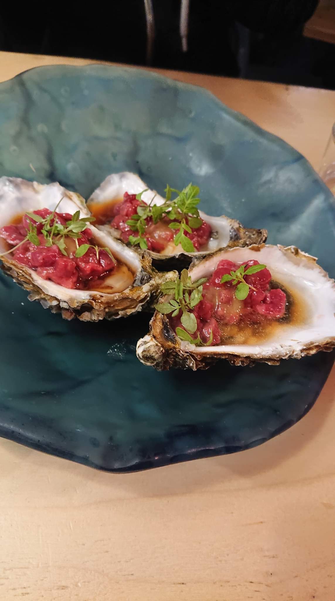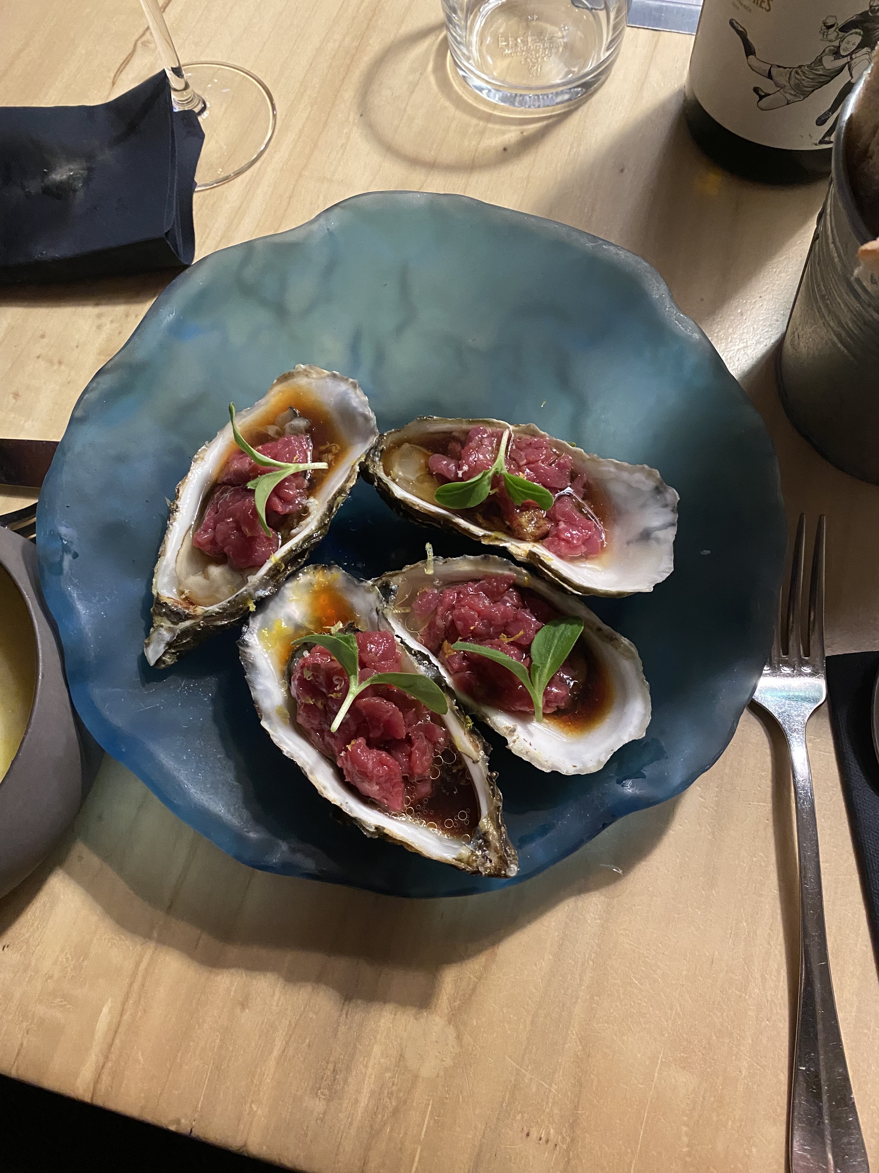Endroit bien sympathique, tapas savoureuses: les patates…trop bonnes. On a aimé les trois huîtres, le cabillaud, le chou-fleur rôti, le saumon gravlax avec le bouillon de bonite.
