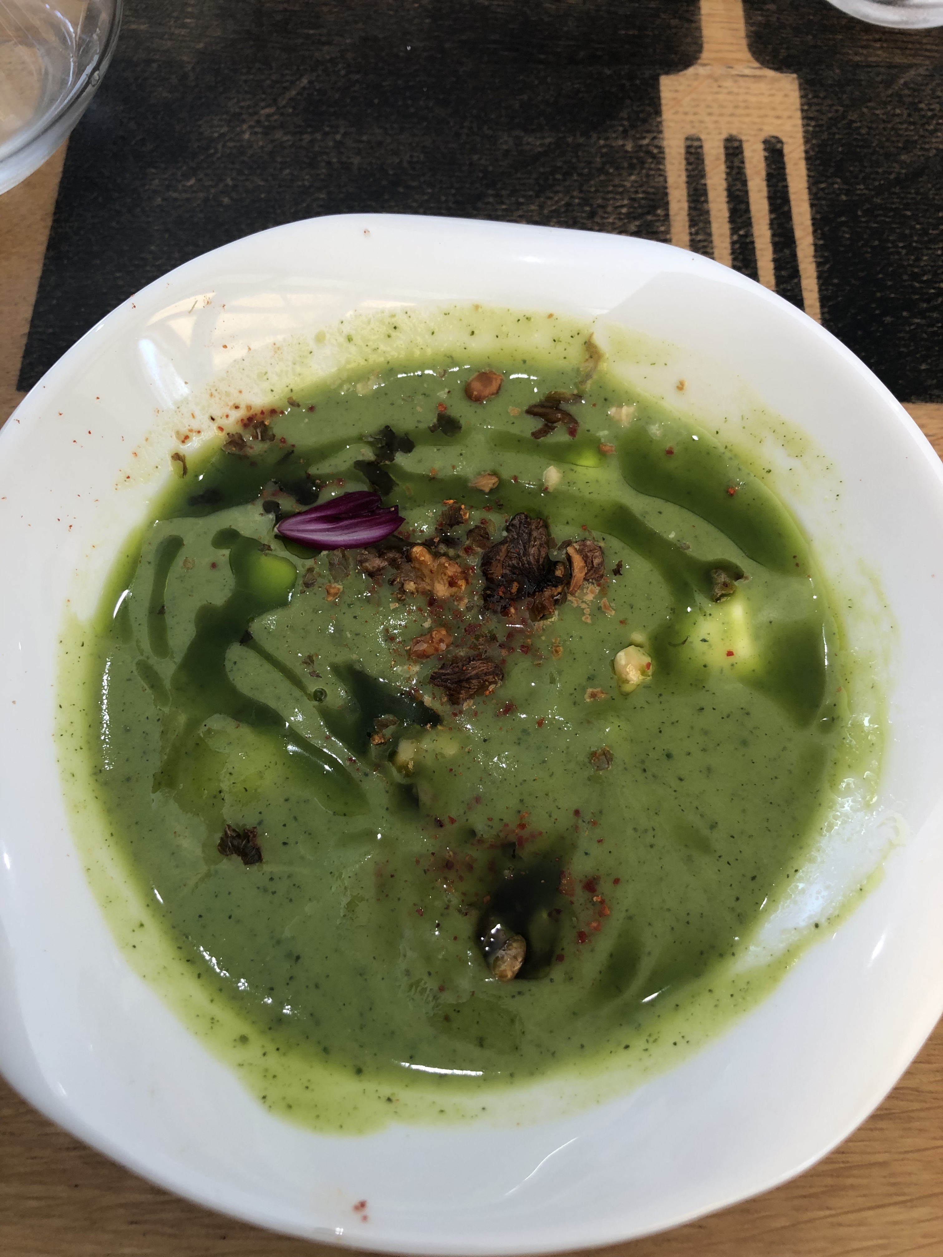 Deuxième fois que je venais dans ce très sympathique restaurant. La première fois, en été, en terrasse. Le cadre extérieur était très agréable. Cette fois-ci, nous étions en intérieur vu les températures et même sentiment. Les deux fois, la cuisine était très goûtue avec des recettes recherchées et qui varient en fonction des légumes et fruits de saison. Les aliments sont frais, cela se sent et ravie nos papilles. Nous sortons repus — mais pas lourds — de ce repas. Jamais deux sans trois, nous reviendrons pour sûr. Bravo à toute l'équipe très accueillante et chapeau au chef ! En photos : velouté de potimarron avec son oeuf parfait, champignons et des graines pour le croustillant, onglets de veau avec des épinards et pommes de terre, sauce au vin rouge (succulente !) et en dessert un rocher au miel et poire, boule de glace à la noix. (pas du tout écoeurant, très bon et très aérien)