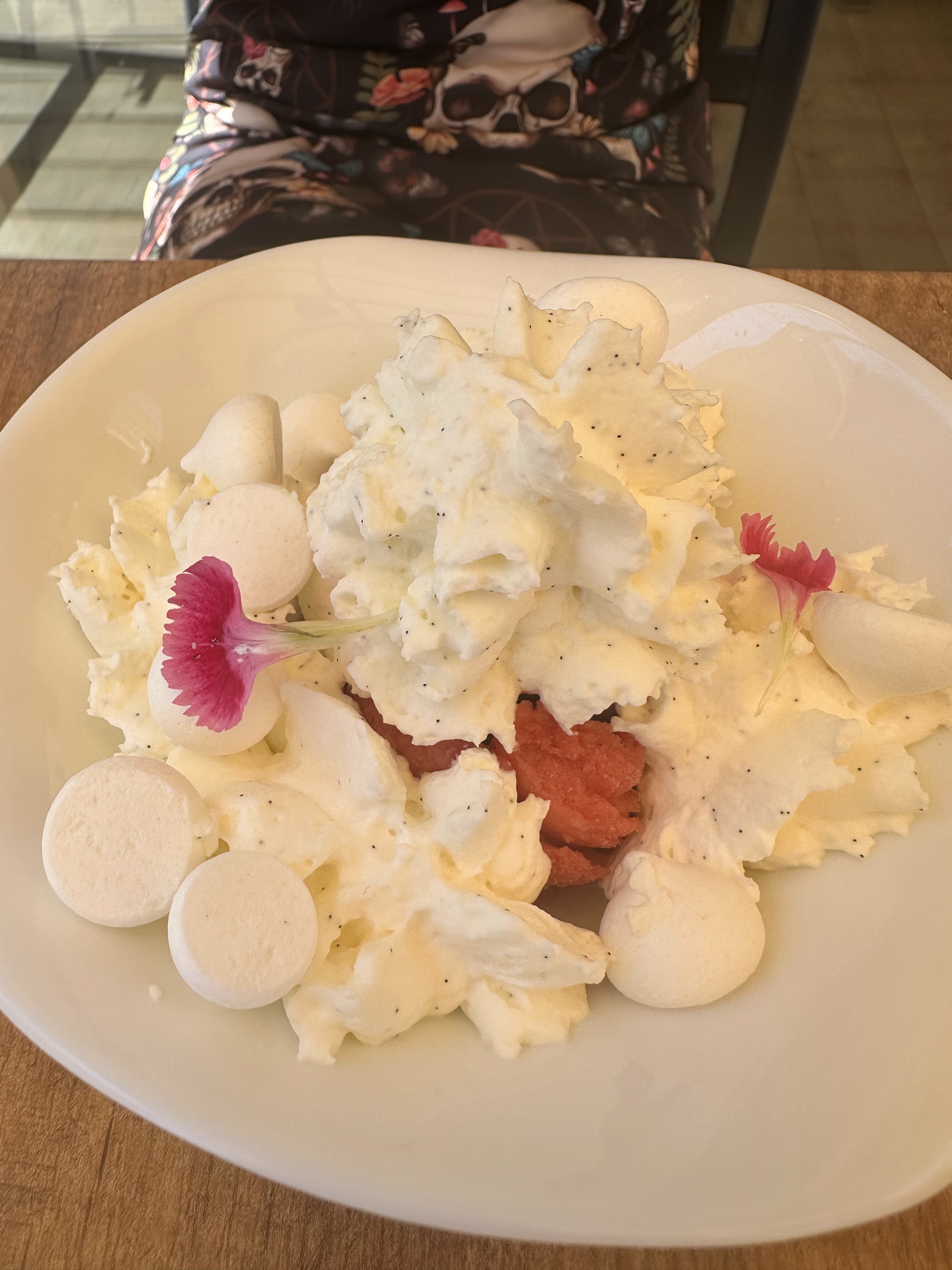 Depuis le temps que je voulais y manger! Service rapide et efficace, je me suis installée à l'intérieur qui est climatisé. Cuisine exceptionnelle, je recommande vraiment ! Photo d'une assiette d'orzotto crémeux, chorizo, Saint Jacques (cuisson parfaite) et pour le dessert rocher au chocolat Dulcey Valrhona et une chantilly super légère !