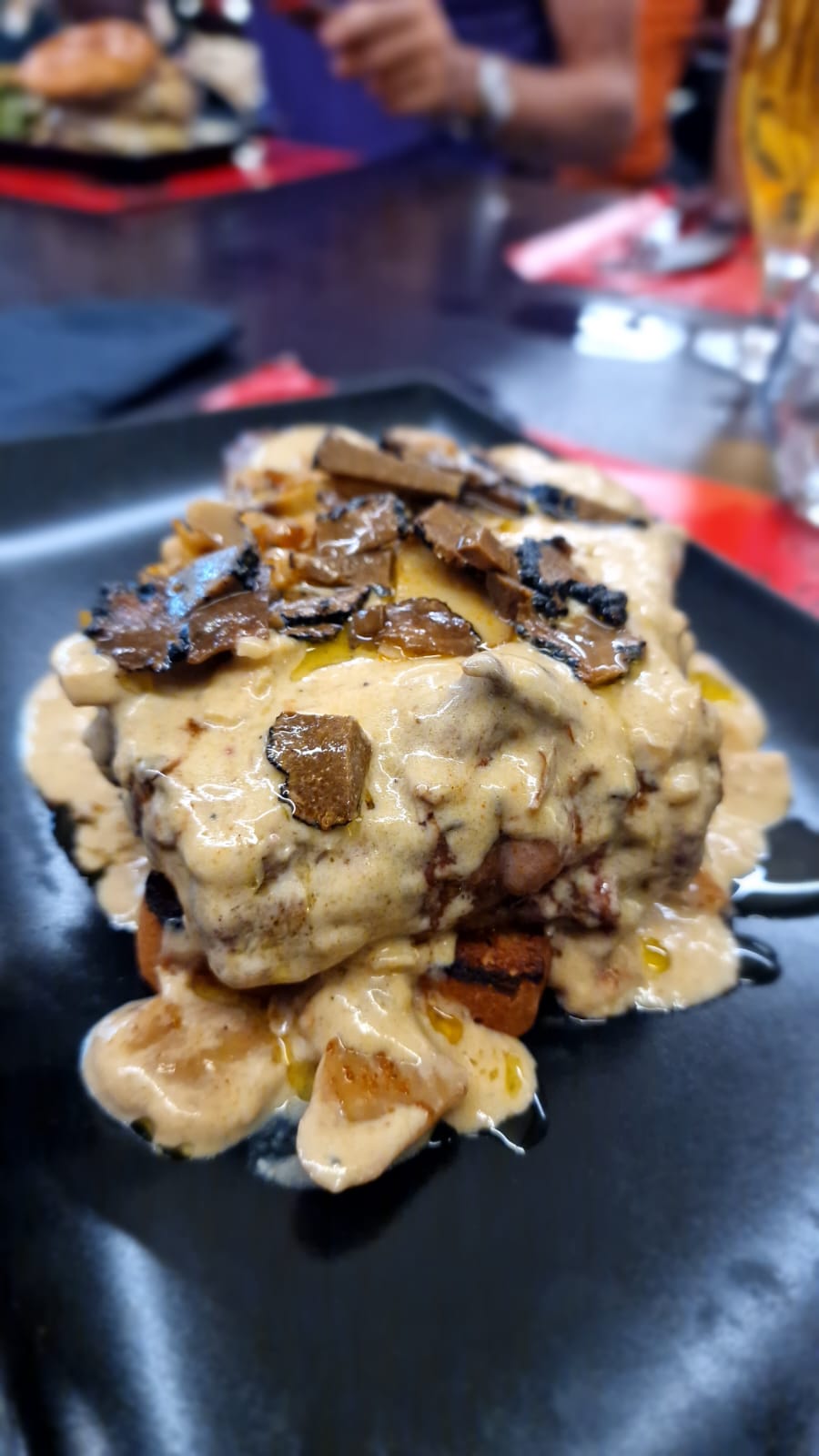 Rapport qualité-prix absolument excellent. Des portions énormes... il est recommandé de partager ou simplement de manger un apéritif. Vous êtes assis ensemble sur des bancs autour de grandes et longues tables. Beaucoup de foie d'oie et de truffes. Bruno est excellent avec la viande. Pour moi, c'est parfait Local en saison froide...
