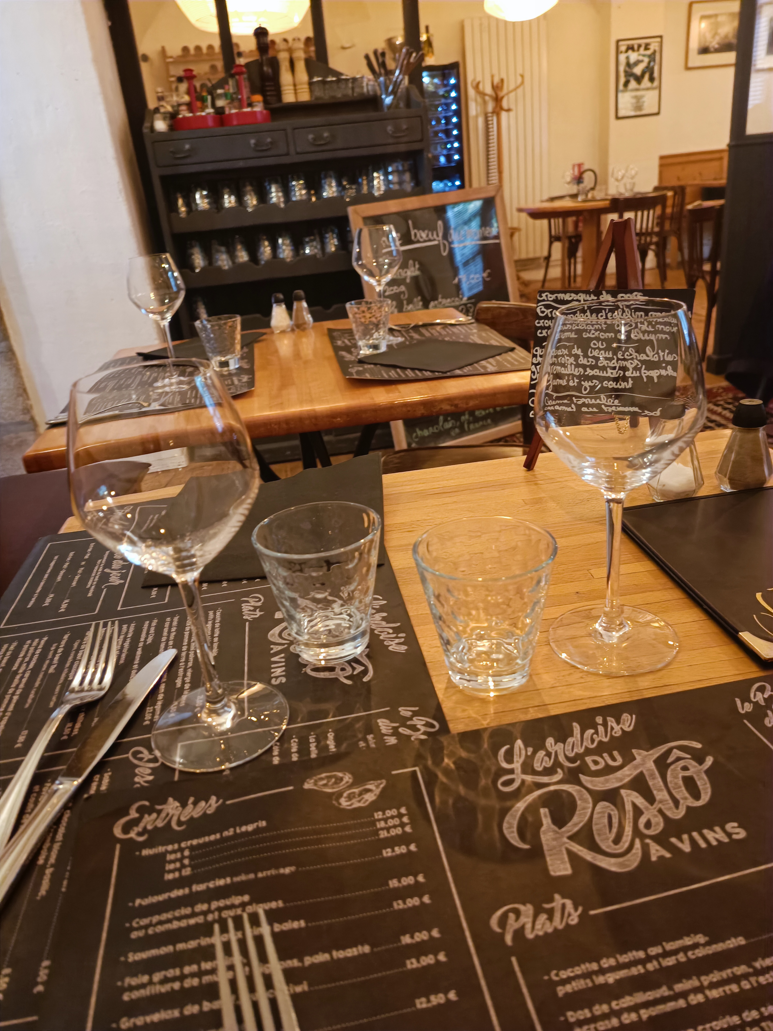 Resto a vins des atouts,et des points a améliorer. Carte variée,belle présentation des plats bons produits.aperitif vin au verre commandé belle saveur,par contre pas même un petit gâteau apéro propose,avec les huitres pas de beurre.minuscule morceau de citron .le reste rien a redire conforme a une cuisine bistrot.servive, accueil, amateur.