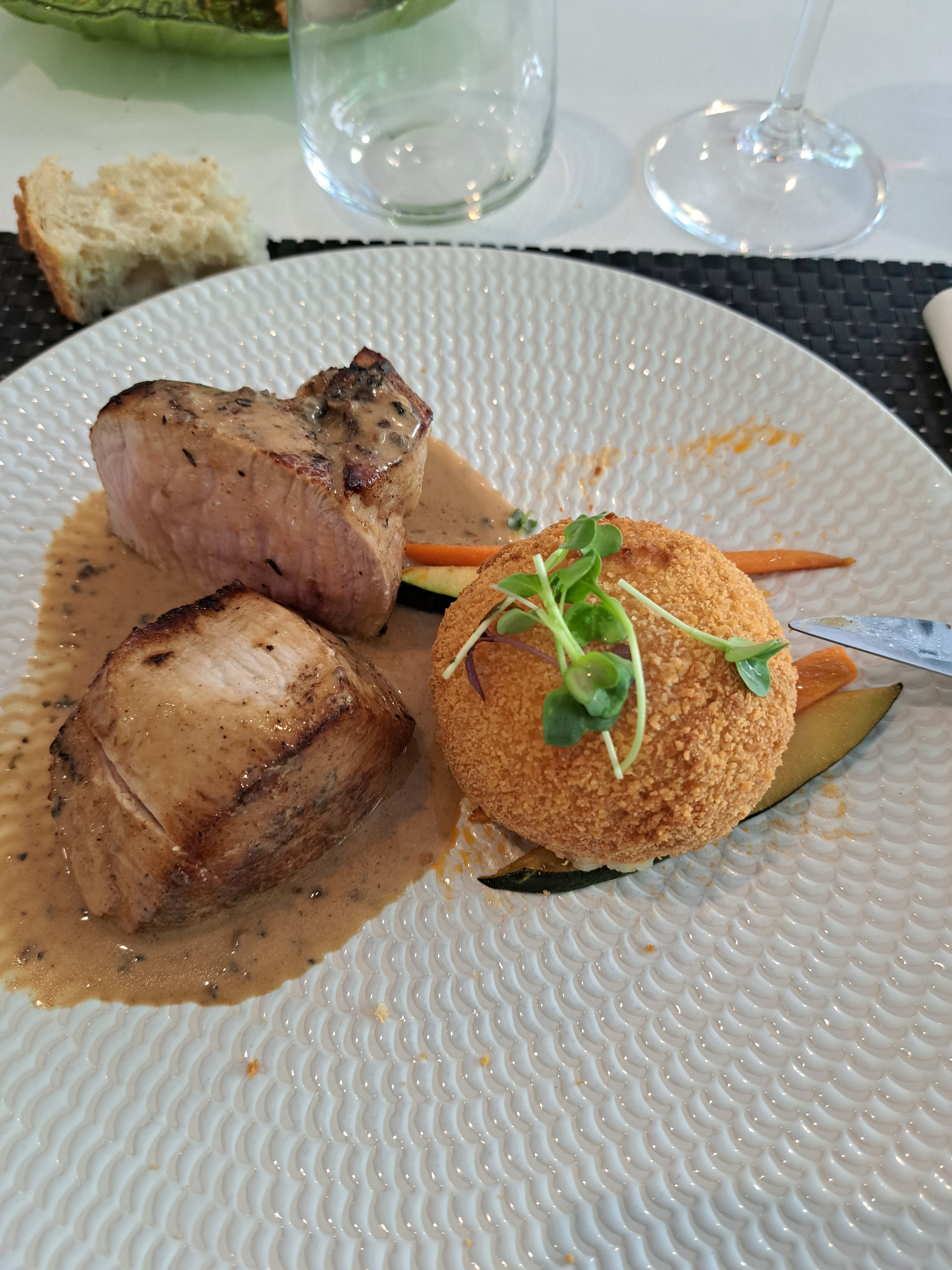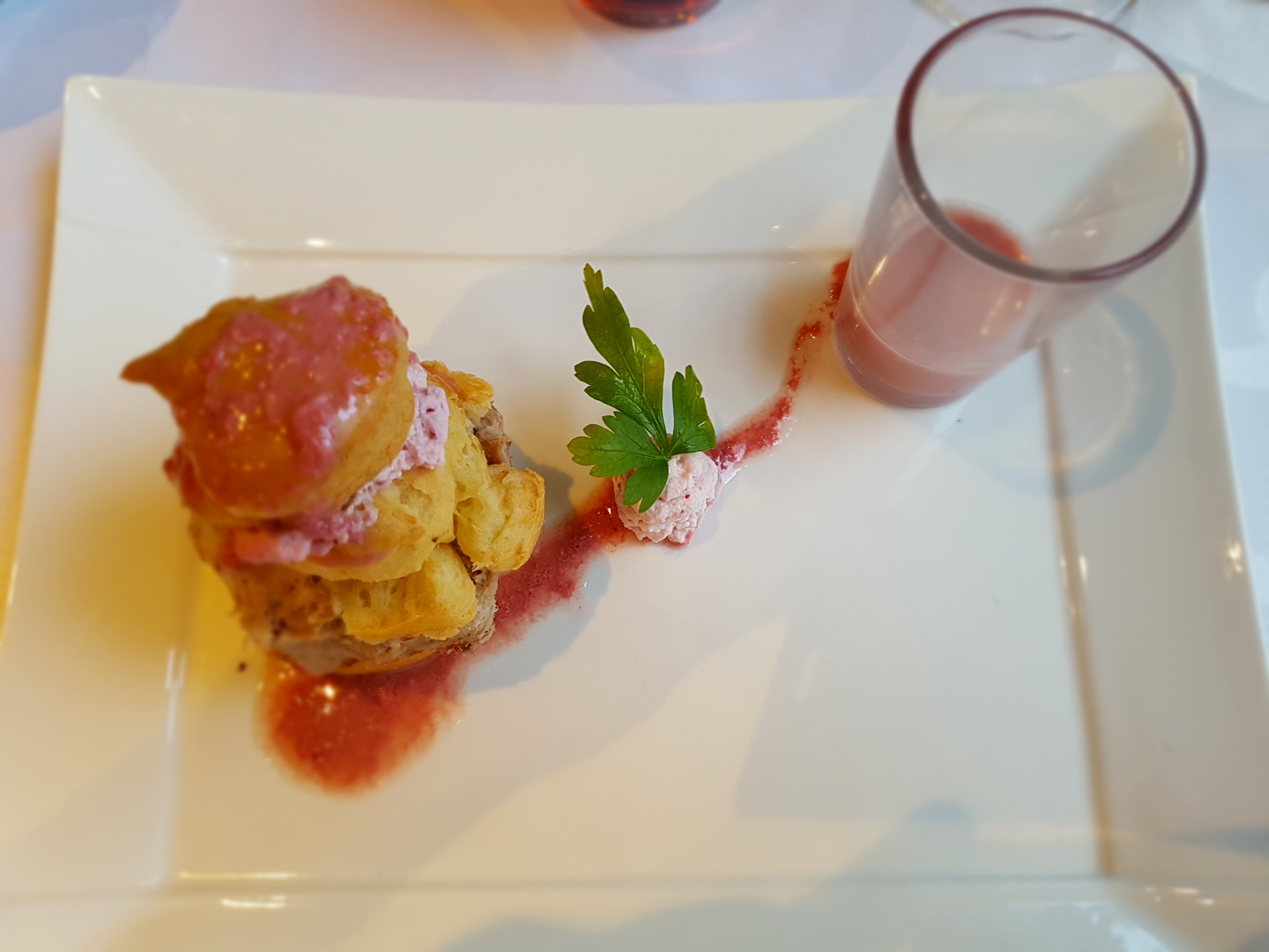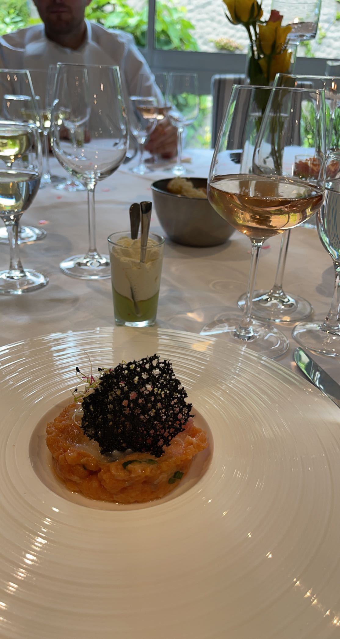 Un beau et bon déjeuner en famille, présentation des plats soignée,et raffinée qualité des produits ,le dessert LA pomme de pin du chef est visuellement superbe et délicieux.