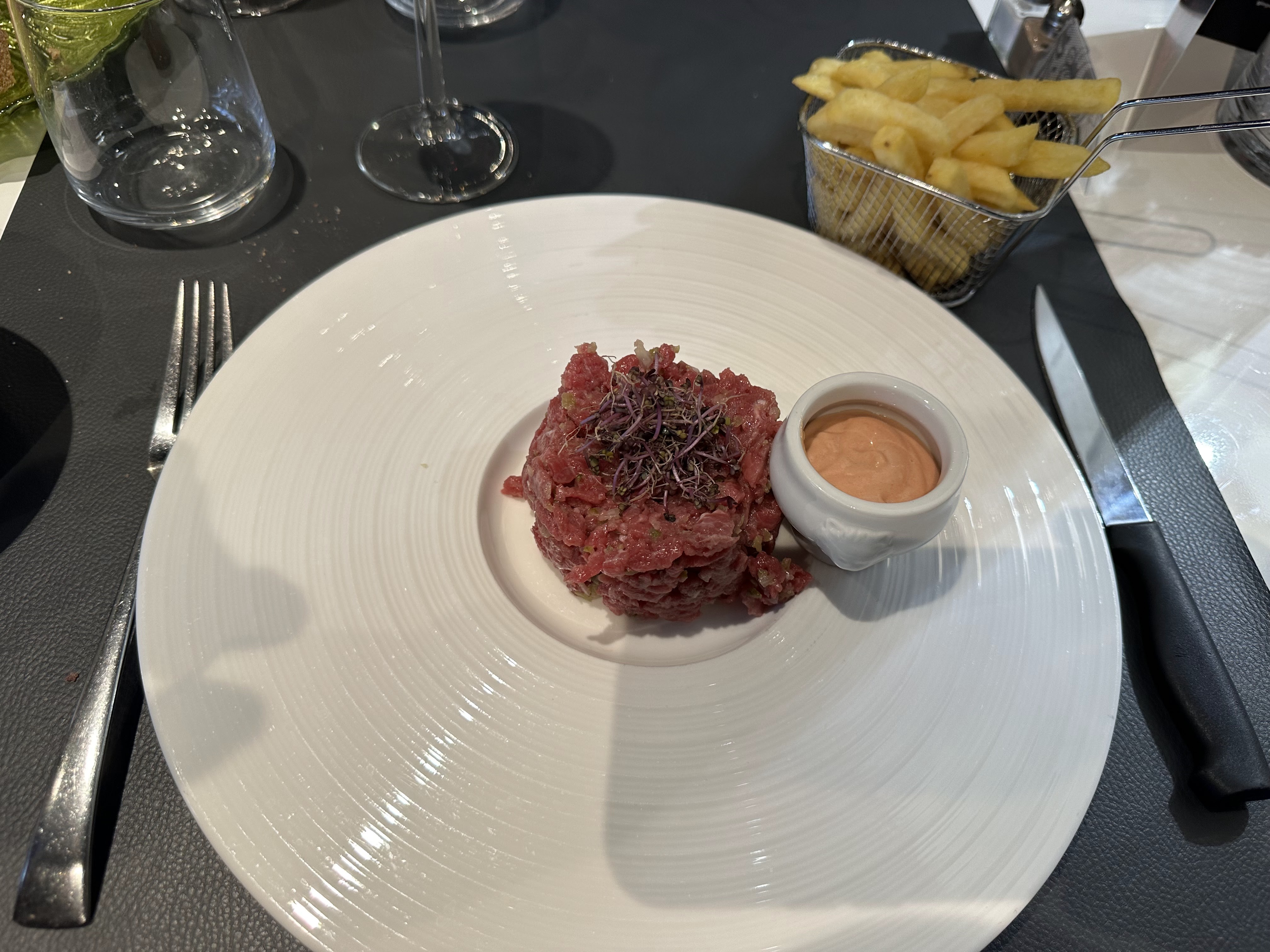 Très beau cadre mais ne suffit pas à compenser le manque de professionnalisme. Attente très longue , eau plate et verre de vin oublié pour l’entrée , tatares de bœuf trop épais en bouche j’aurais aimé une texture différente malheureusement pas agréable les frites on rattrapé le plat , magret de canard demandé cuisson bleu , arrivé trop cuit , beaucoup d’oubli, manque d’effectif ou de professionnalisme ? Je vous laisse choisir . Satisfait de ma Crème brûlée , popcorn de trop n’a rien à faire dans ce bon désert , pour résumer malheureusement pas assez satisfait pour revenir une deuxième fois