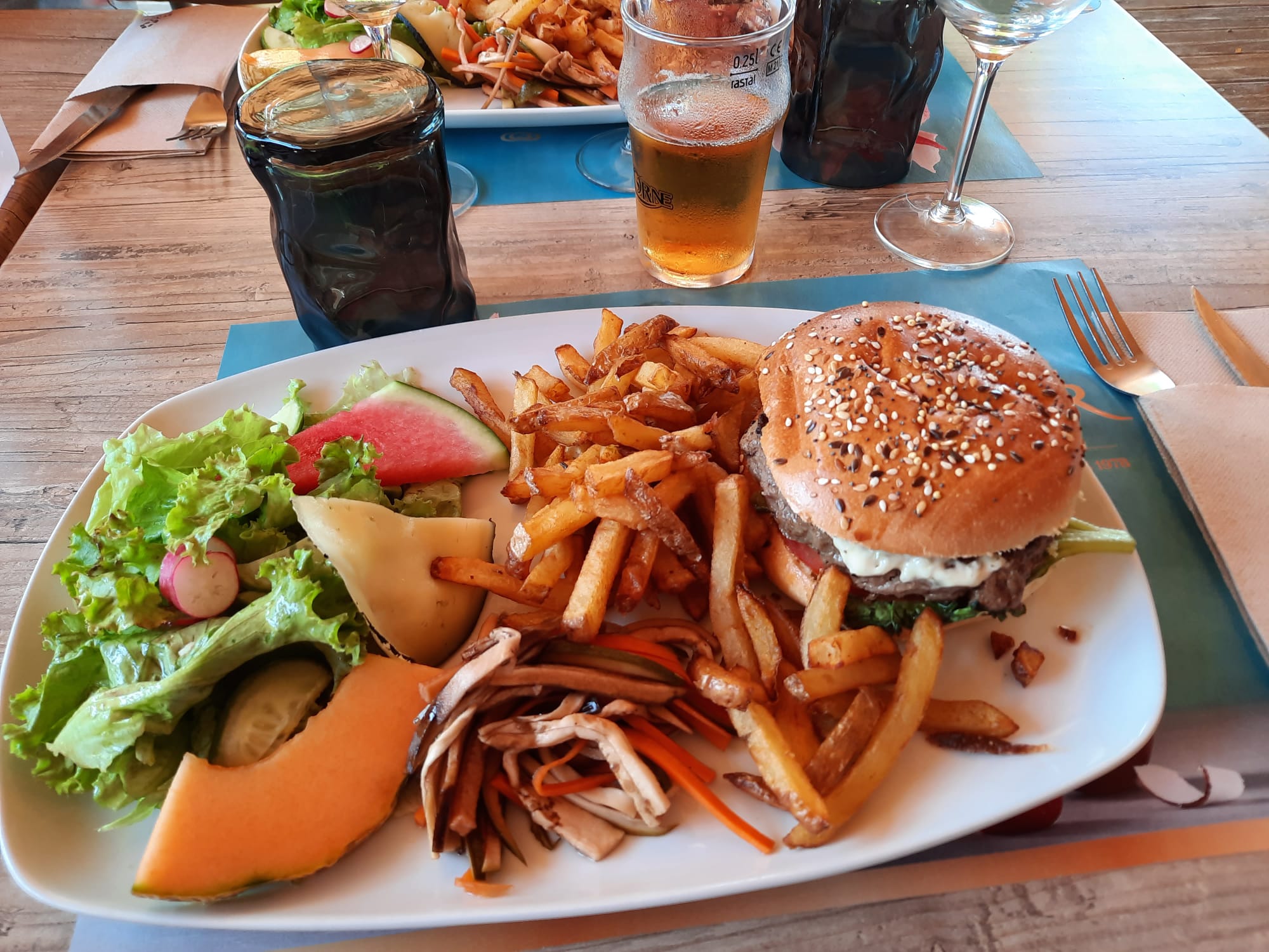 Tout d'abord les points positifs : belle vue sur le lac, belle terrasse ombragée, respect des règles sanitaires (distance des tables et gel hydroalcoolique sur les tables), accueil à l'arrivée plutôt agréable. Un premier point négatif : rapport qualité prix élevé (un demi de bière blonde, un burger magret de canard et foie gras + frites maison à 18.90, et une coupe de glace à 3 boules, coulis et chantilly à 7.50 le tout pour 29 euros). Le point le plus négatif pour moi est l'absence complète de souplesse, pour ne pas dire la psycho rigidité du responsable, pour le remplacement des frites par du riz (riz servi par ailleurs avec un plat de seiche à la plancha) pour des raisons d'intolérance alimentaire liée à la friture !!! Quand on se défend de faire une cuisine fraiche chaque jour, de tenir un établissement de qualité et d'accéder à la demande de remplacement d'un accompagnement en basse saison, je ne comprends pas pourquoi cela n'est pas possible en haute saison ... l'expérience n'a pas été complètement négative néanmoins je ne retournerai pas dans ce lieu. La prochaine fois que je serai dans le coin, j’essaierai la Girouette.