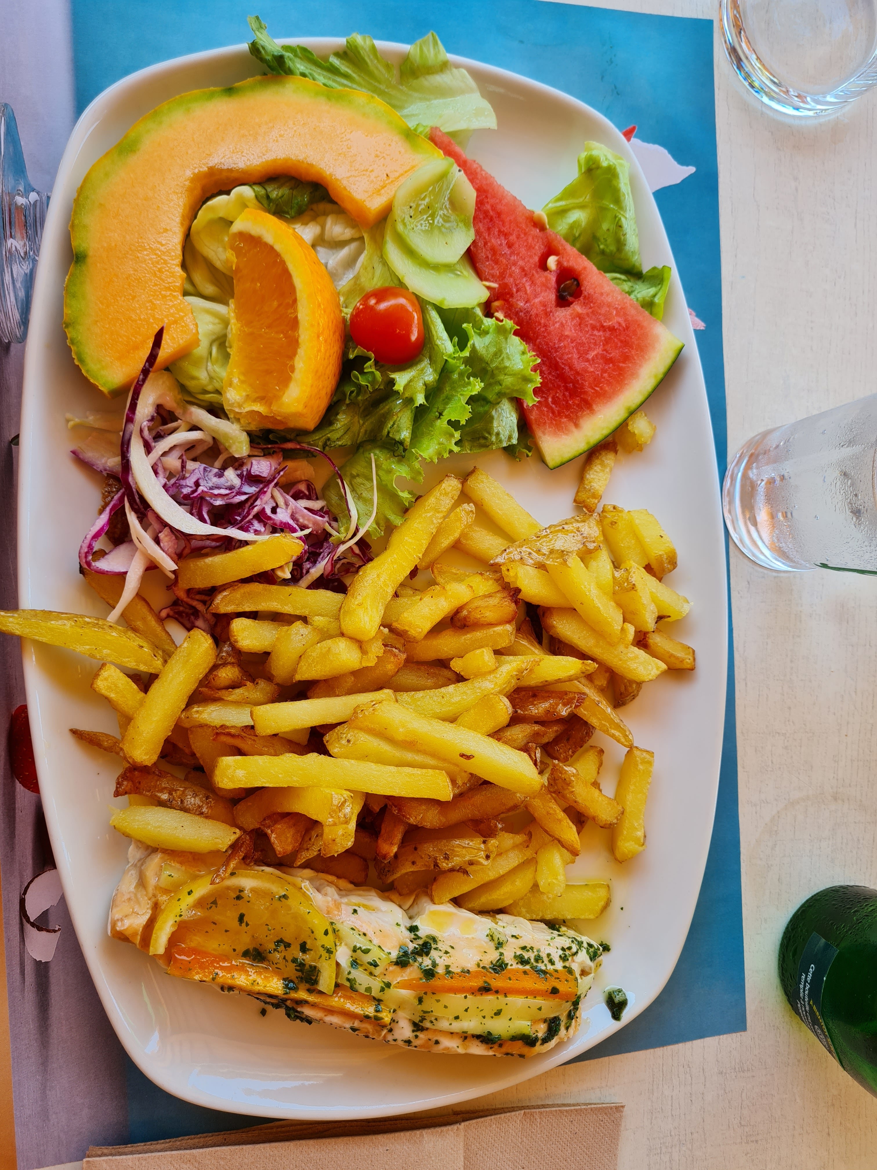 Accueil et service dans la bonne humeur, très sympathiques. Repas copieux pour adultes et enfants. Le poisson était excellent! Emplacement top. Je recommande