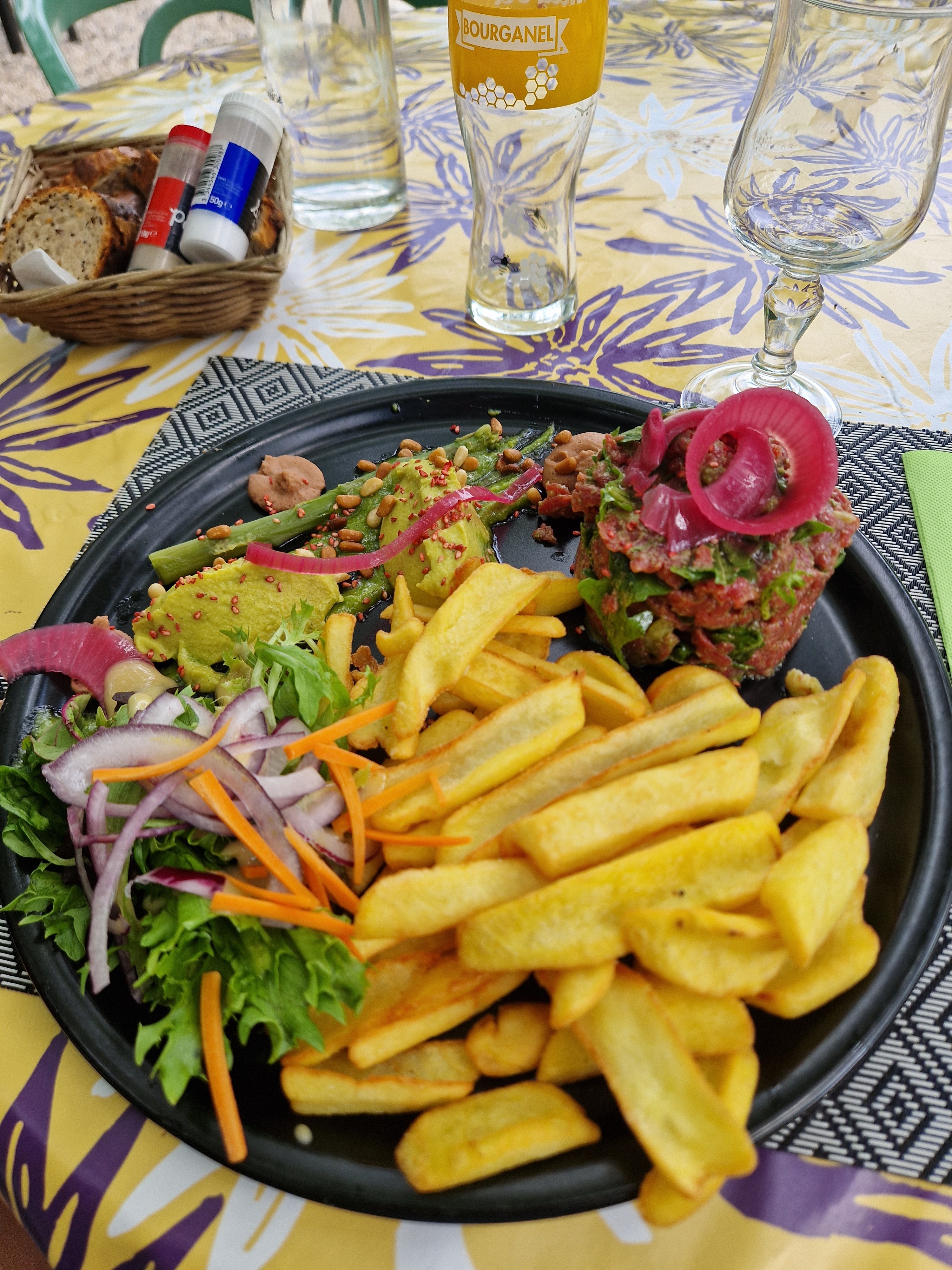 Suite aux nombreux avis positifs nous avons eu envie de découvrir cet endroit. L’ambiance plutôt sympa, si nous oublions le faite d’être en bord de route. Les plats arrivent, nos frites n’étant pas cuite nous demandons au serveur de repasser les frites à la friteuse ! Il se permet de goûter les frites dans notre assiette et nous dire que pour sa part elles étaient cuite « c’est comme ça que je mange mes frites ». Une honte il suffisait simplement de nous proposer une recuisson. Les plats ne sont pas servis en même temps. Le tartare de bœuf laisse à désirer également.