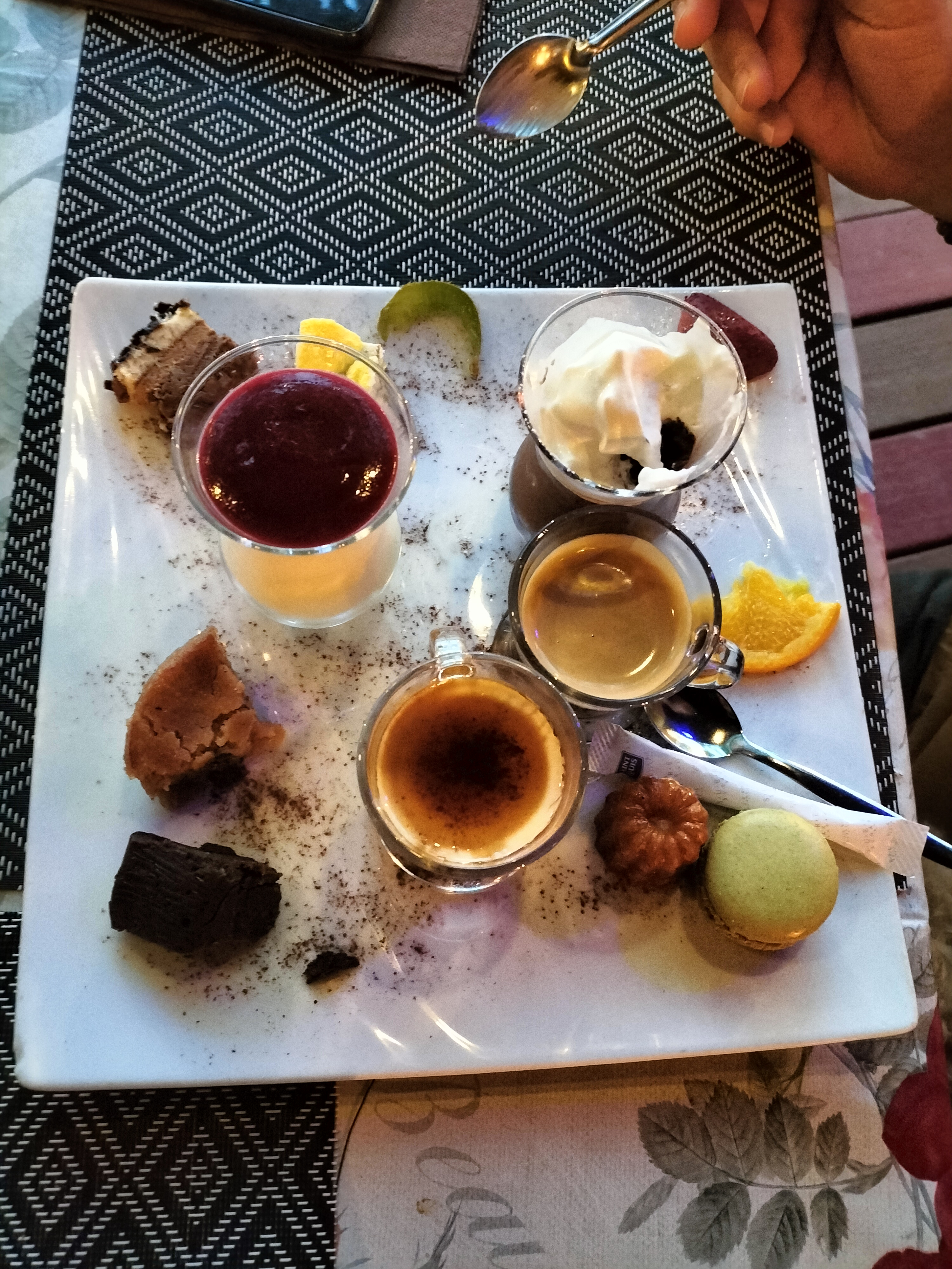 Personnel adorable. Repas délicieux. Tout fait maison et prix très abordables Café gourmand à 9.50e pour 7 desserts miniatures du jamais vu. On vous le conseille