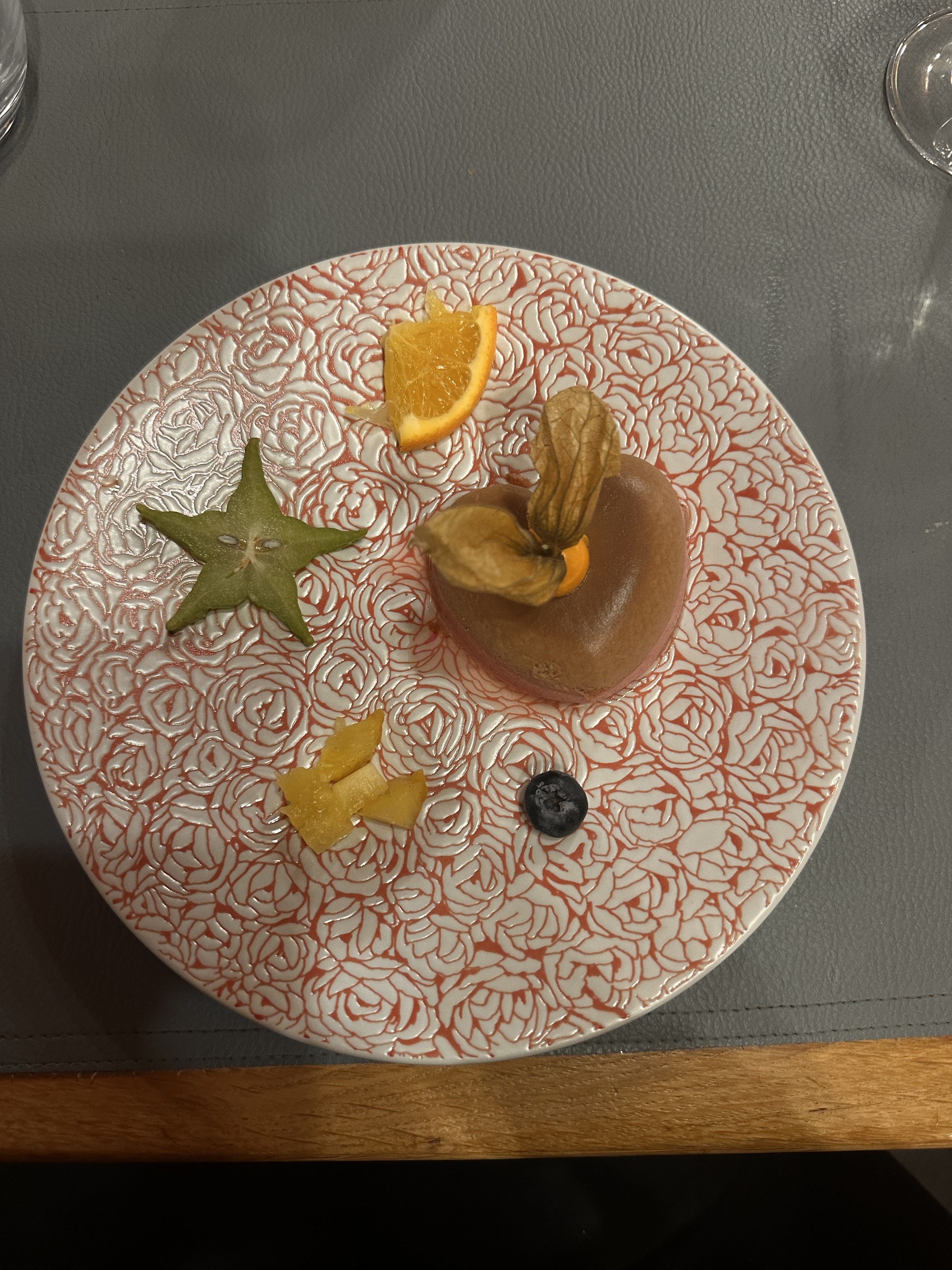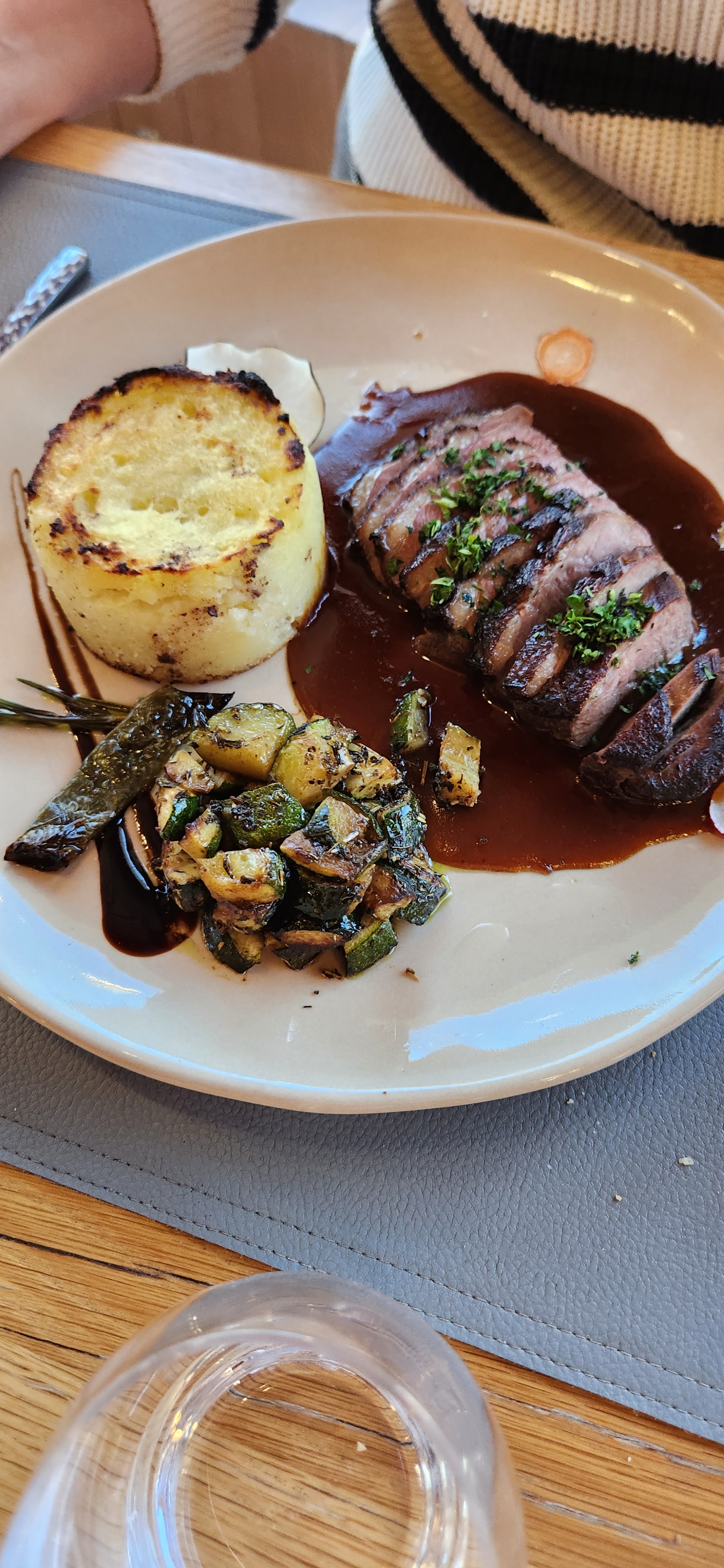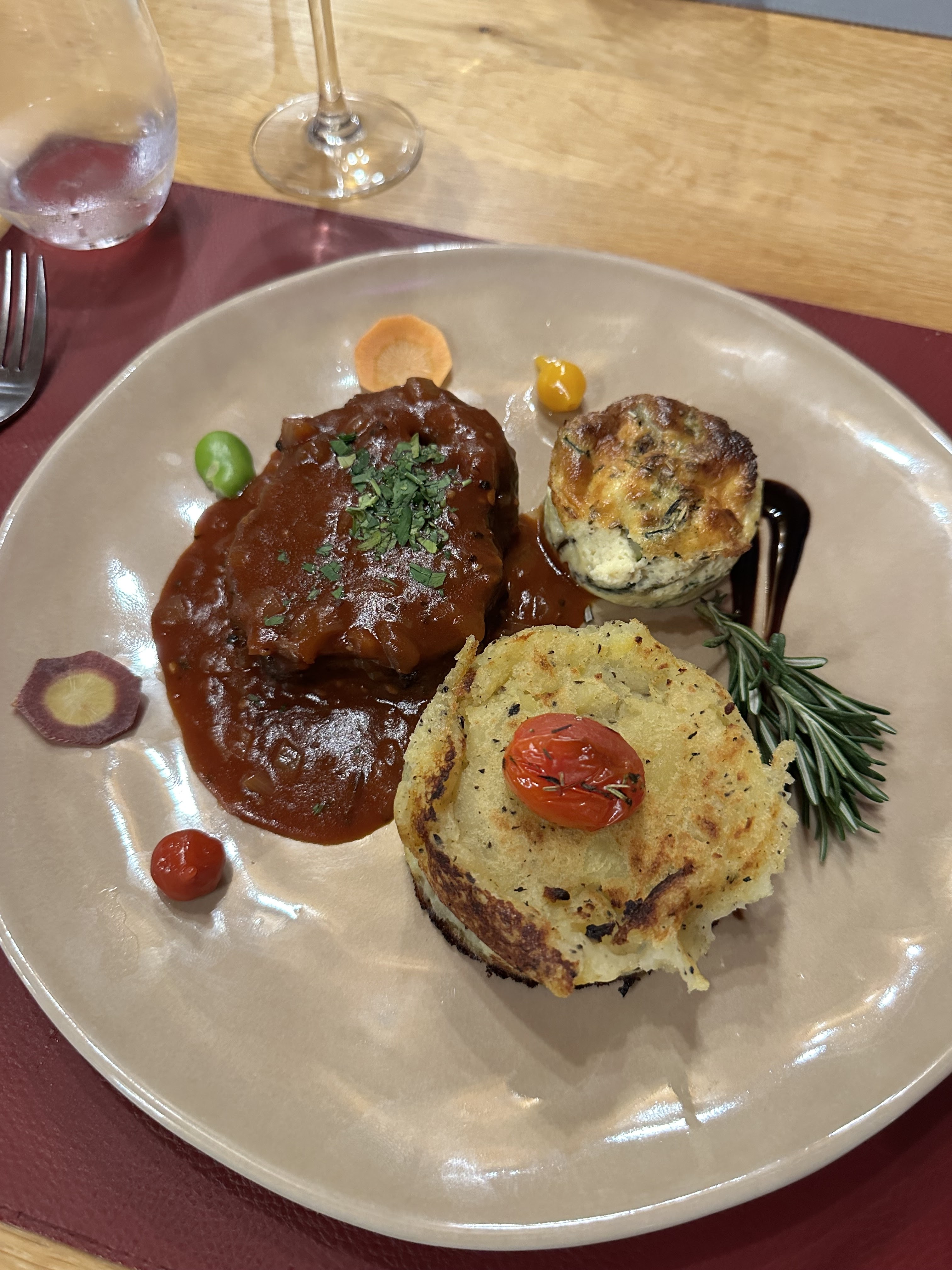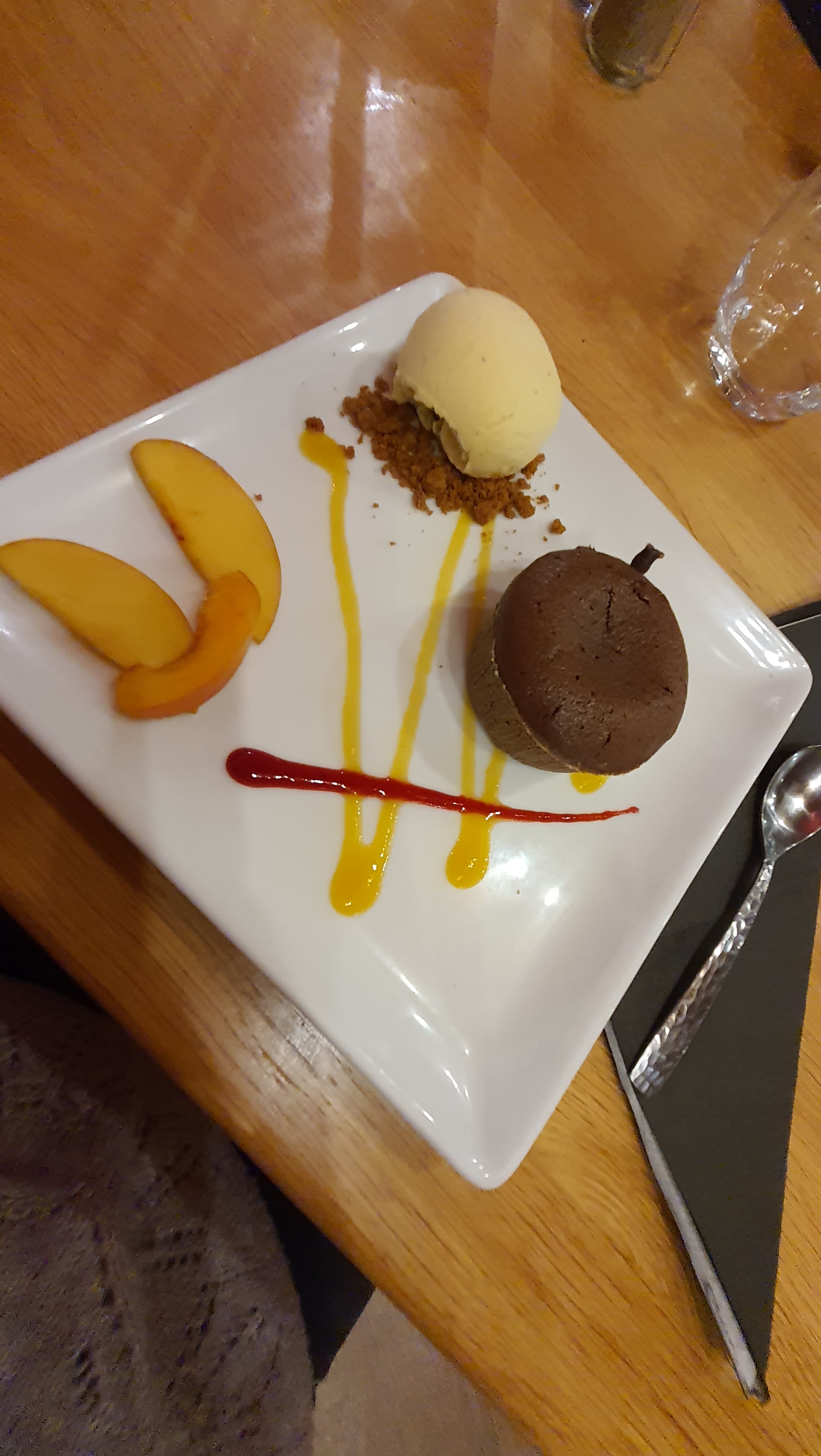 Moi qui suit une bonne mangeuse.... il ne faut surtout pas avoir faim ! Entrée délicieuse ! Mais le plat n'était pas assez abondant pour ma part... 2 cuillères à soupes de purée de courgette avec une côte d'agneau... bref j'avais encore faim après avoir finie le plat. Dessert très bon. S