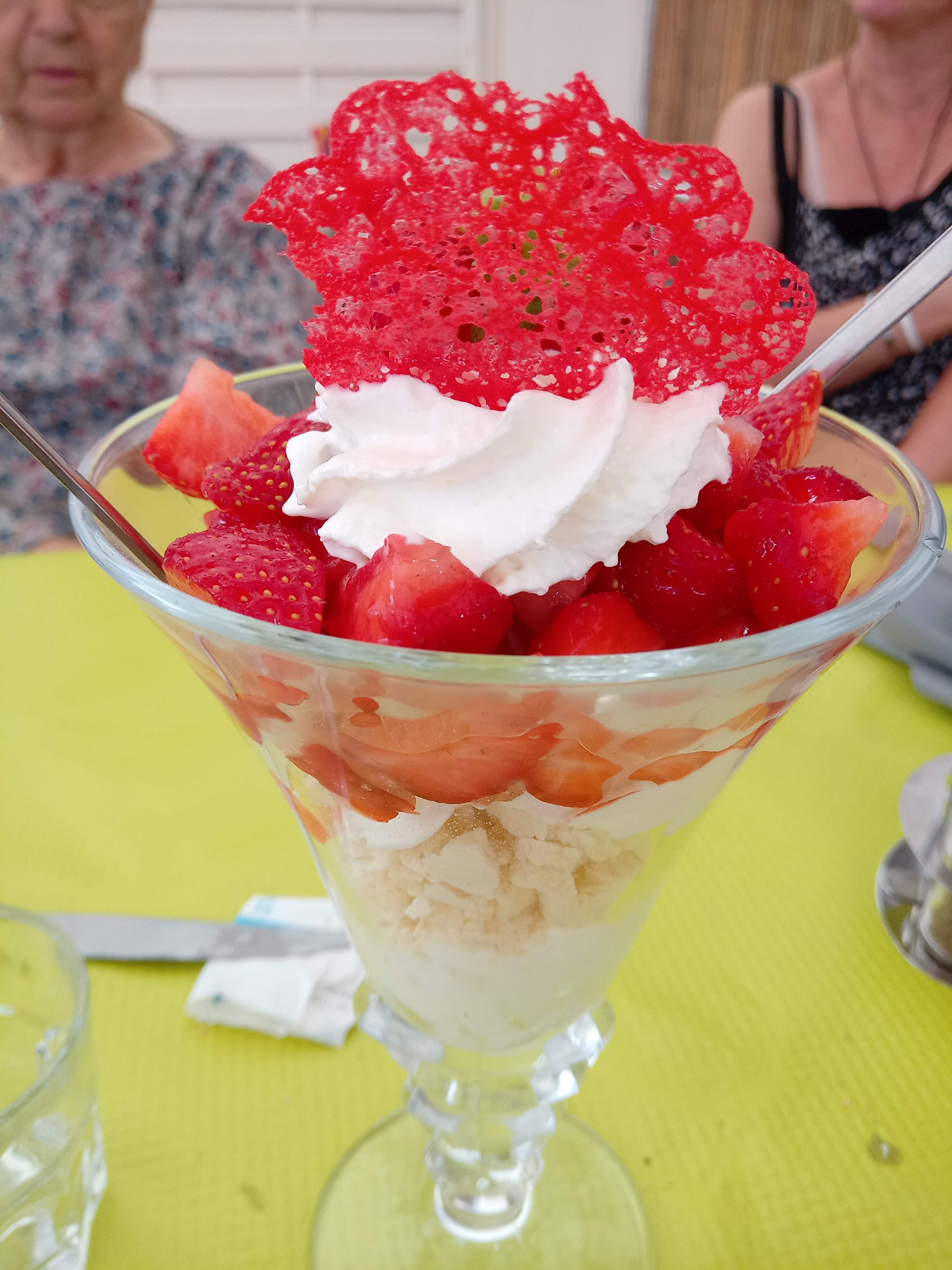 Moules de bouchot au gorgonzola Coupe Pavlova aux fraises Miam ! Et un accueil chaleureux.