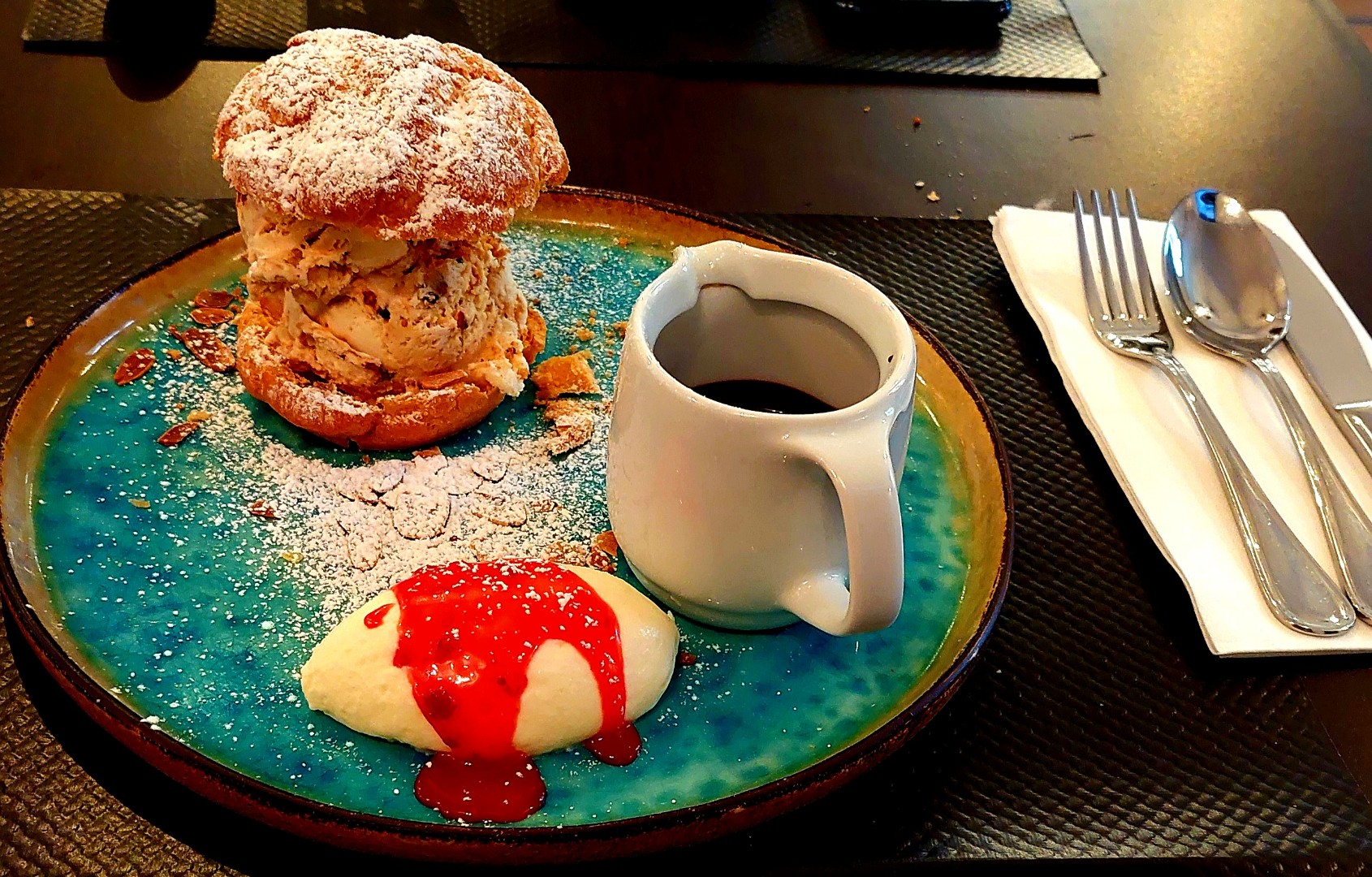 Très belle découverte. Des plats généreux de qualité et très bien présentés. Les meilleures profiteroles jamais goûtées. Un service au top. On ne peut que conseiller, courrez y vous allez vous régaler