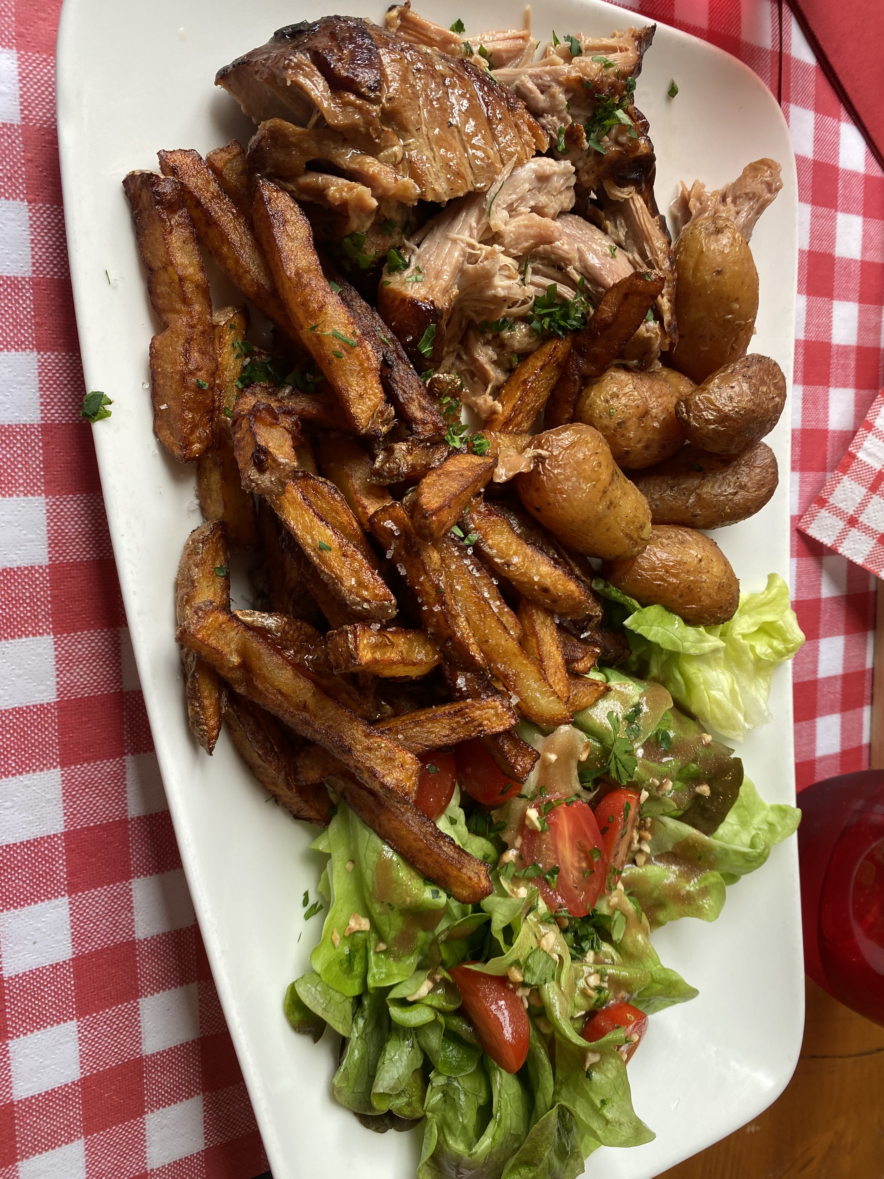 Nous y sommes allés déjeuner à midi. C’est une cuisine traditionnelle, dans un lieu très sympathique, au bord de l’eau. ⛵️ Les plats sont délicieux, en quantité et rapport qualité prix parfait. 🥩 Ambiance chaleureuse avec un super Service. 🛎️ Je recommande sans hésiter 💡