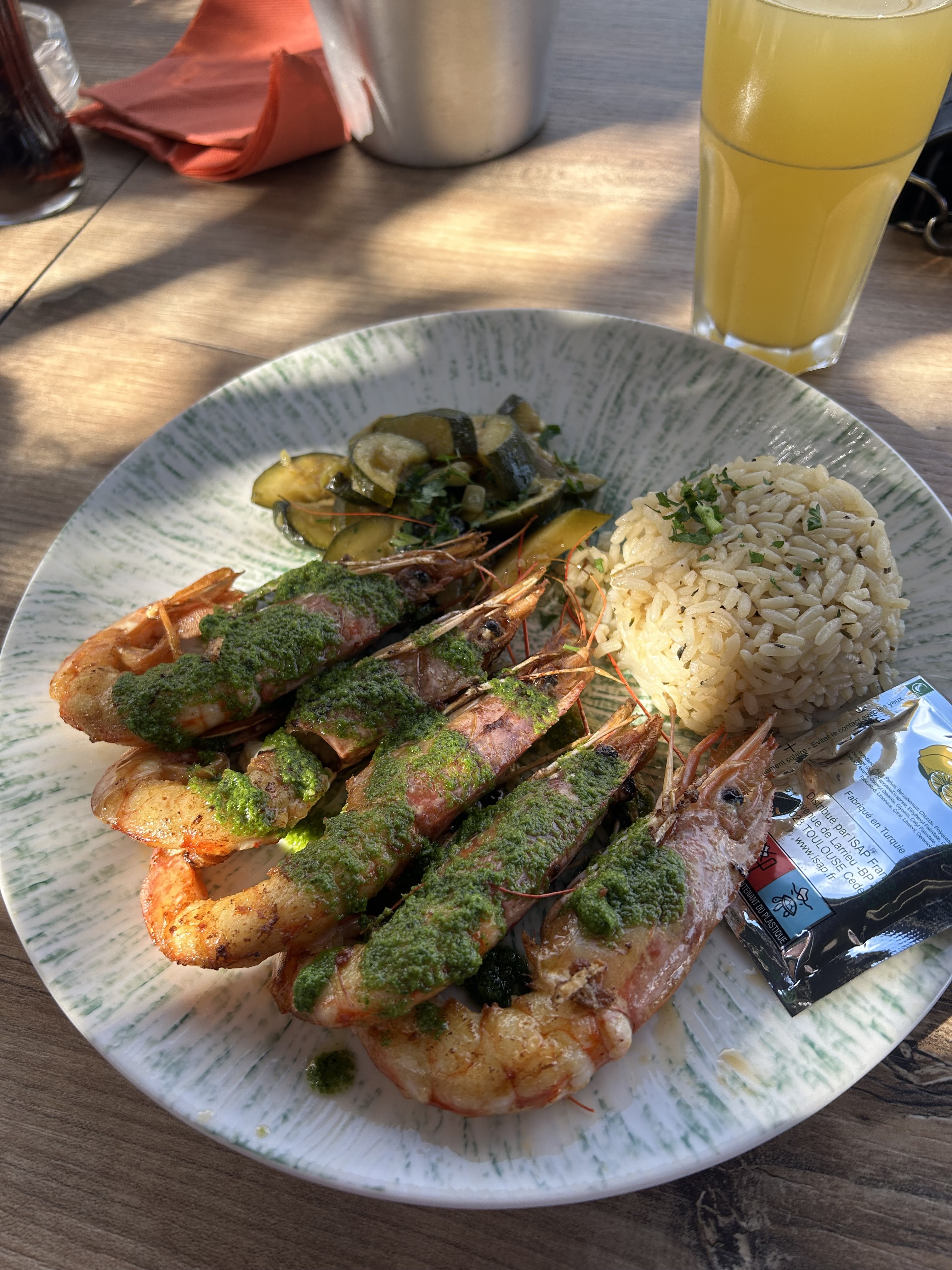Ne pas venir car on vous propose plat du jour avec riz salade frites.Pas de frites!!quand on demande au serveur : ah non pas de frites, j ai pas parlé de grites. Nous étions 3 à l entendre au depart... Plat du jour , pas grand choses à manger ,petite timbale de riz et quelques calamars+ 2 crevettes ultra frits presque cramés !!! 14,90 € cher l assiette. A fuir, piège à touristes