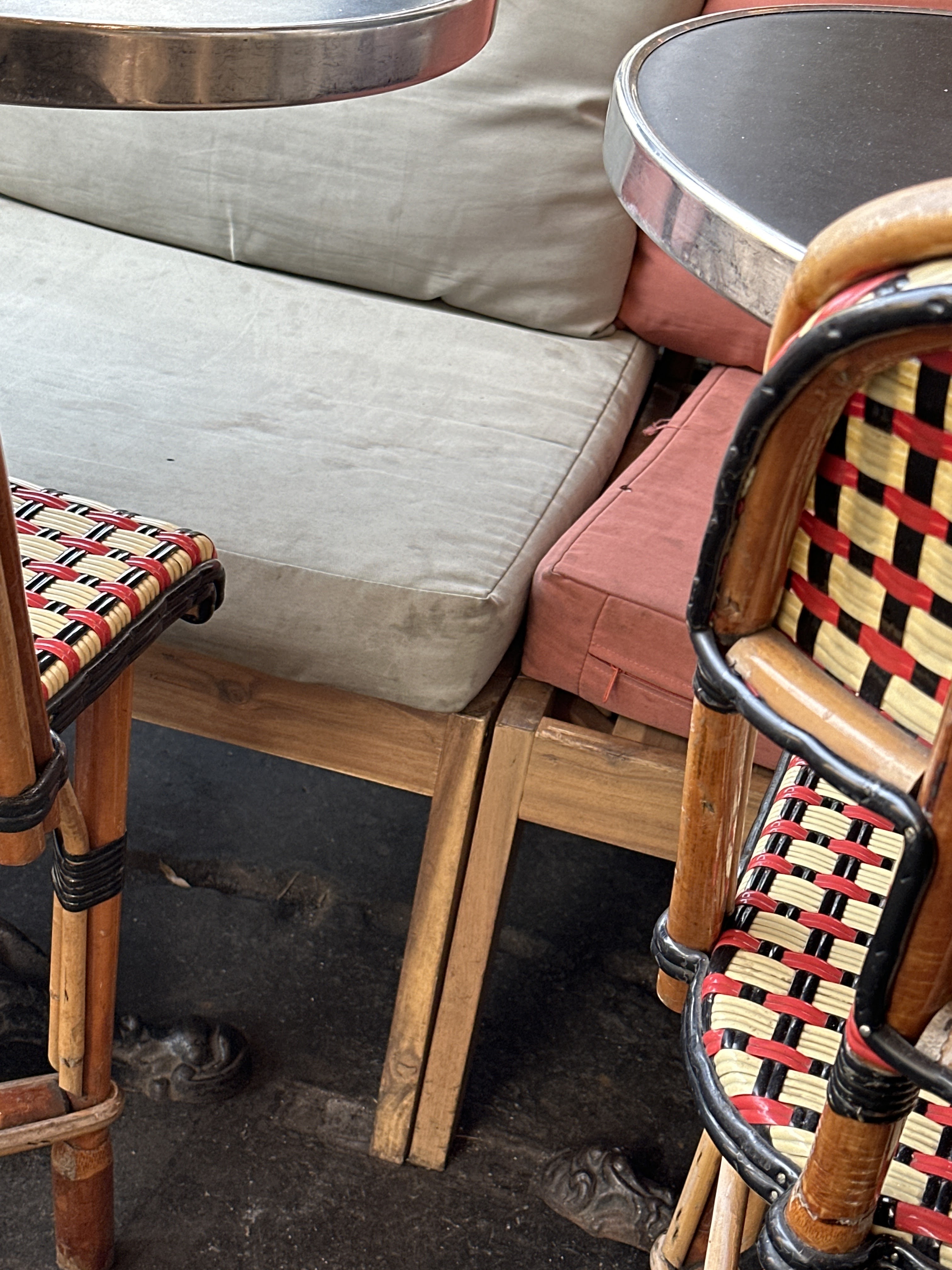 Nous nous asseyons il fait très chaud . Pic de chaleur sur paris Je demande une carafe d'eau On m'apporte deux petits verres d'eau et on me dit que les carafes sont réservées à la restauration Je ne parle même pas de la légendaire amabilité des serveurs parisiens Bref a fuir