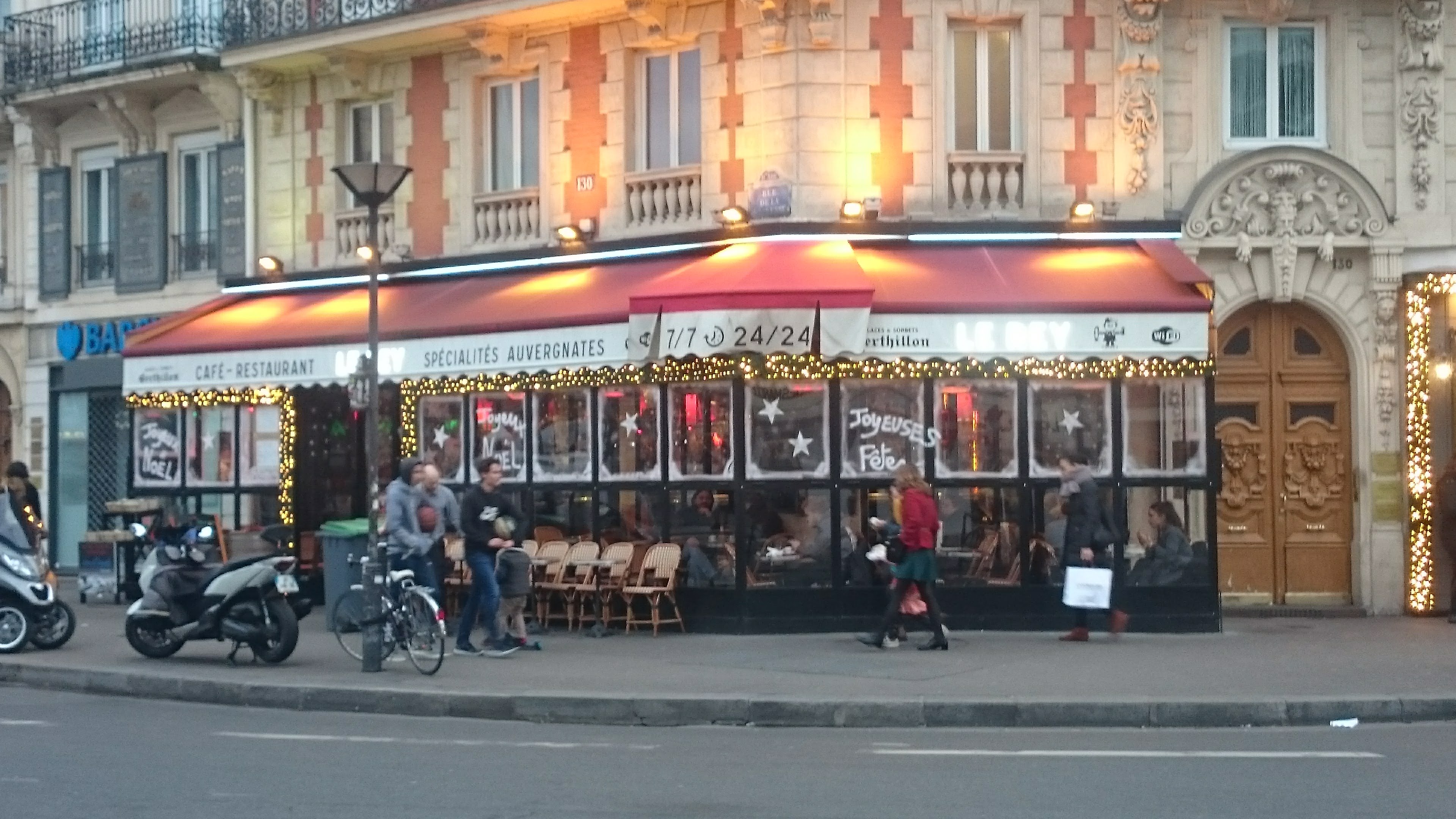 J’aime bien prendre mon petit dej ou mon petit caoua dans cette ambiance de brasserie ça râle ça « s’engueule » ça refait le monde l’ambiance est parfois, selon l’heure, survoltée.Les serveurs sont tjrs en colère contre le patron mais ça fait partie du décor ils sont grandes gueules mais tout compte fait gentils et serviables. coté resto c’est variable les assiettes sont copieuses mais c’est un peu inconstant pas en qualité de produits plutôt dans la façon de cuisiner les plats en pleins rush c’est parfois un peu moyen il faut trouver le bon créneau horaire et là l’assiette sera royale