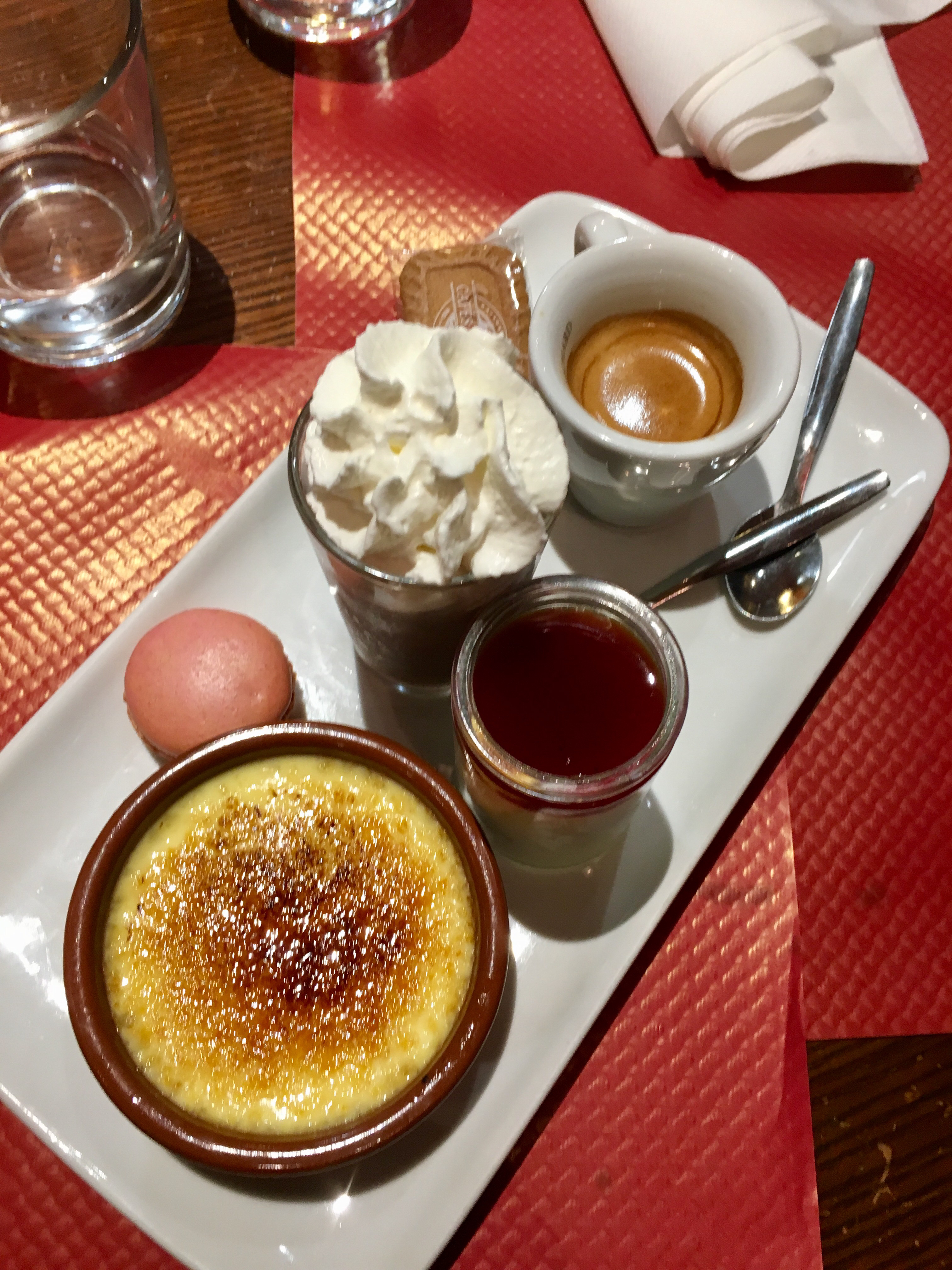 Nous sommes venus dans ce restaurant car il nous avait été recommandé par notre B&B et nous en sommes repartis très satisfaits ! C'est un endroit assez grand avec de nombreux sièges. Le service était très serviable et accueillant. Nous avons été accueillis et notre serveur a fait de son mieux pour tout nous expliquer en anglais même s'il ne parlait pas couramment. Ce n'est pas toujours le cas dans certains endroits à Paris donc nous en sommes très reconnaissants. C'était aussi bien qu'ils aient des traductions en anglais sur le menu mais les promotions étaient uniquement en français. J'ai eu le poulet rôti avec des frites que j'ai trouvé bien, la nourriture est arrivée très rapidement et bien présentée mais malheureusement elle avait un goût un peu fade. Les chips auraient pu être un peu plus croustillantes aussi ! Pour le dessert j'ai essayé le café gourmand qui était un dégustateur de plusieurs desserts et d'un café. Notre aimable serveur nous a également offert un macaron à déguster. Encore une fois, c'était très bien présenté mais le goût était juste moyen. Je reviendrais certainement et le recommanderais à tous ceux qui recherchent un repas à un prix raisonnable. Même si le goût n'était pas exceptionnel, je me sentais très bien soigné et pas du tout aliéné en tant que non-francophone.