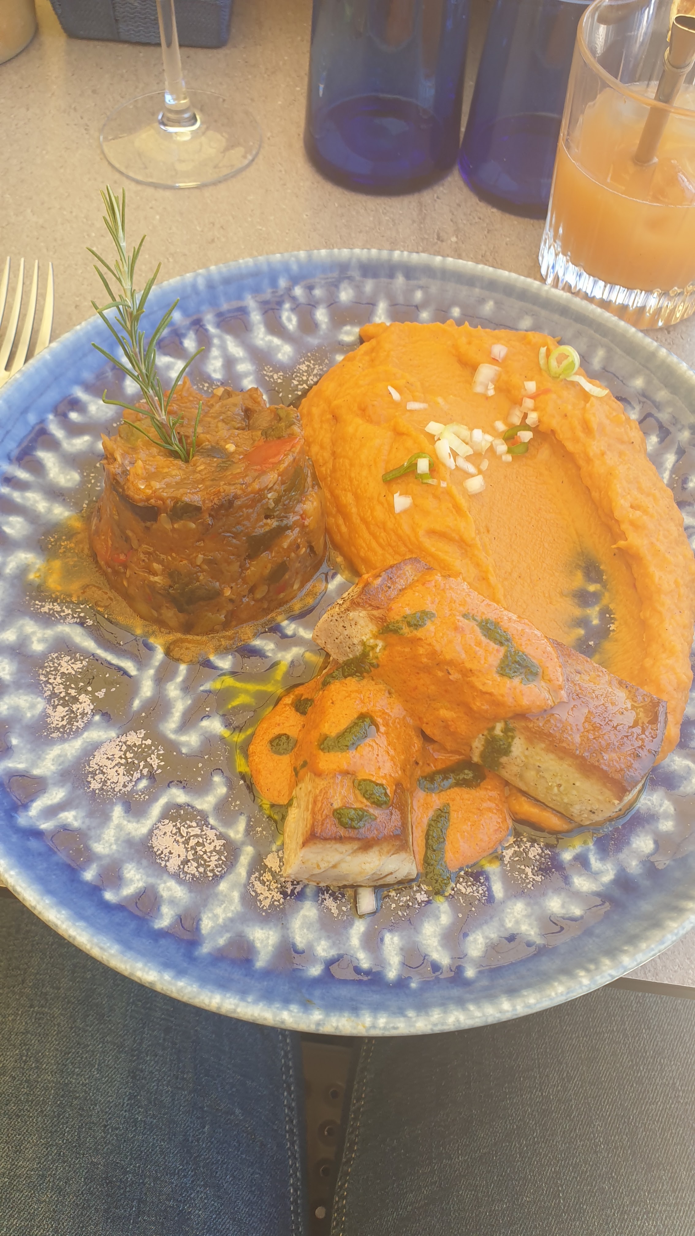 Je recommande pour passer un moment relaxant et déguster des produits frais très bien composés. Je me suis régalée avec la purée de patate douce. Chic et sans prise de tête, le cadre, le service et l'accueil sont très agréables