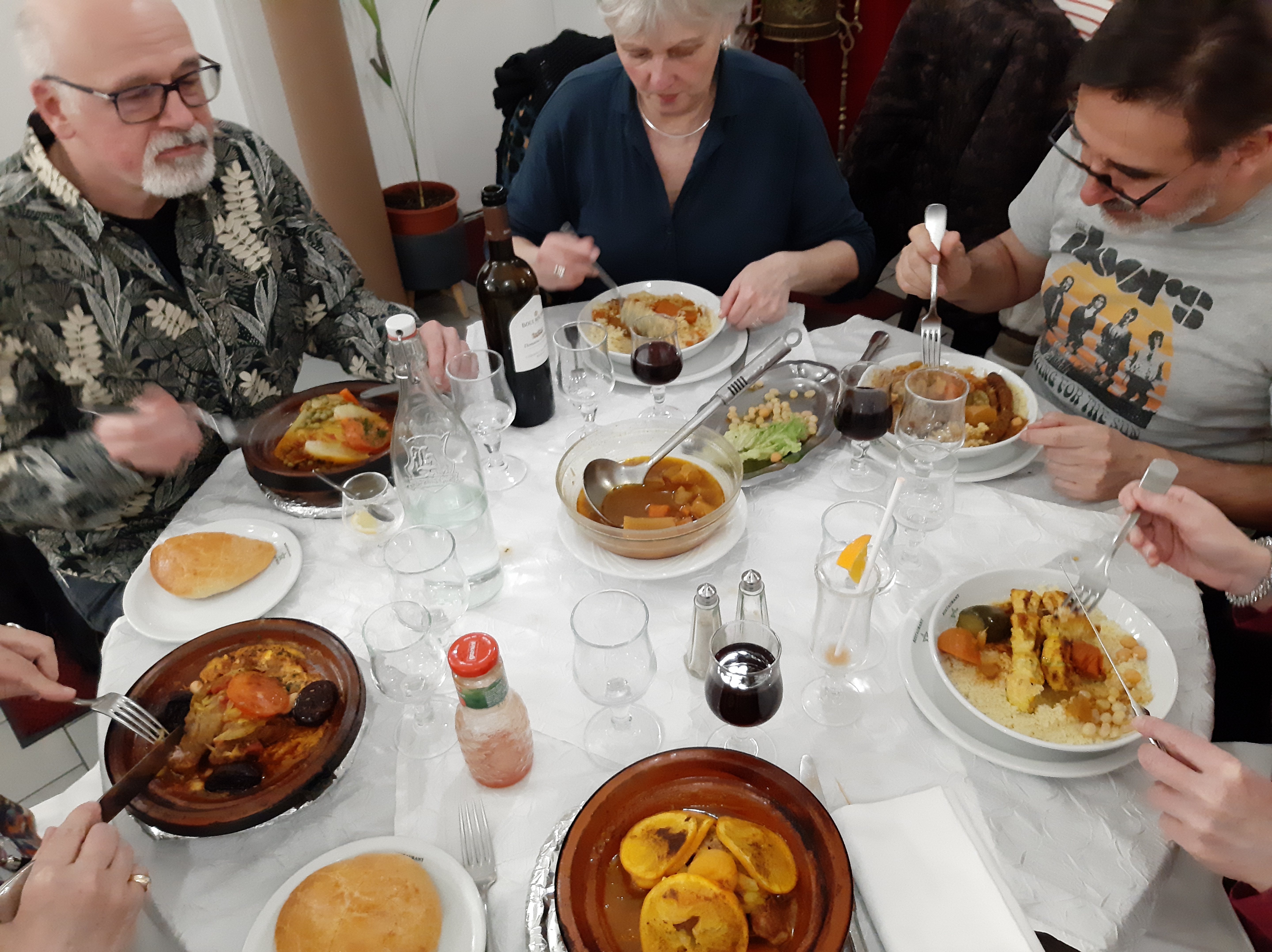 Déçus!!! D'autant plus que l'accueil est particulièrement sympathique. Nous avions gardé le souvenir d'une nourriture pleine de soleil et variée. Dans les 2 tagines la viande était servie en quantité mais point de légumes. A peine quelques pruneaux qui semblaient avoir cuit à part et réchauffés pour l'occasion. Le coucous, encore généreux en viande semblait être compté en légumes et en épices. Bref rien de comparable à notre souvenir. Malgré l'accueil , nous ne reviendrons pas!