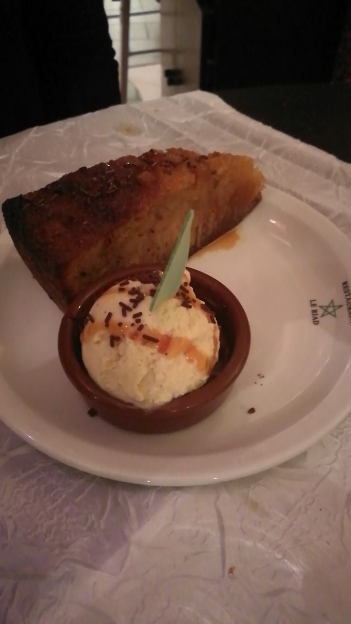 La recette de pastilla a changée d’habitude on retrouve du poulet mixe avec de la coriandre et autre la je n’ai pas aimé celle ci proposée trop forte et trop grasse et poulet en morceaux et non mixé Néanmoins le tagine agneau pruneaux était bon Tagine au légumes moyen, car nous ressentons en effet que les plats sont préparés le matin sûrement et que les légumes ne sont pas aussi frais qu’une cuisine à la minute Bon accueil