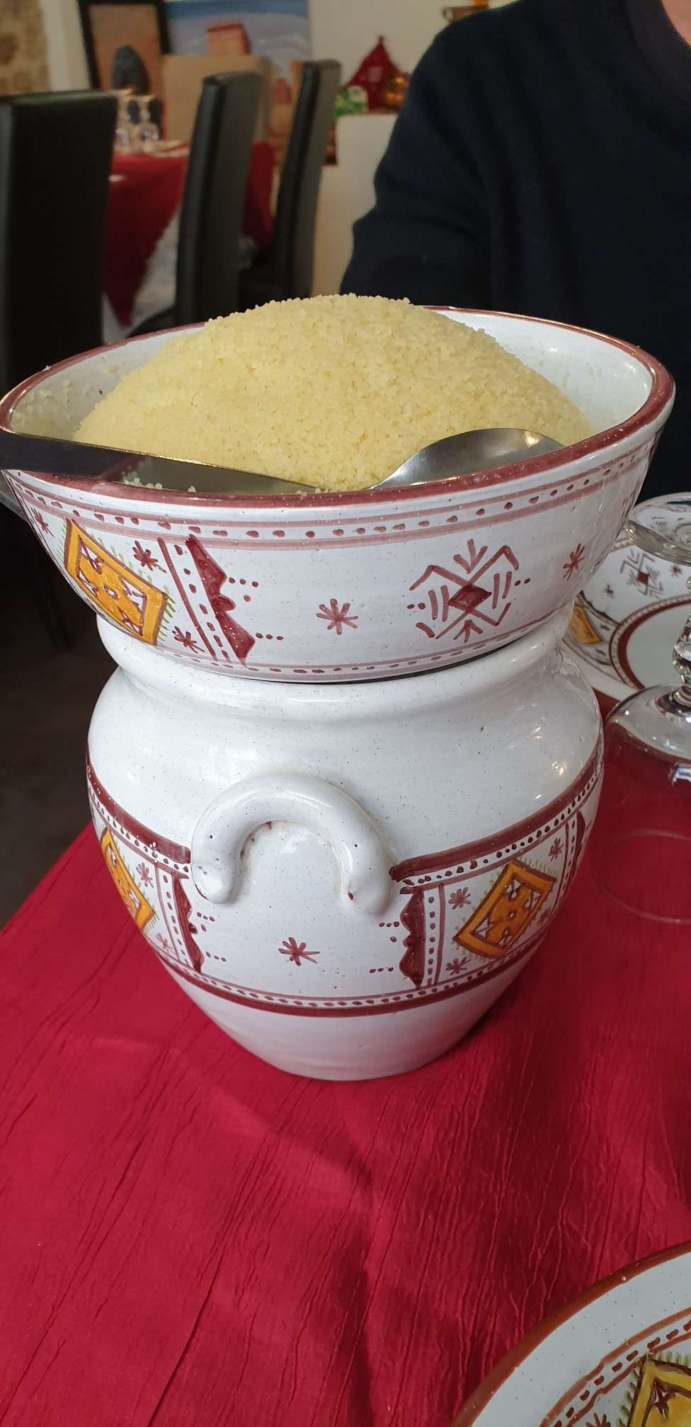 Accueil chaleureux du patron serveuse au top couscous excellent et copieux servi dans un ensemble de vaisselle magnifique tout est parfait. Mme.Capeau le 17/09/3021
