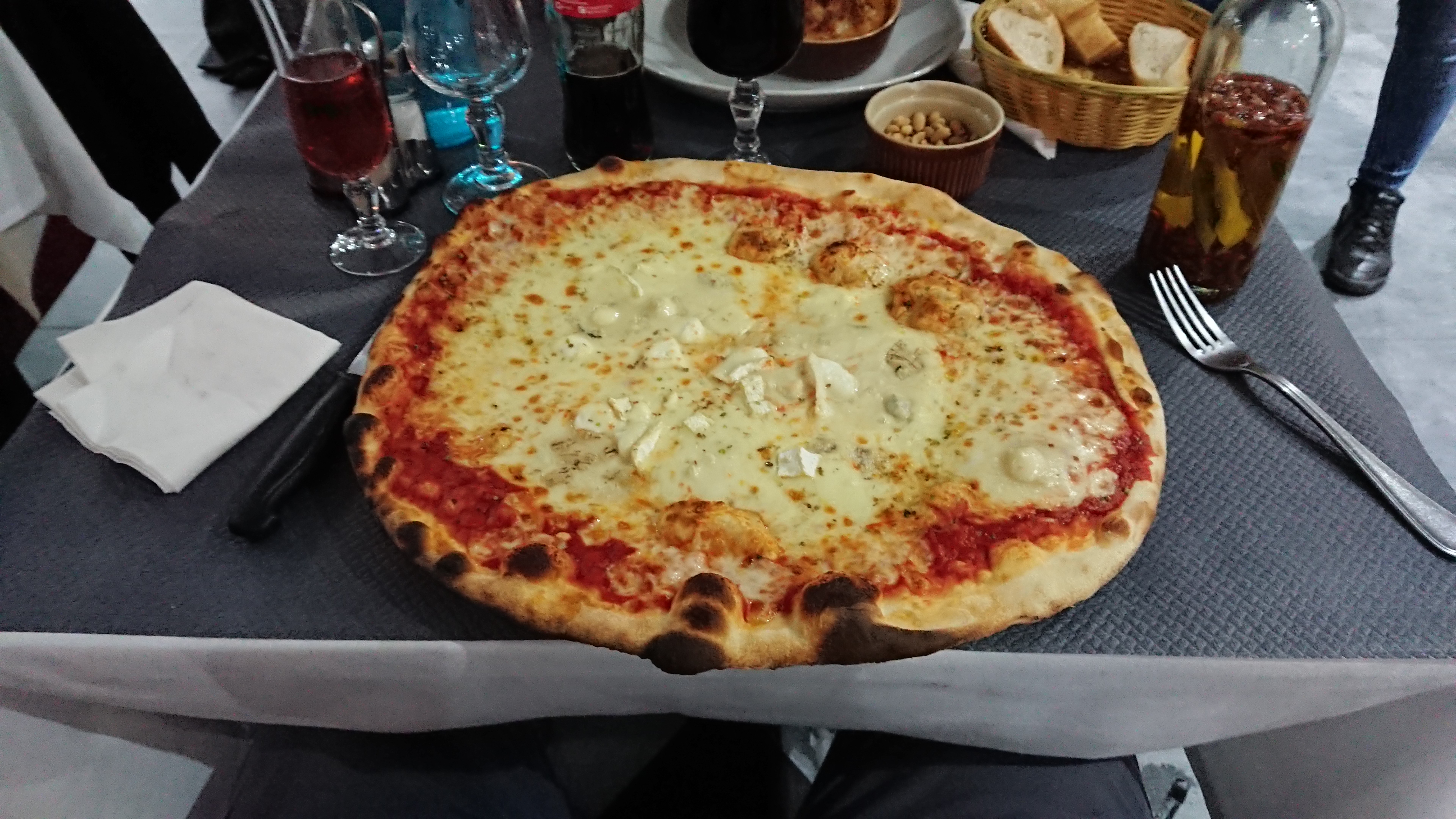 Des pizzas gigantesques ( on ne voit même plus l'assiette) et très bonnes, en tout cas la 4 fromages. Je ne mets pas 5 étoiles car le service est moyennement agréable . De plus le supplement de 1.50 euro pour la base crème fraîche c'est clairement abusé...