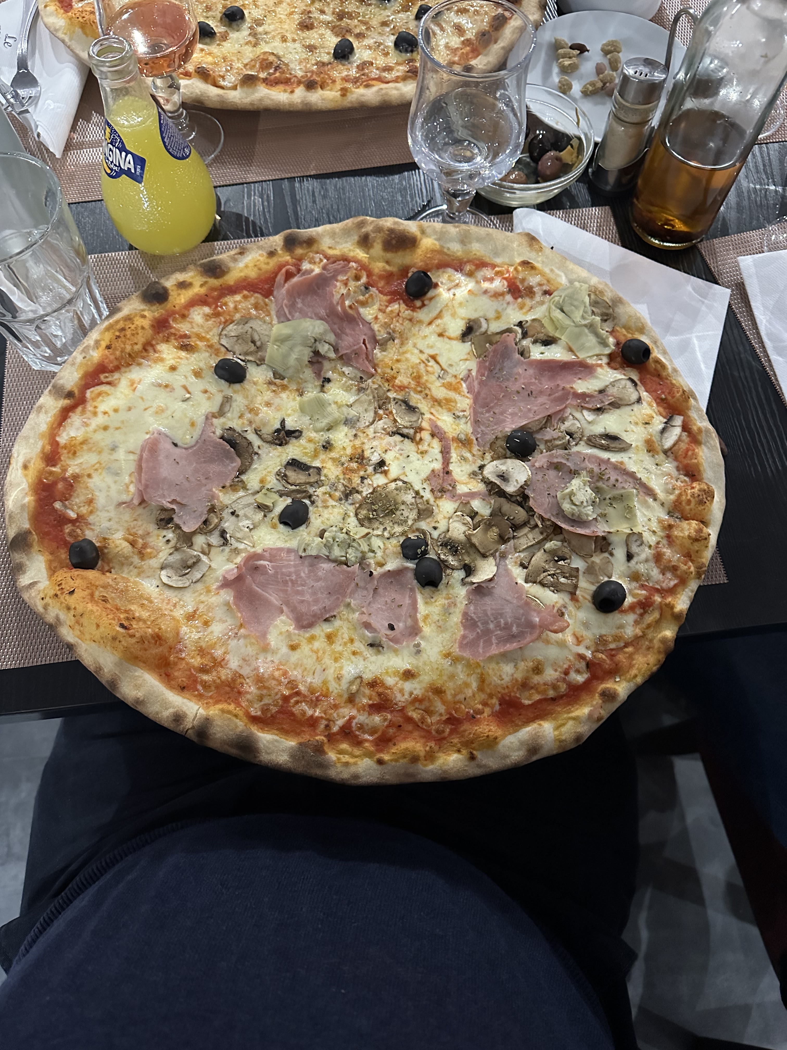 Le cadre est sympa J'ai pris un tiramisu en dessert, il était bon mais je l'ai trouvé trop sucré par rapport à d'autres restaurants. Concernant le plat, j'étais parti sur un Osso buco mais malheureusement il n'y avait pas. Dommage ! Sûrement à cause des blocages des agriculteurs lol Du coup je me suis retourné vers une pizza qui sont énormes pour le coup et hyper bonne. Petit bémol, ma demande de l'œuf bien cuit et surtout pas gluant n'a pas respecté en cuisine.
