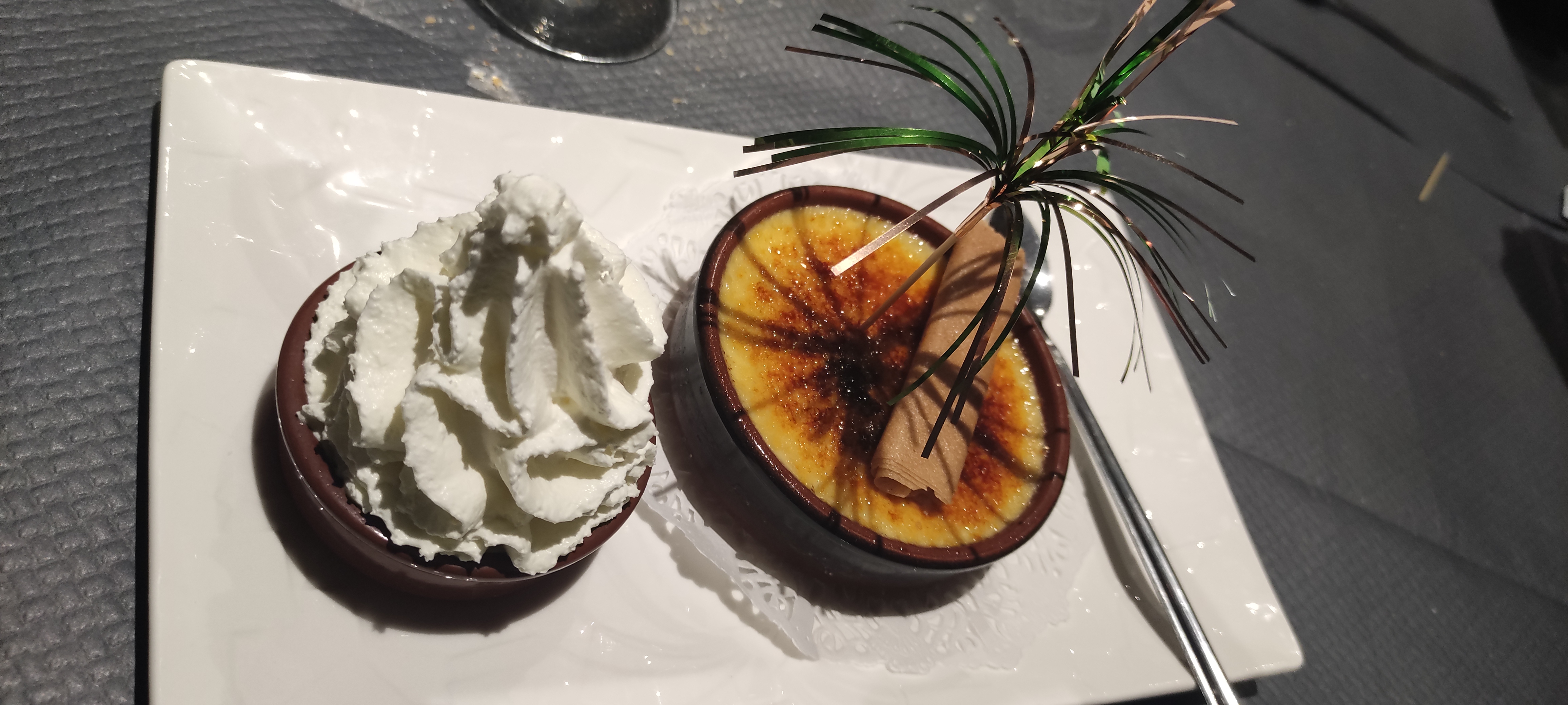 crème brûlée, crème caramel et filet de sole ce midi c'était un régal. Merci à tous