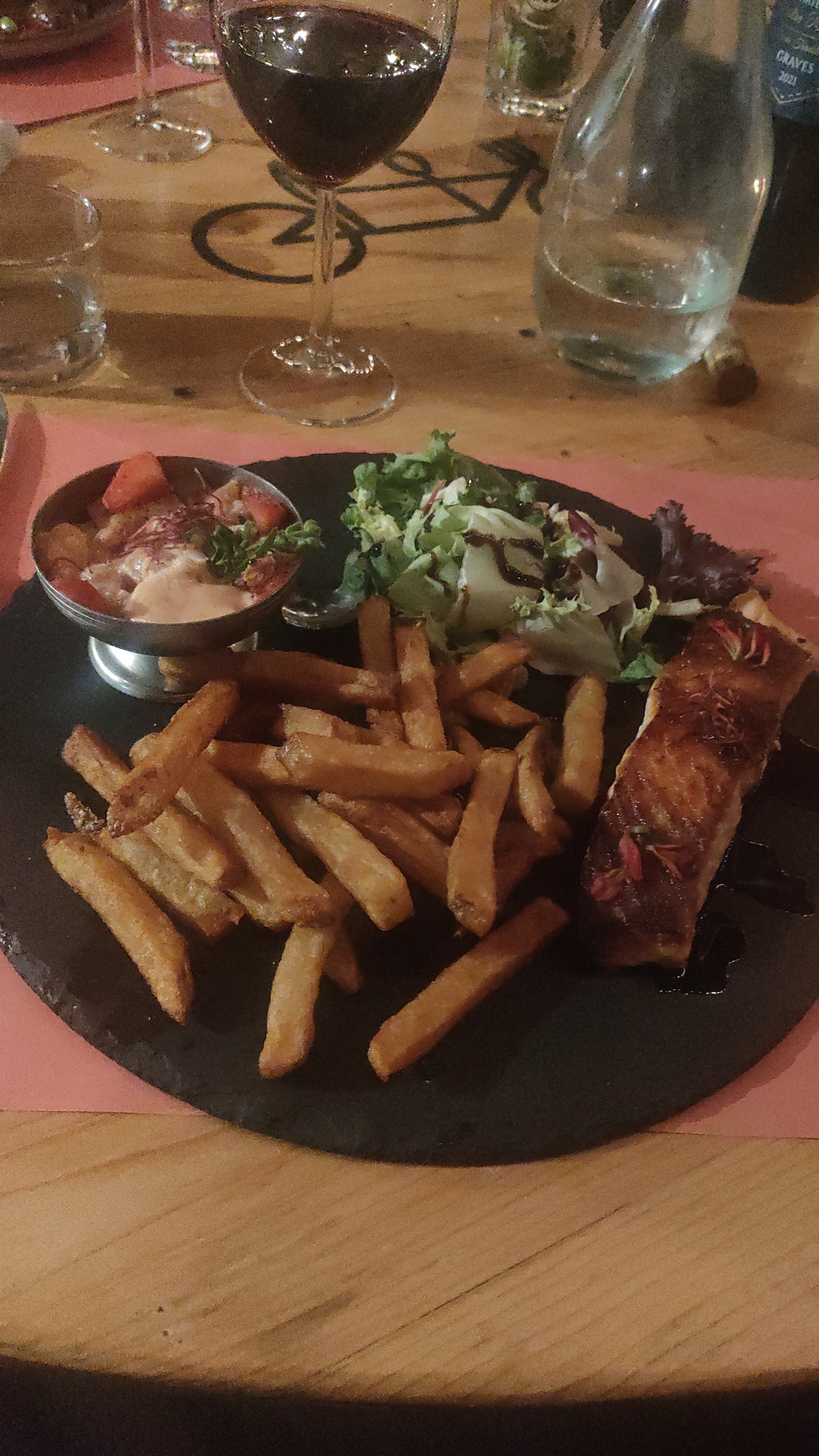 Très joli cadre, serveuse et patron très sympas. Entrecôte excellente. Mais… les entrées ont été servies une heure après notre arrivée. Certes on a pris un apéritif mais quand même c’est long. Les autres plats ont suivi sans délai. Œuf cocotte aux cèpes goûteux. Saumon Gravlax : une assiette très bonne. L’autre le saumon était « sec ». Frites « Alau » très sèches, on n’en a quasiment pas mangé sauf mon fils. Vu les commentaires plutôt positifs, je suis déçue. Les impressions de notre tablée de 5 ne nous donnent pas envie d’y revenir mais une seconde chance doit être donnée ;) . Je m’avoue aussi nostalgique de l’ancienne propriétaire et de ses pommes de terre à tomber.
