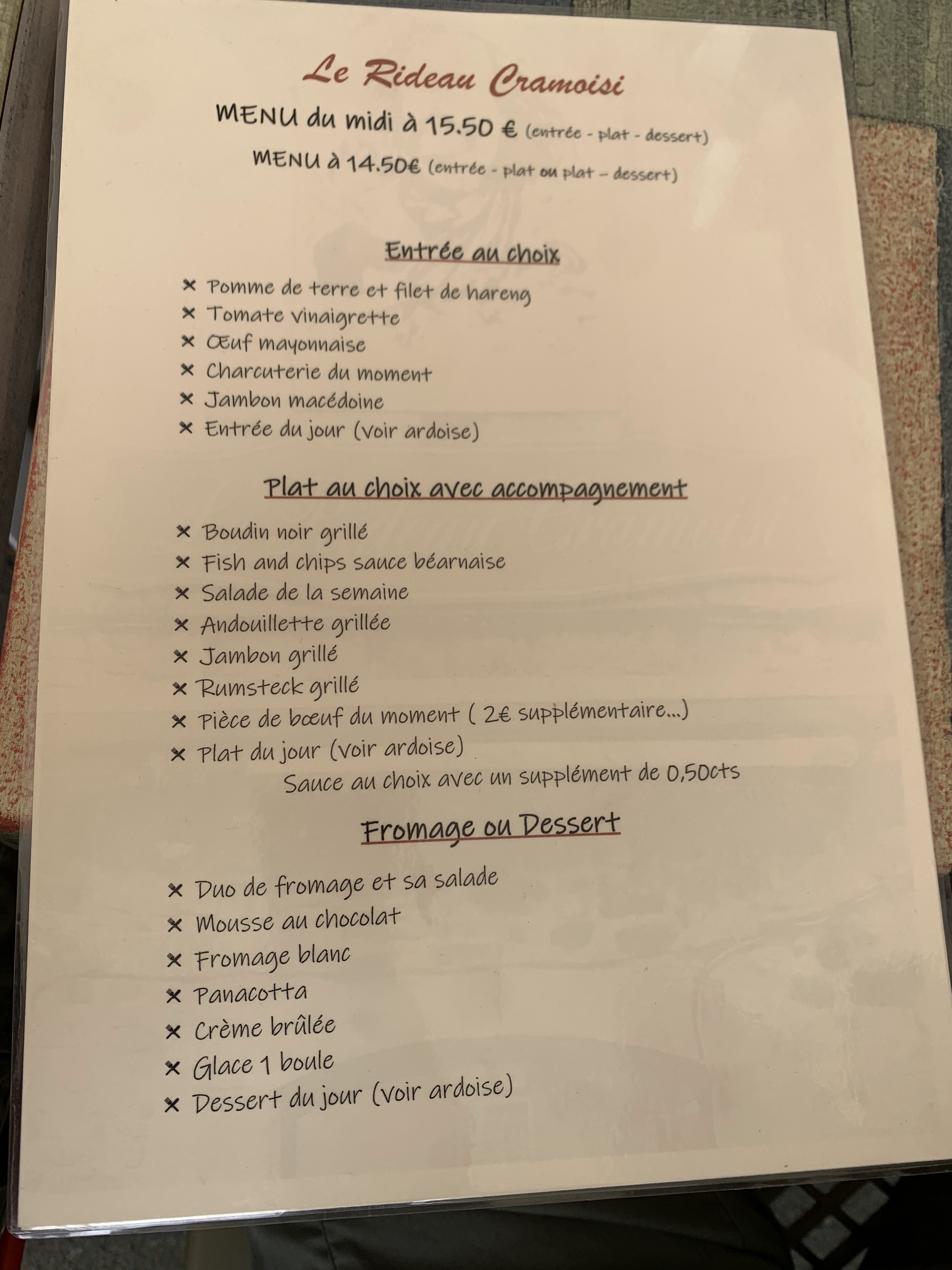 Restaurant français typique. Plats simples mais bons. Service très gentil et rapide. Vous pouvez également manger dehors.