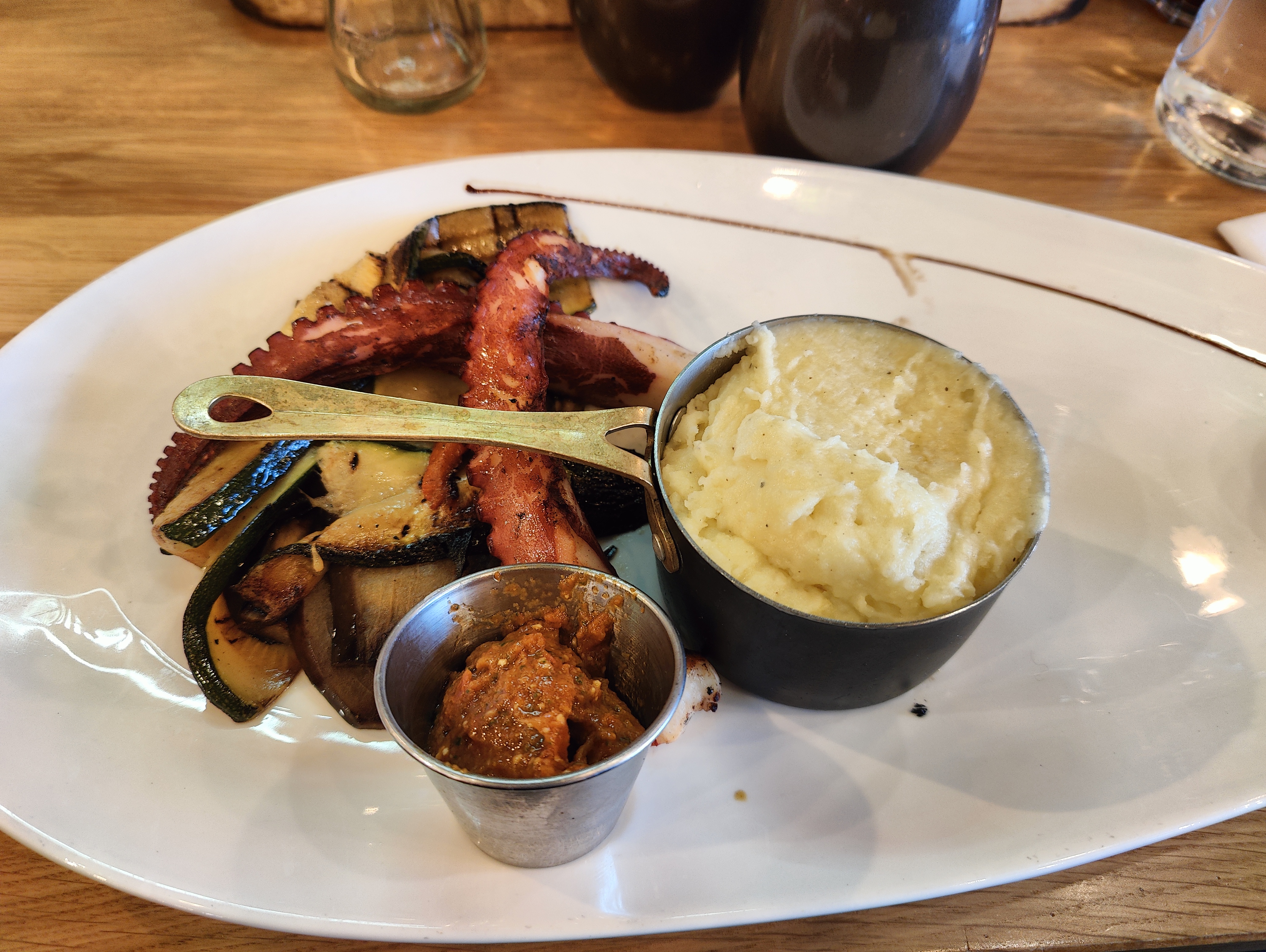 Restaurant très agréable au niveau de la décoration, personnel sympathique, j'ai pris un risotto au poulet et chorizo, j'ai cherché le poulet mais ce n'était pas mauvais. Un petit plaisir en fin de repas qui a été modifié sans soucis. Bonne première expérience