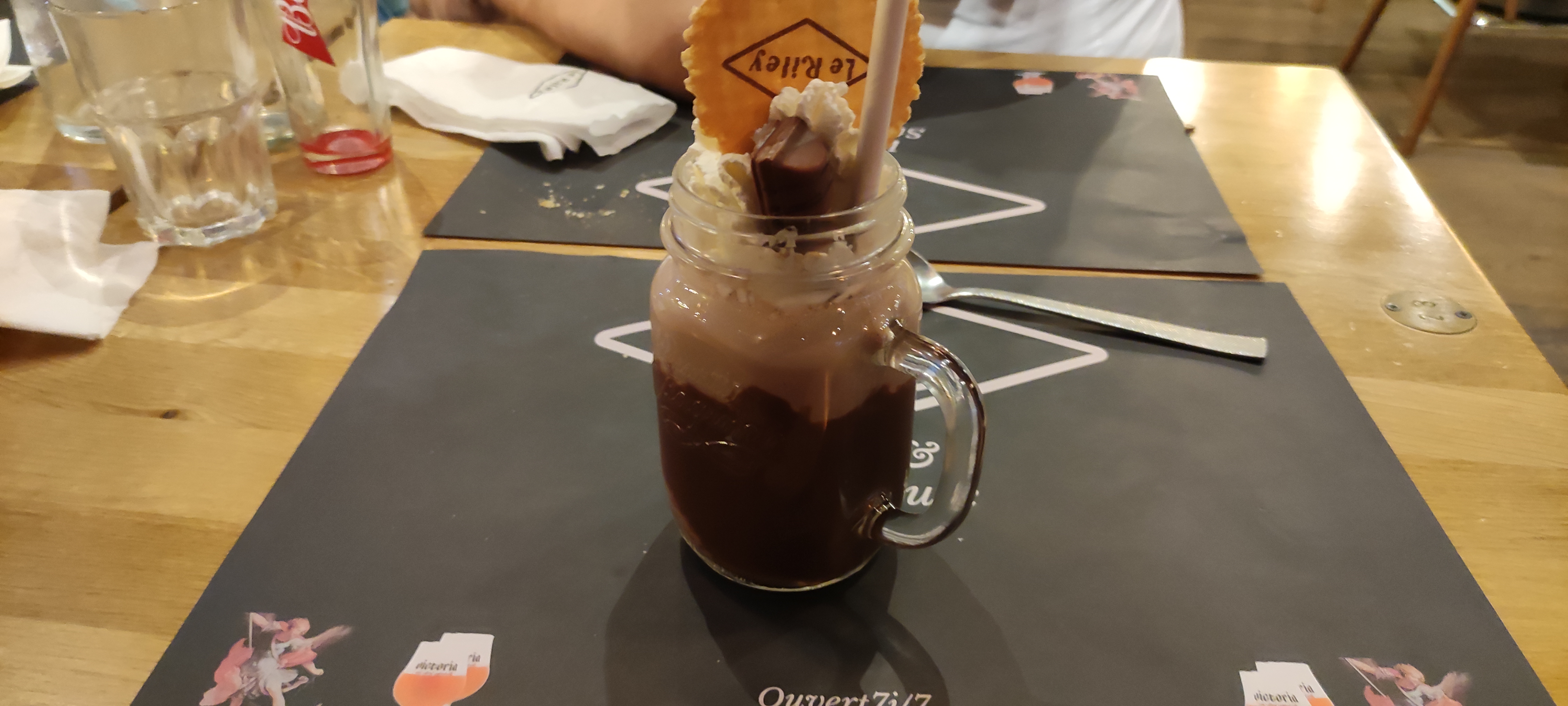 Bon rapport qualité prix ! Plat entrecôte Si vous aimez la cuisson au grill, vous serez servi. Le goût est au rendez-vous! S’il faut vraiment dire quelque chose un peu plus de salade et surtout de vinaigrette aurait été les bienvenus à part ça… Et pour conclure, comme à mon habitude dame blanche, présentés différemment de ce que j’ai l’habitude, mais excellente!