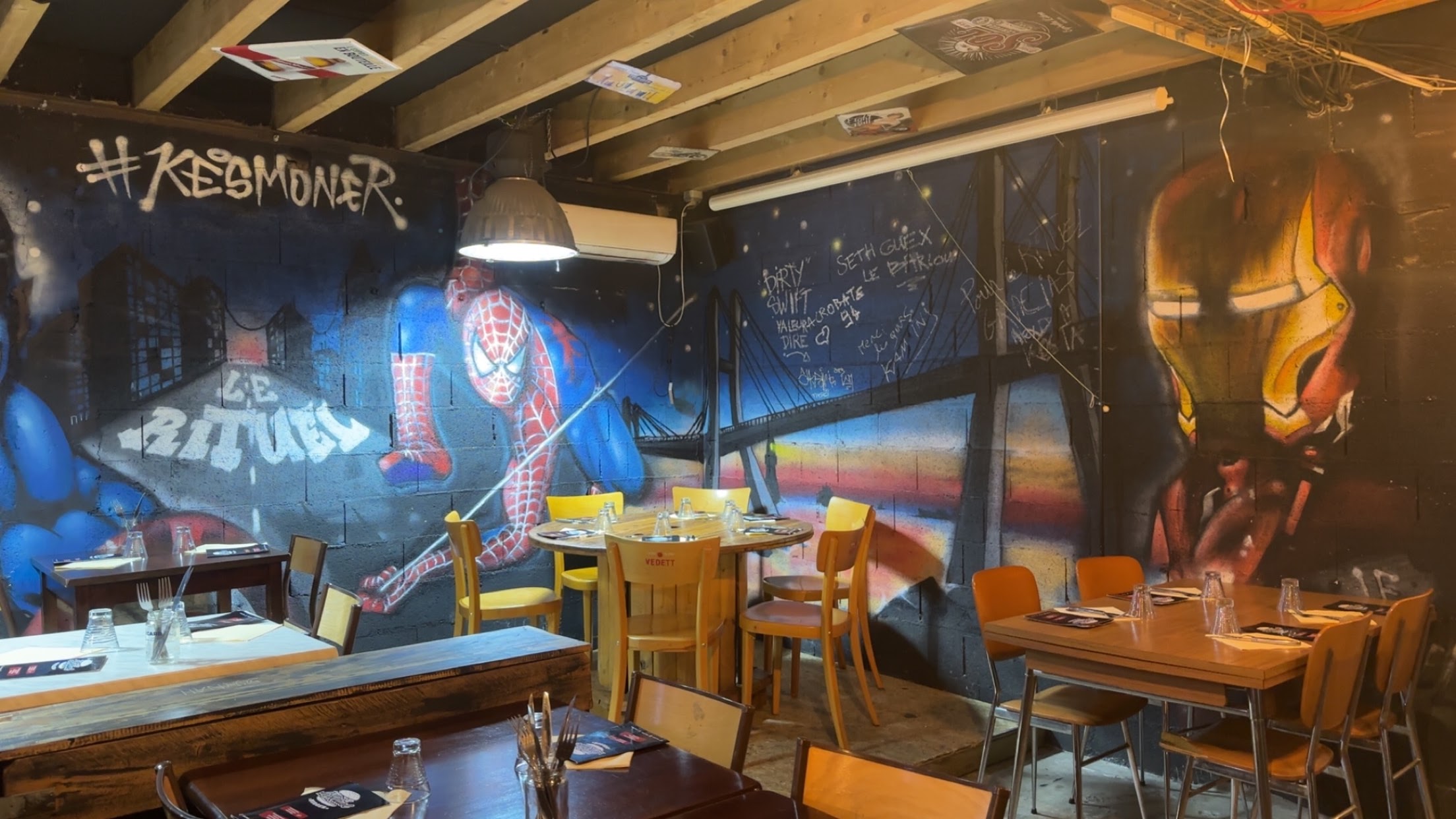 Franchement super bon ! Avec des super burgers et frites maisons. Le patron très cool et accueillant ! Ambiance super héros, vintage... J'adore le lieux la nourriture... Superbe spot. Merci à tte l'équipe.