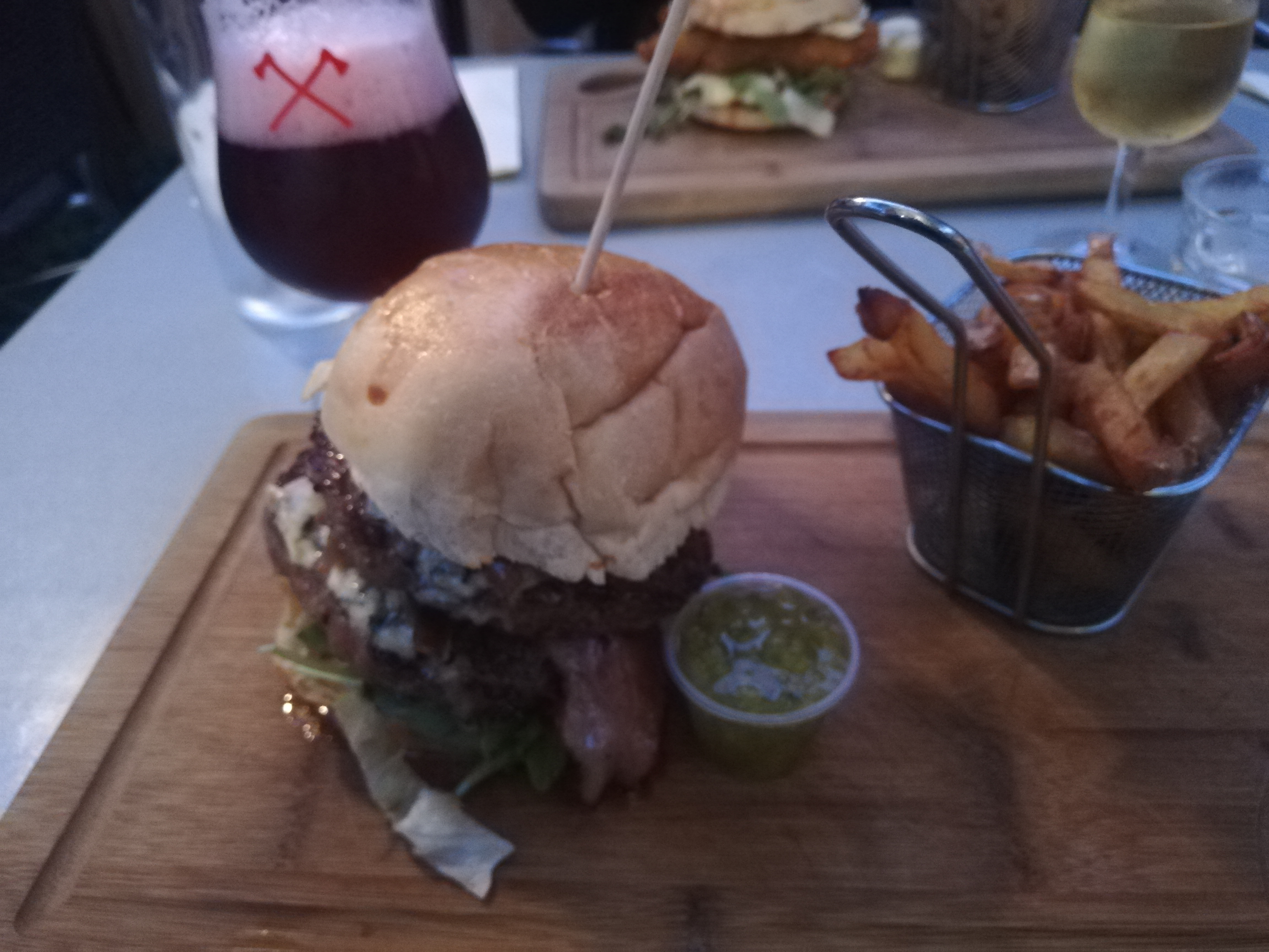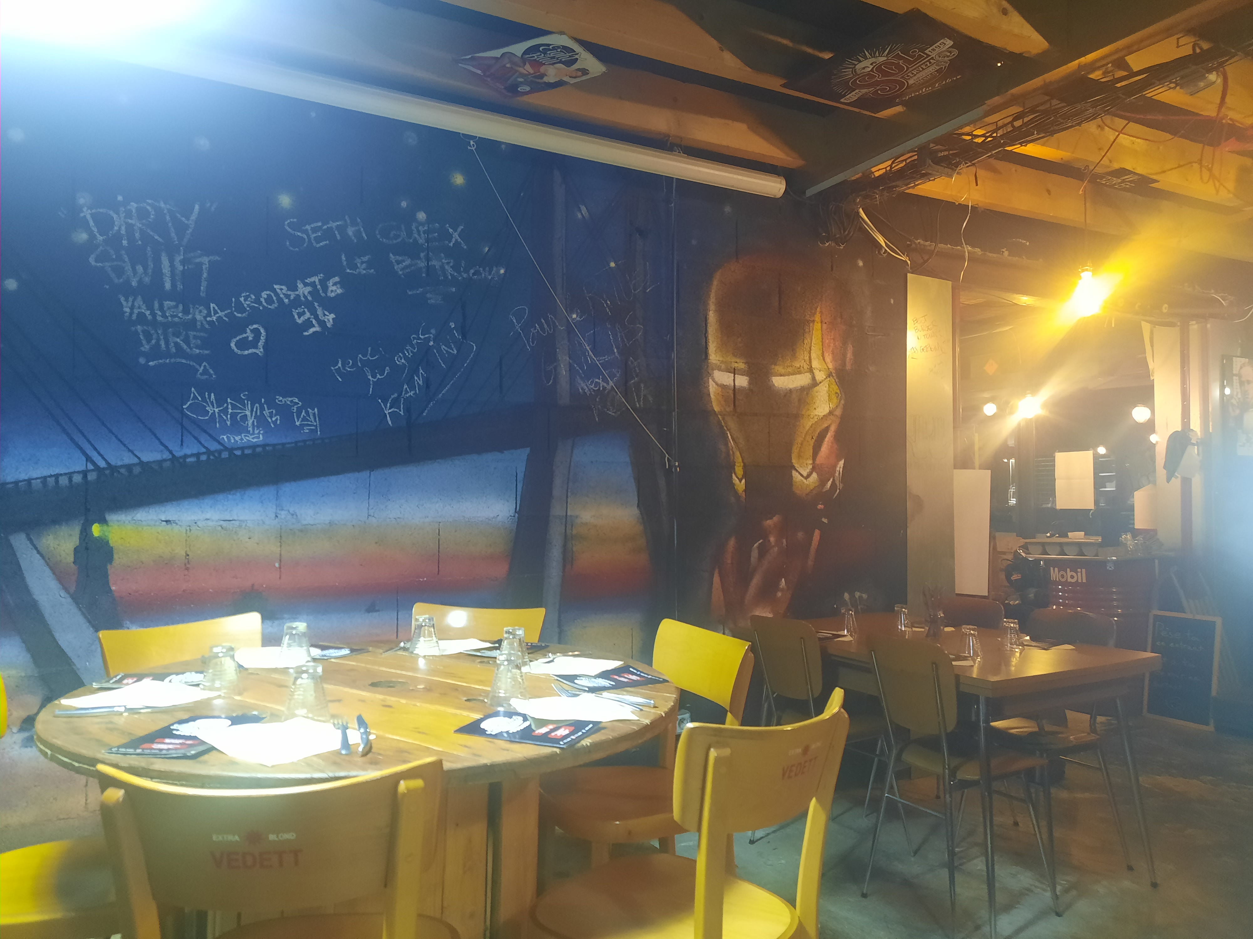 Lieu atypique Acceuil Convivial, personnel agréable. Les burgers étaient bon mais servi pas bien chaud et la sauce chedar tout juste tiède ( Un California et un vieux grincheux )
