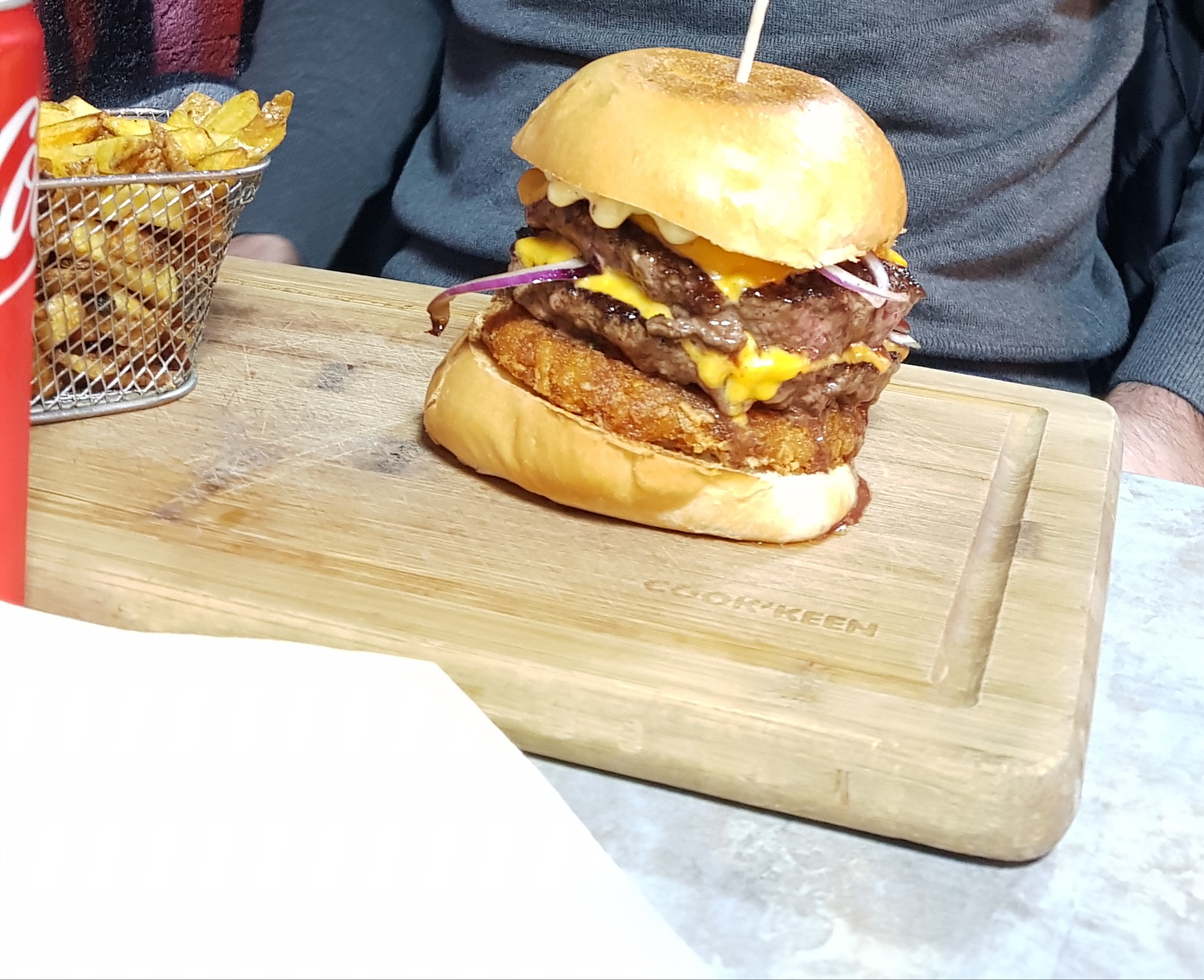 Burger, frites extra, au Top. Personnel sympathique.