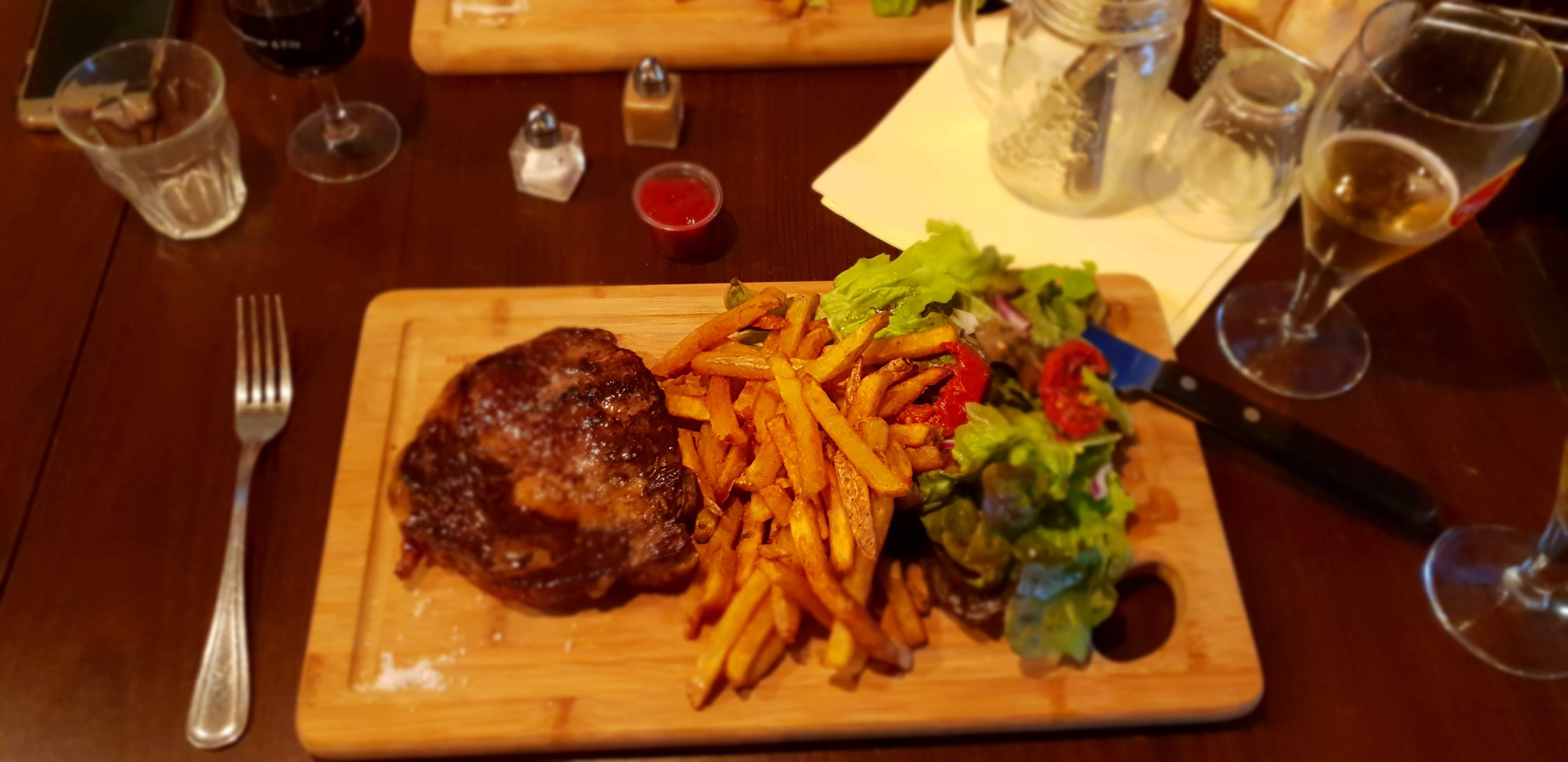 Nickel ! Cette soirée fut Super Serveurs toujours présents pour faire des blagues , ambiance style année 80 , repas copieux un poil cher mais peut-être gage de qualité (frites faites maison ) Mentions spéciales pour la pièce du bouché, steak à cheval , burger vintage. Recommande chaleureusement