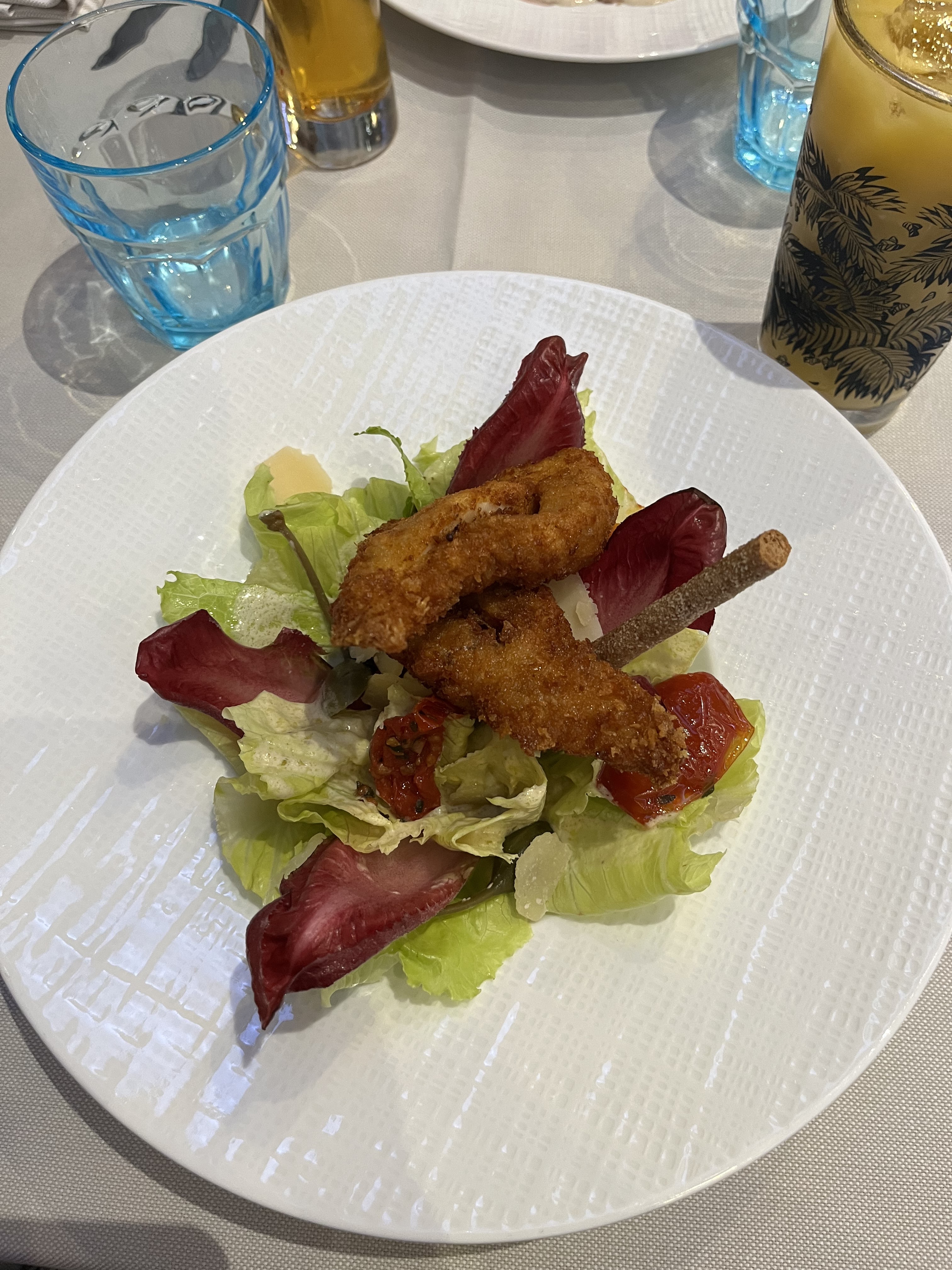 Joli cadre, cuisine italienne très correct. Accueil professionnel, serveur bien sympathique, surprise en nous donnant la note les cafés et limoncello offert. N'oubliez pas votre passeport ou CI car l'entrée se fait par le passage obligatoire des jeux du casino. Si vous avez un peu de temps passer par le bar de l'hôtel pour prendre l'apero tous les mardis et vendredis soirs du jazz avec pianiste et chanteuse, excellent moment.