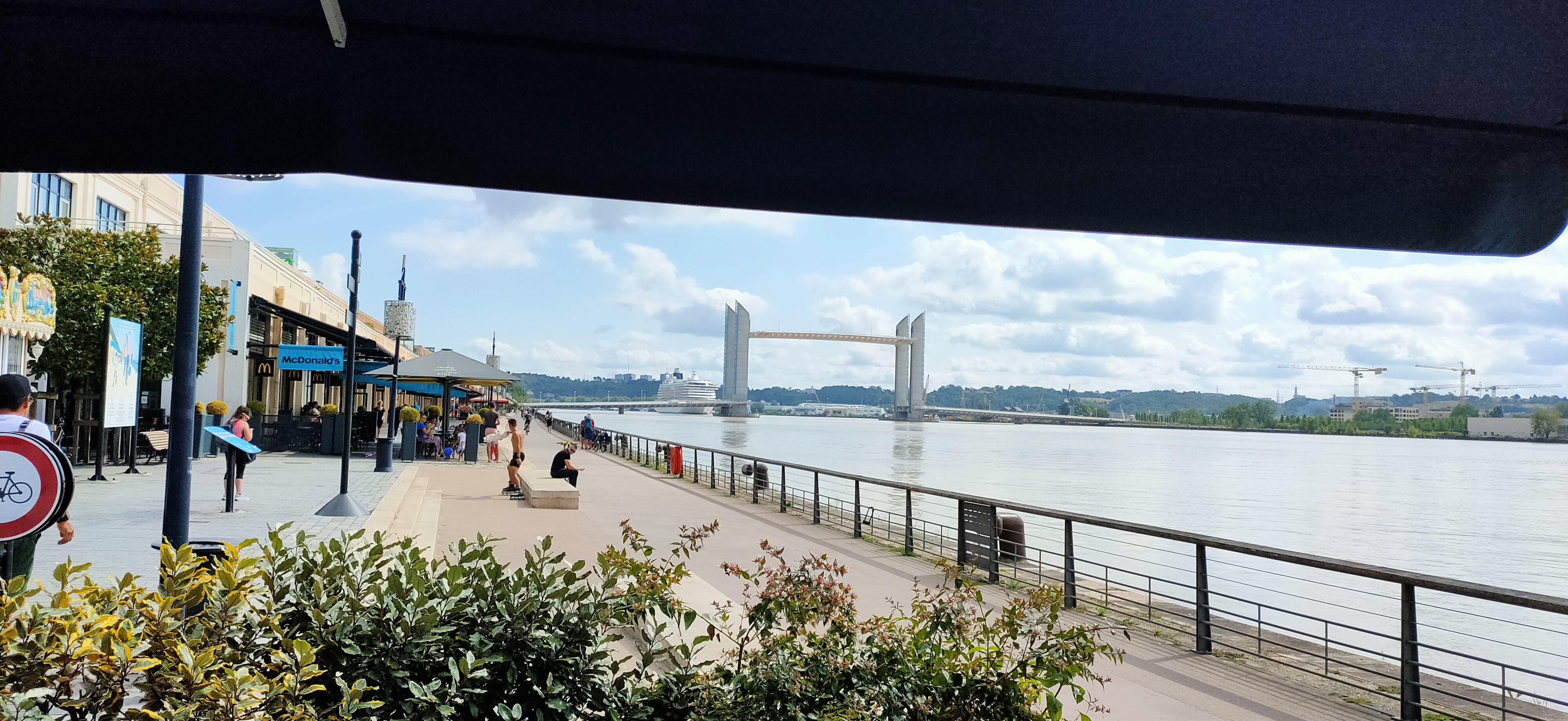 Restaurant avec une belle terrasse au bord de la Garonne avec vue sur le pont Chaban-Delmas.un personnel accueillant. Serveur poli, rapide, efficace.