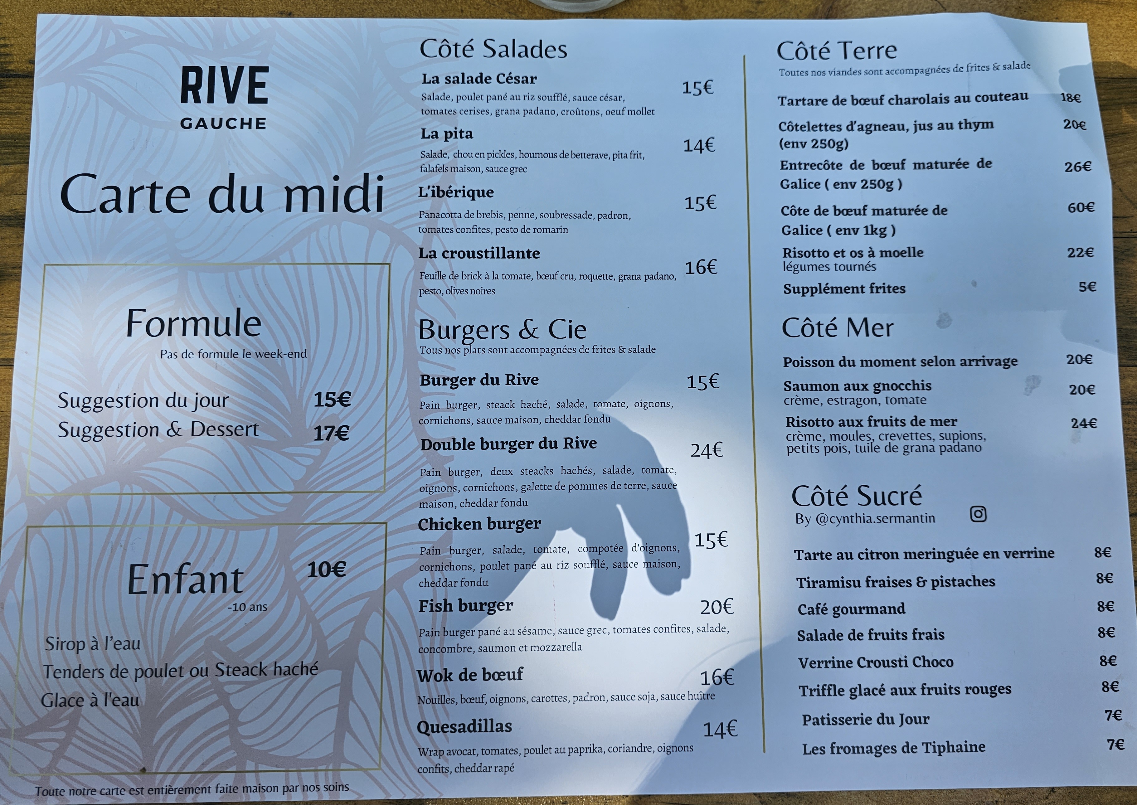 Serveur au top, cuisine au top, ambiance au top. Les prix sont très raisonnables ! je recommande fortement 😁 Et à bientôt la rive !