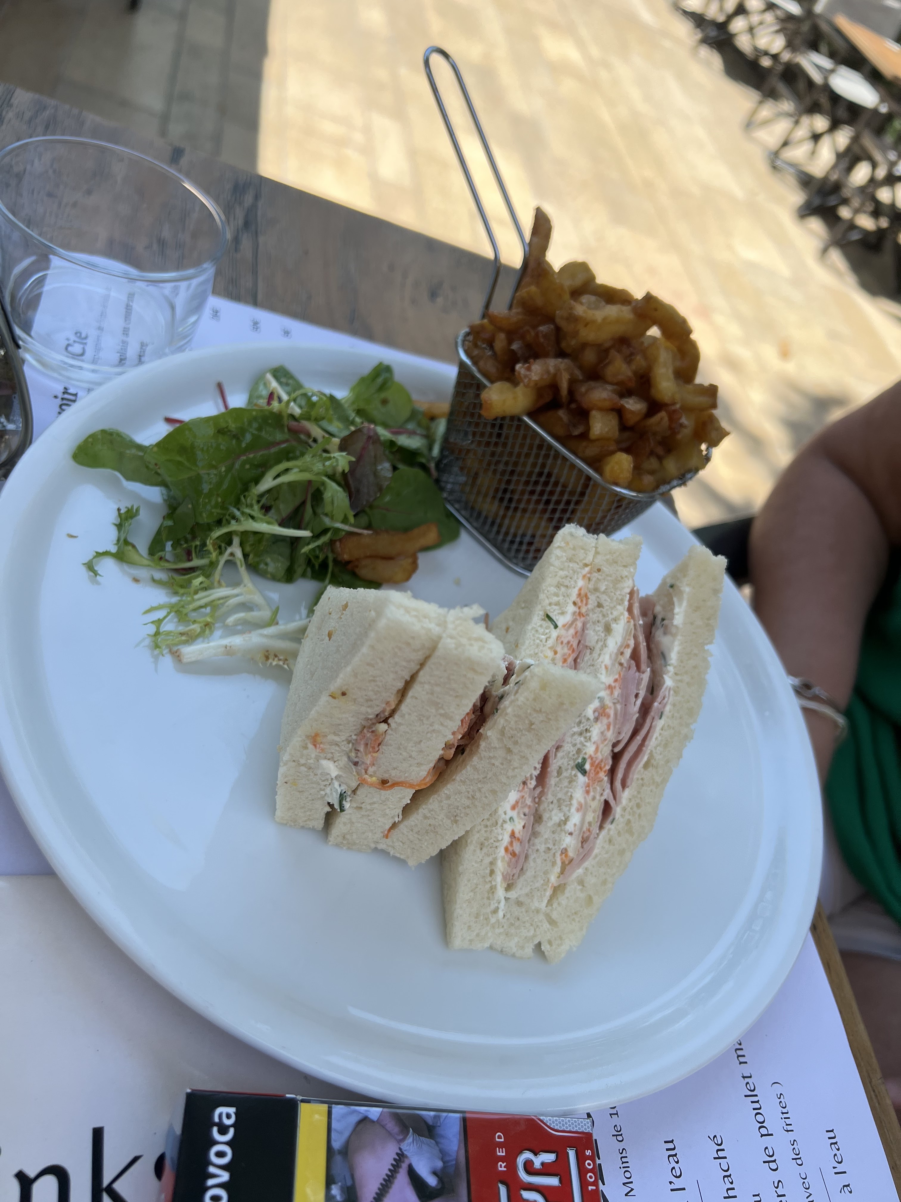 Emplacement idéal sur les quais ! Le sourire du serveur qui passe la chifonnette sur la table en y laissant la fiente de pigeon ! Le poisson du jour filets de dorade cuits comme il faut, accompagnés de tranches de pommes de terre, noires sur une partie des bords, à mon avis elles devaient être de l'avant veille et 3 frites mélangées qui n'avaient rien à faire dans cette assiette. Légumes huileux ! Je n'y reviendrais pas !