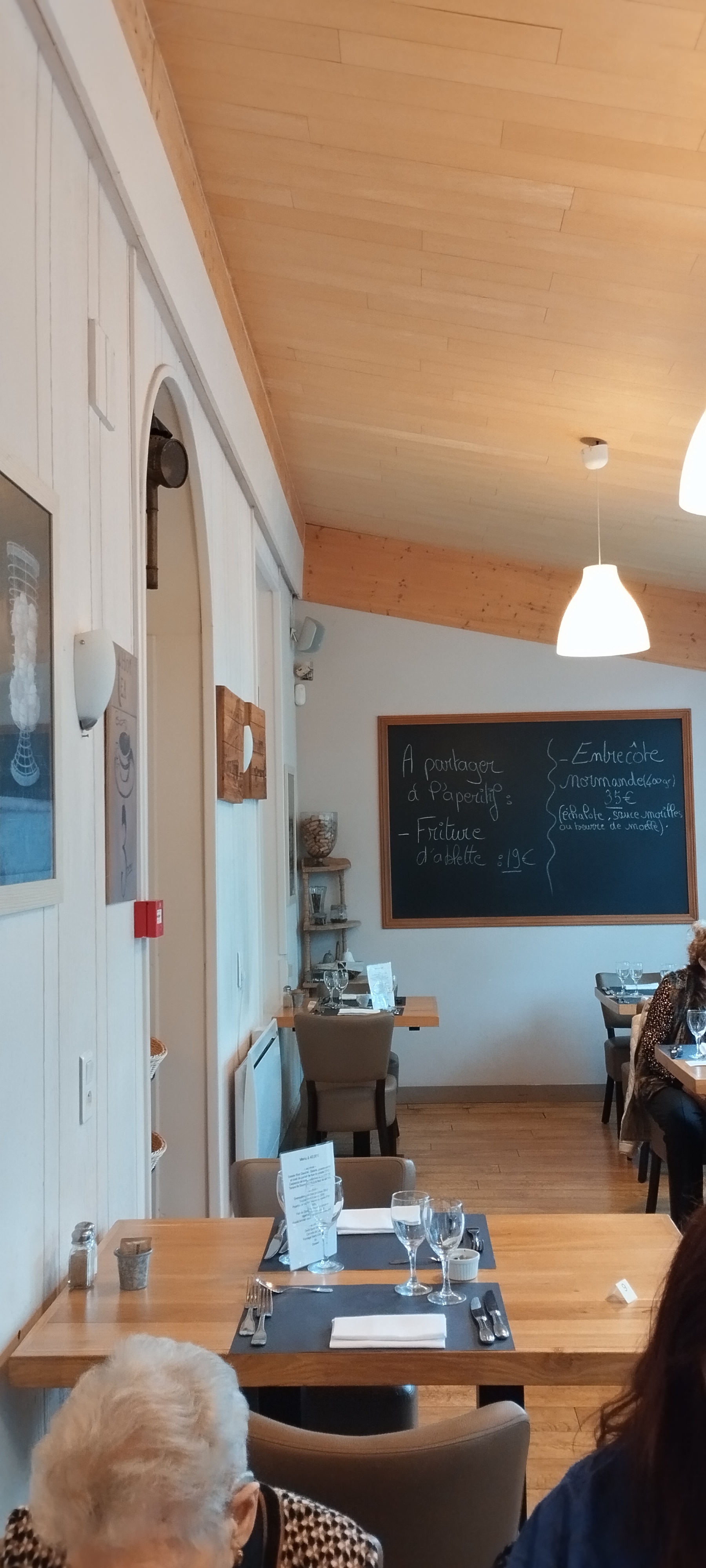Point negatif : Rapport qualité prix excessif (friture à 17euros, cuisses de grenouilles à 27euros...) Poil dans la daurade Point positif : - ils nous ont offert le café en compensation du poil - plutot bon quand même (bonus pour la cote de boeuf) - le cadre exterieur avait l'air sympa, dommage qu'on vienne un jour de tempete