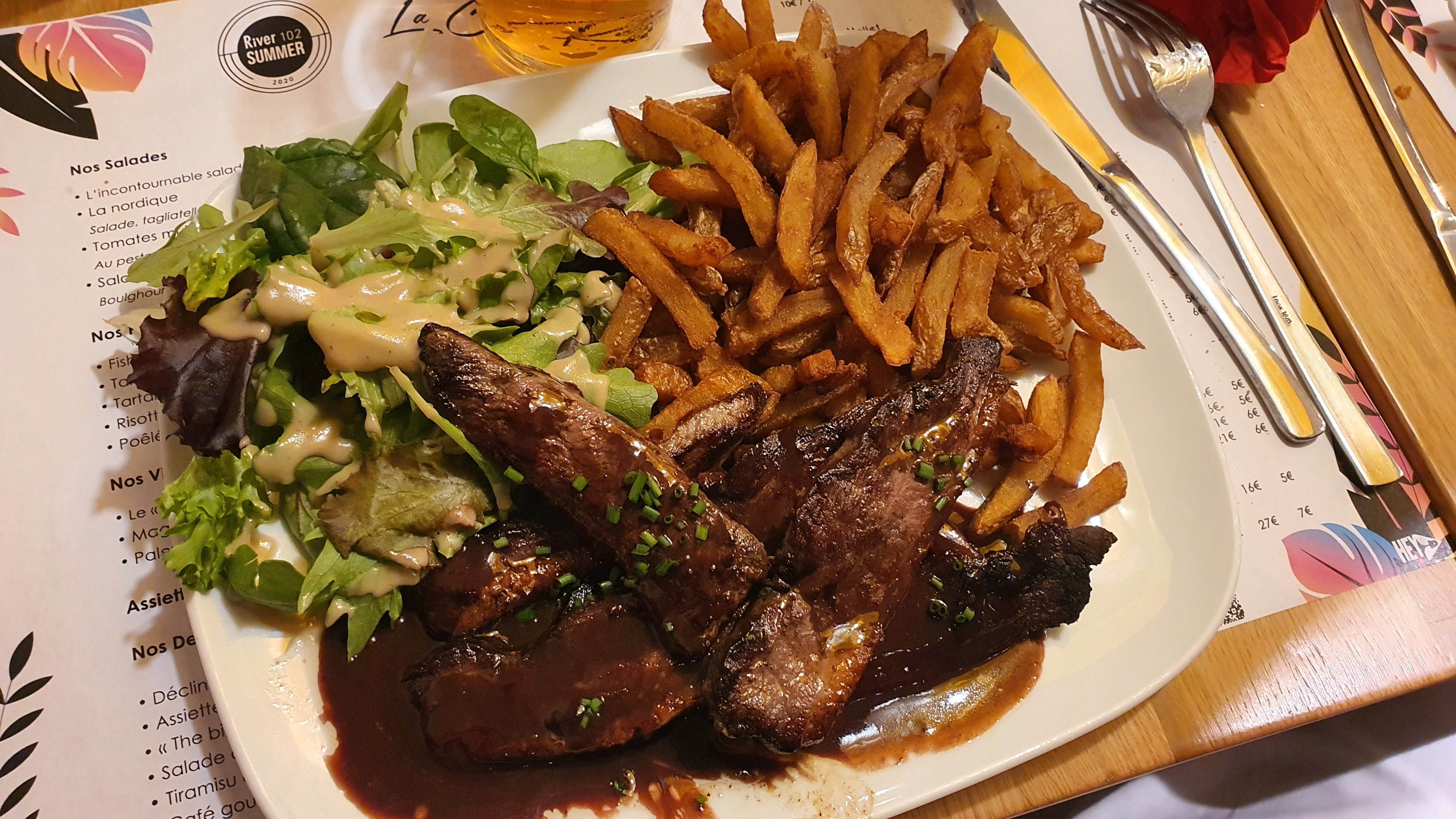 J'ai adoré manger au River le personnel était super sympa surtout la serveuse la nourriture était excellente et en quantité et avec cette chaleur manger au bord de la Charente était super agréable vraiment je recommande cet endroit il est super.
