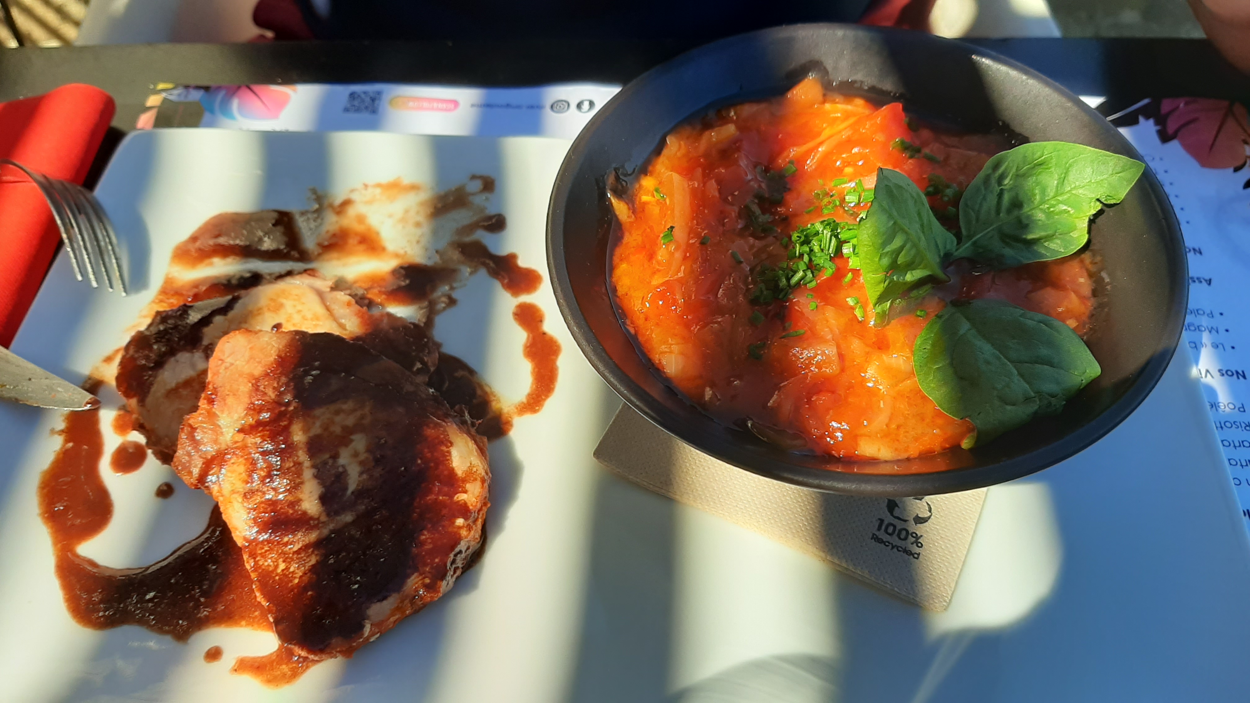 Partie restaurant chic, mets délicats, accueil chaleureux. Partie terrasse conviviale. Équipé souriante, tout pour passer une bonne soirée. J'y reviendrai avec plaisir et je le recommande. Bravo Fabrice.