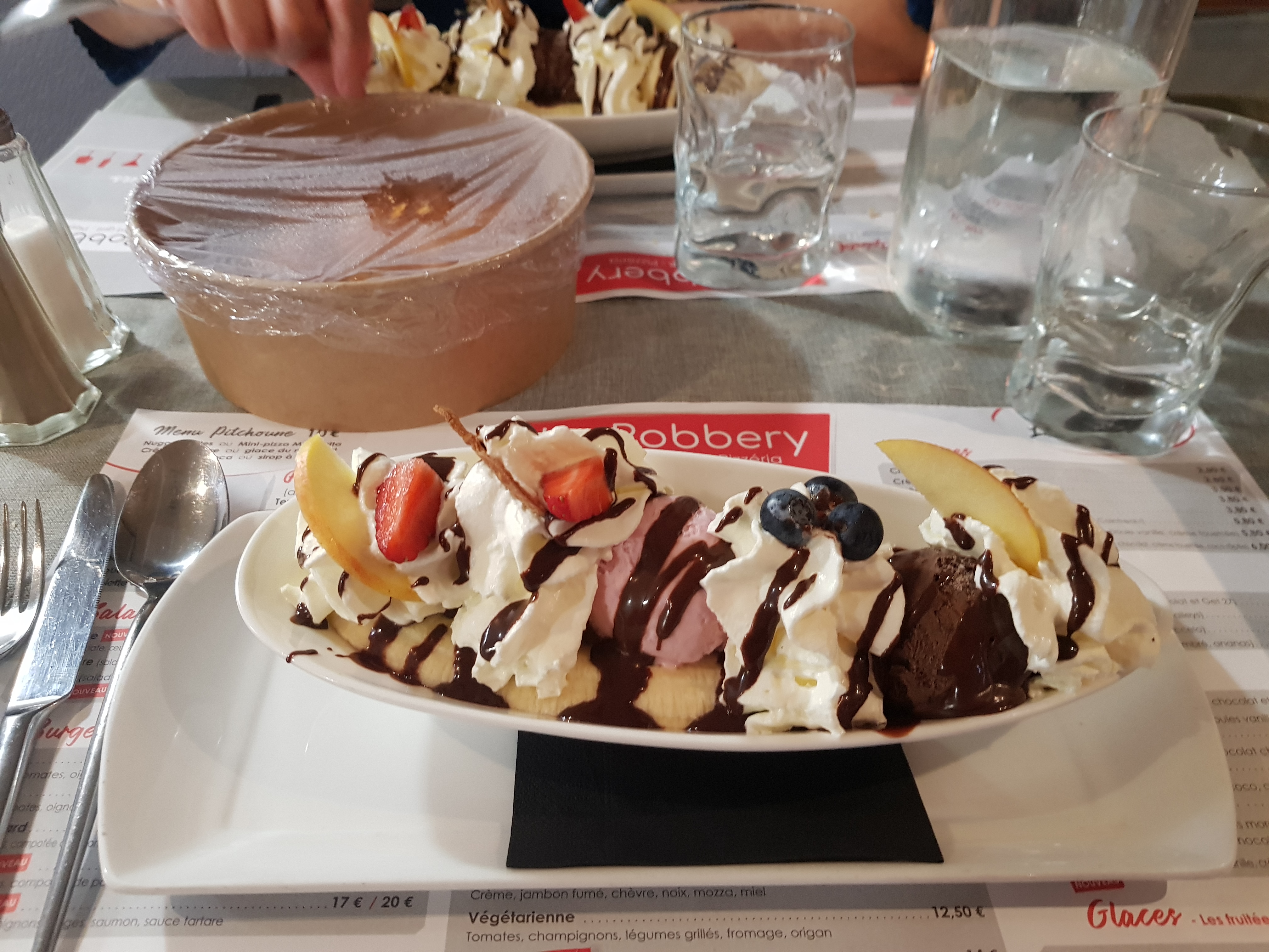 Correct mais sans plus Arrivés à 21h, la prise de commande a eu lieu à 21h45 pour un apéro à 21h55... Déjà là c'était limite mais bon ce sont les vacances... On passe (nous venons souvent et c'était la première fois que c'était si long). J'avais commandé des moules au curry j'ai eu des moules marinière. Là aussi ma foi ya des choses plus graves mais quand même. Mon mari a commandé un chocolat liégeois et a eu un café liégeois... Décidément ya des jours sans... Personnel agréable et souriant, dommage pour ces couacs... Et cerise sur le gâteau, je suis malade, je pensais que c'était un abus de fruits ce matin mais je viens de faire le lien avec les moules d'hier (qui étaient très bonnes) eta dernière fois où j'ai également été malade après avoir mangé des moules du robbery. Hasard, ou pas.