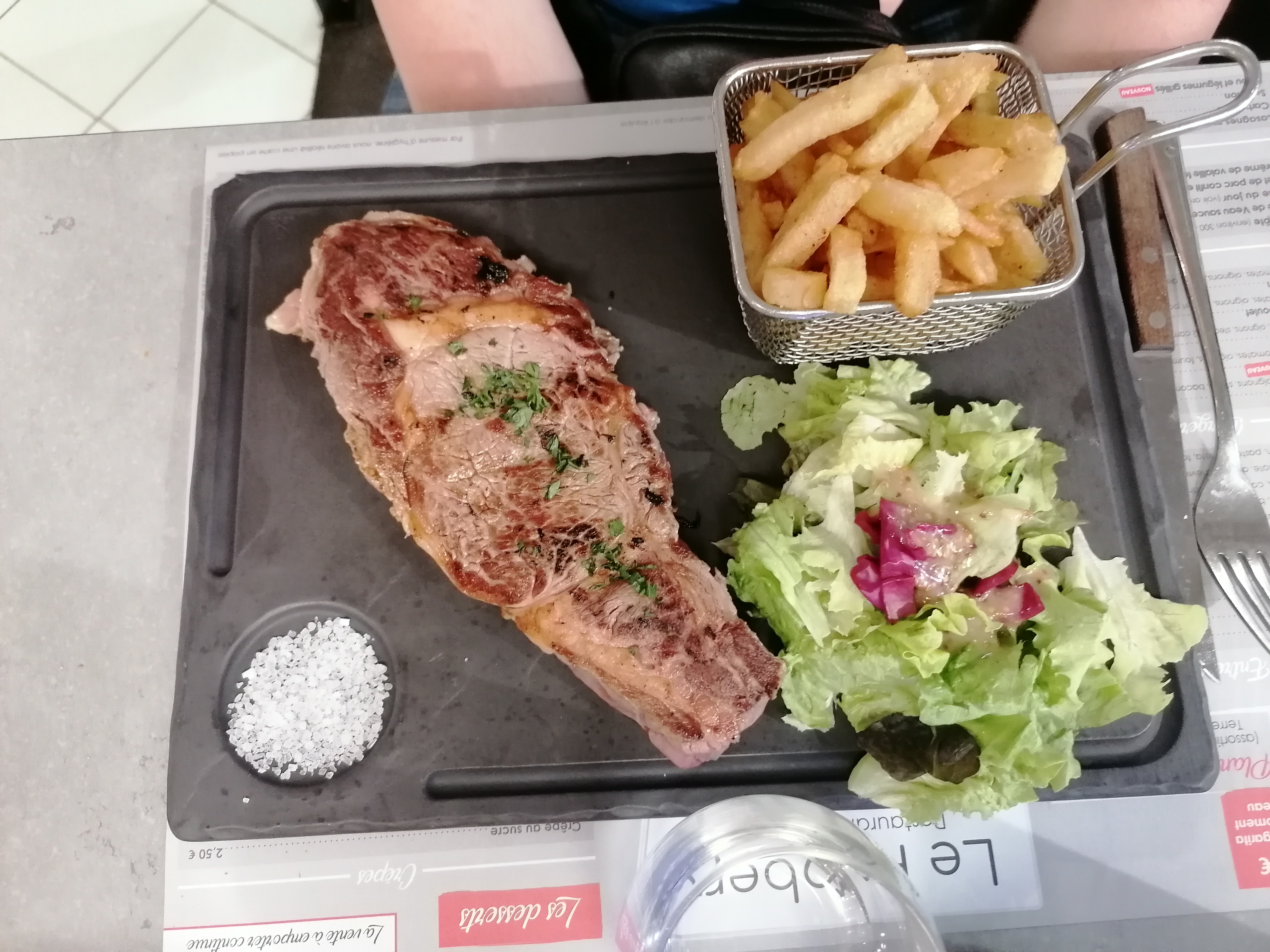 Je suis venue avec mon conjoint samedi soir : Prix très abordable , apéritif copieux , la rillette excellente ! Pour ma bavette j'ai demi bien cuit c'est arriver saignant, après c'est pas un mauvais point parce que étant cuisinière c'est compliqué de savoir avec ce type de viande Service très bien rien a dire Un petit poing négatif : au début tout étais nickel mais a la fin il commençais vraiment a faire très chaud ducoup on c'est dépêcher pour partir ce qui est un peu dommage Je recommande malgré tout
