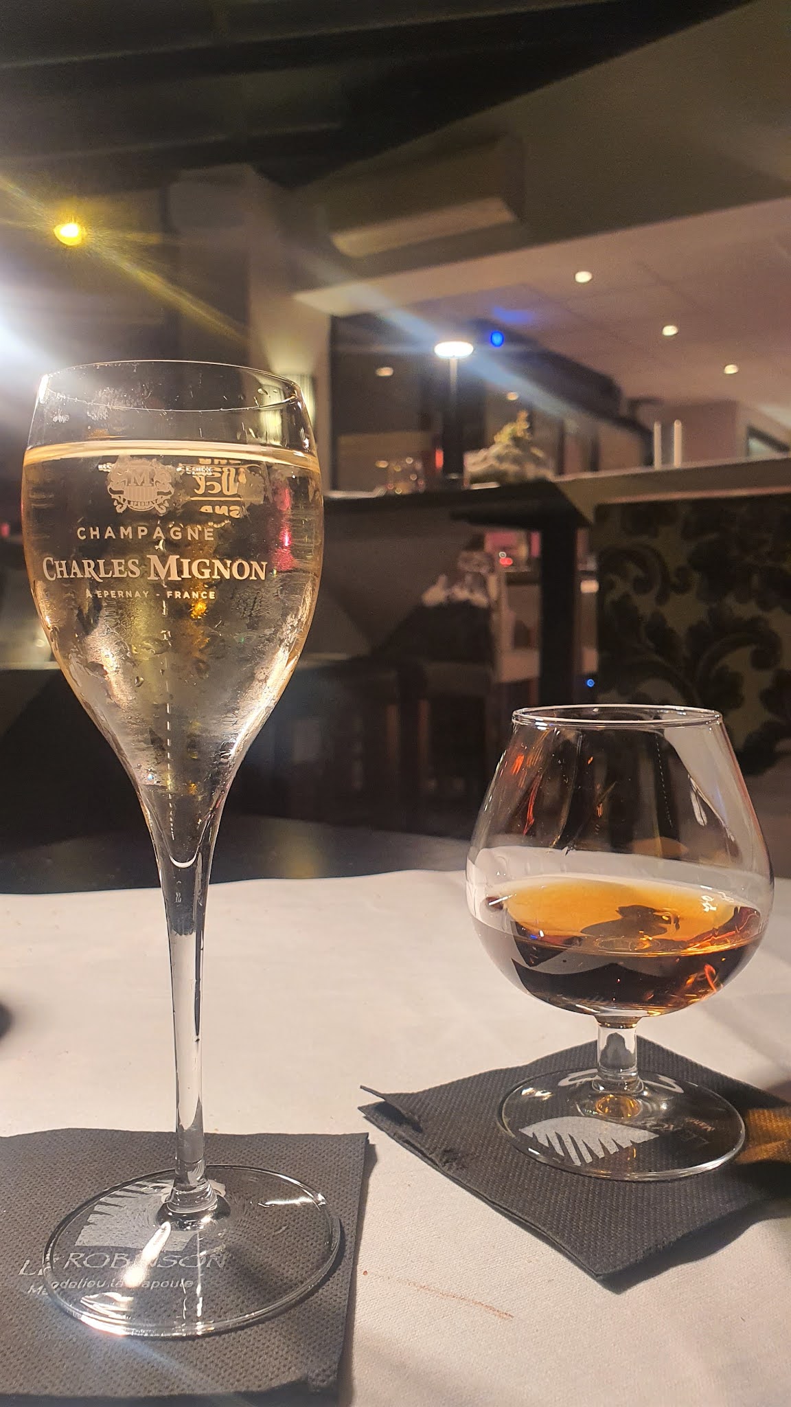 Nous nous sommes rendu au Robinson avec 2 amies. Le patron ainsi que le serveur était très chaleureux ! Nous avons dégusté nos plats sous les palmiers, accompagnés d'une lumière tamisée et de variétés françaises chanté en live par Thierry Nelson. Certaines tables ont ensuite laissés place à un espace dancefloor ! Ce fût une agréable soirée. Attention, le restaurant se situe désormais à 4 min à pied de l'ancienne adresse.