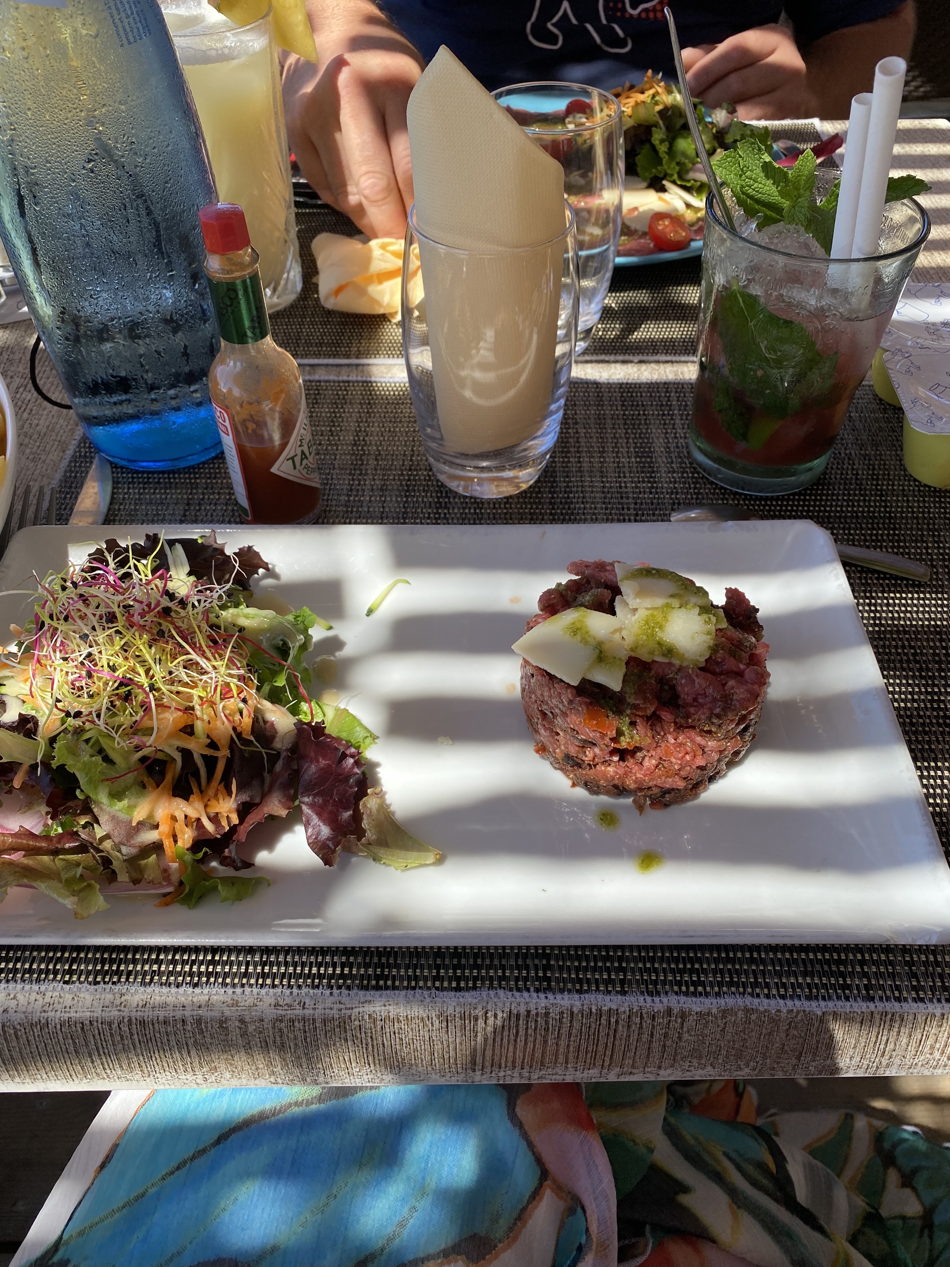 Nous avons très bien mangé dans un cadre magnifique ! Les prix sont un peu plus élevés que dans certains restos de st raph mais vous payez votre repas les pieds dans l’eau et les sièges balançoires (les enfants adorent ! Pensez à réserver votre table avec les balançoires à la place des chaises 😊) Nos plats étaient tous très bons! Il y en a pour tous les goûts (salade bobun, burger, tataki de thon…) Menu enfant 14€ plat, sirop et glace 🍨 vous pouvez aussi vous poser ici pour déguster un cocktail et/ou une planche apéro dans un décor de rêve 🤩 pour passer un bon moment Sur un air de Vacances ☀️ 🏝 🍹